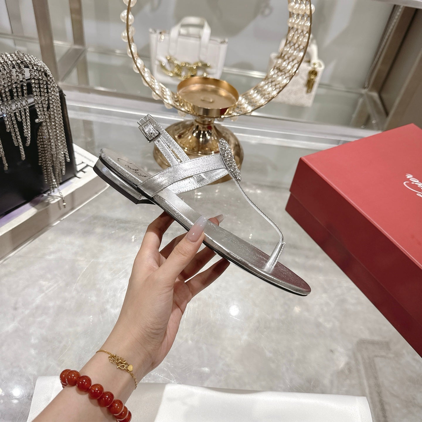 Viv 25 Thong Sandals Silver Cowhide 334692
