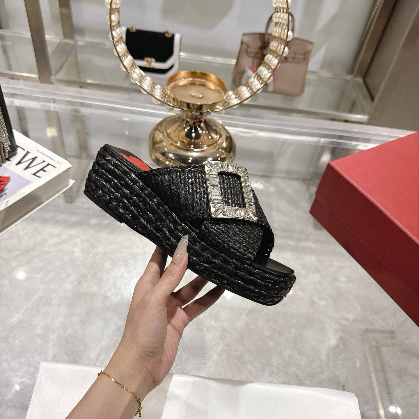 Viv Platform Slippers Gold Early Weaving 300739