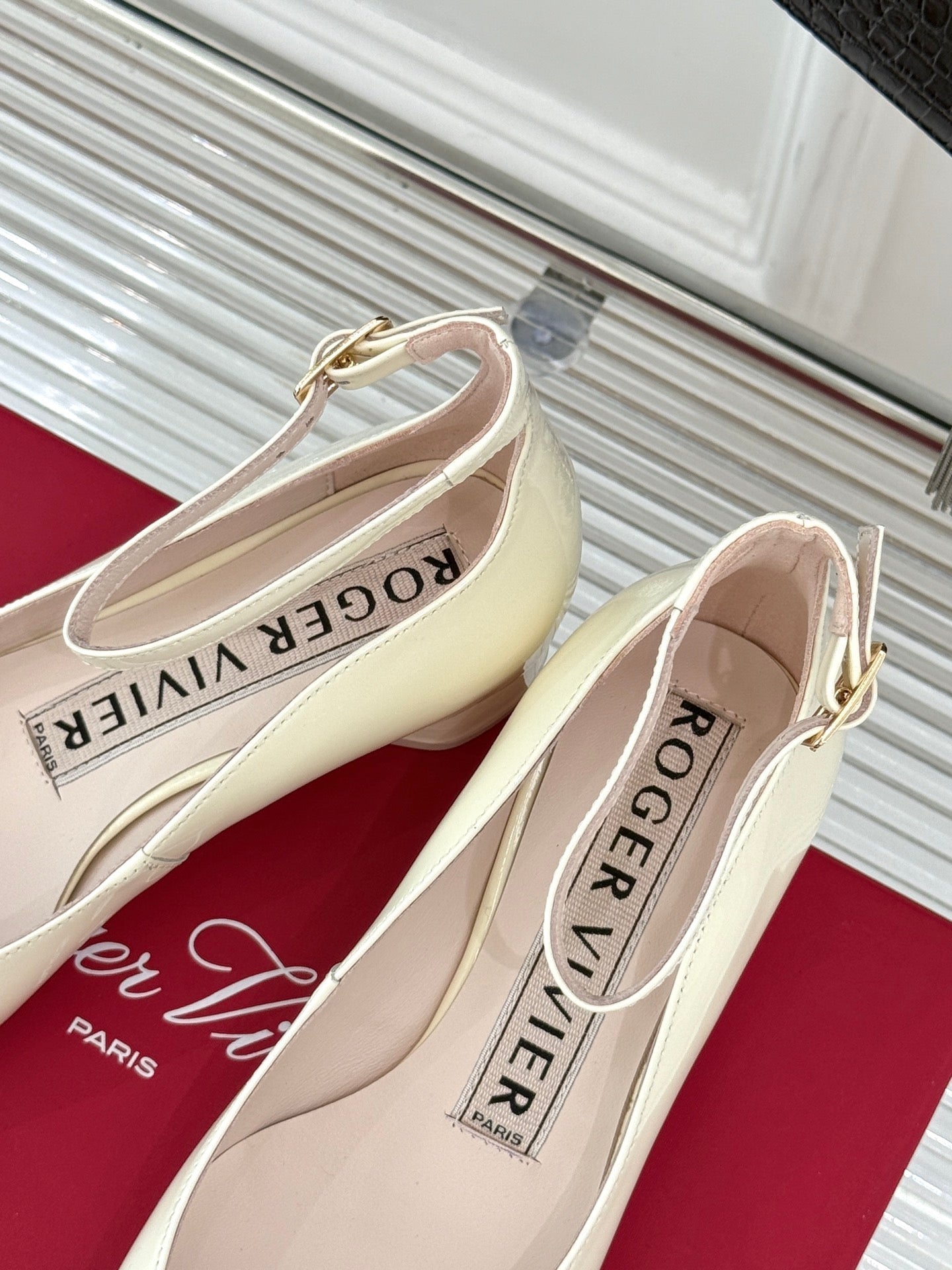 Viv Square Buckle Mary Jane Milky White Fetal Cowhide 286707