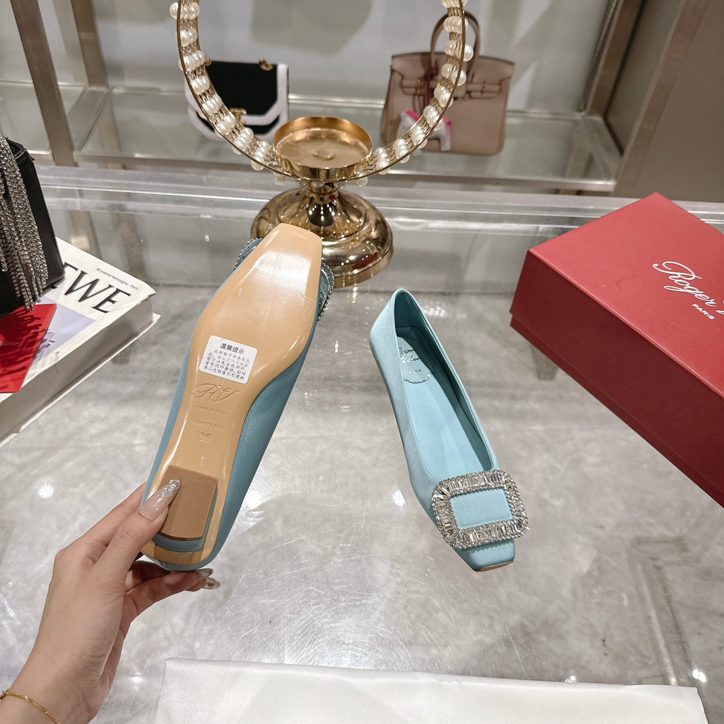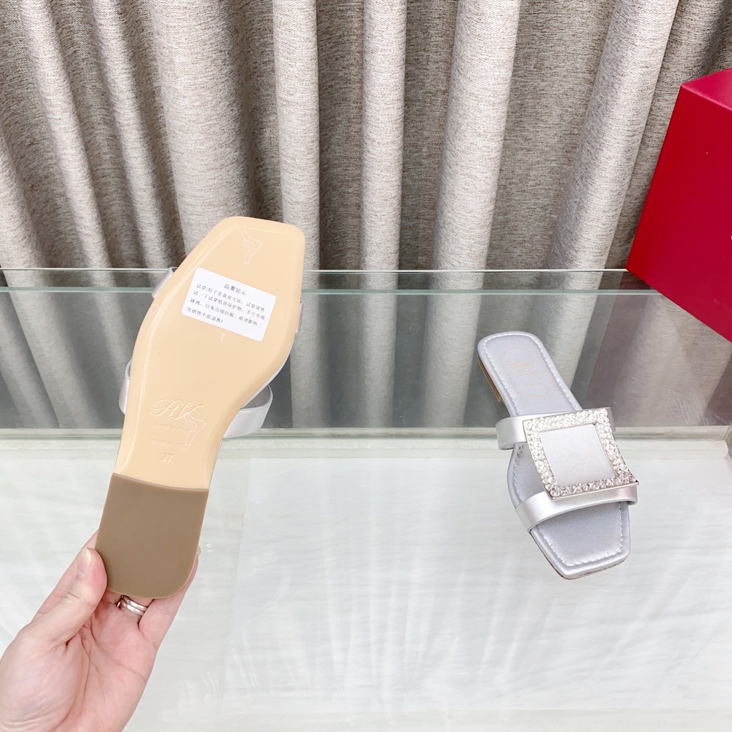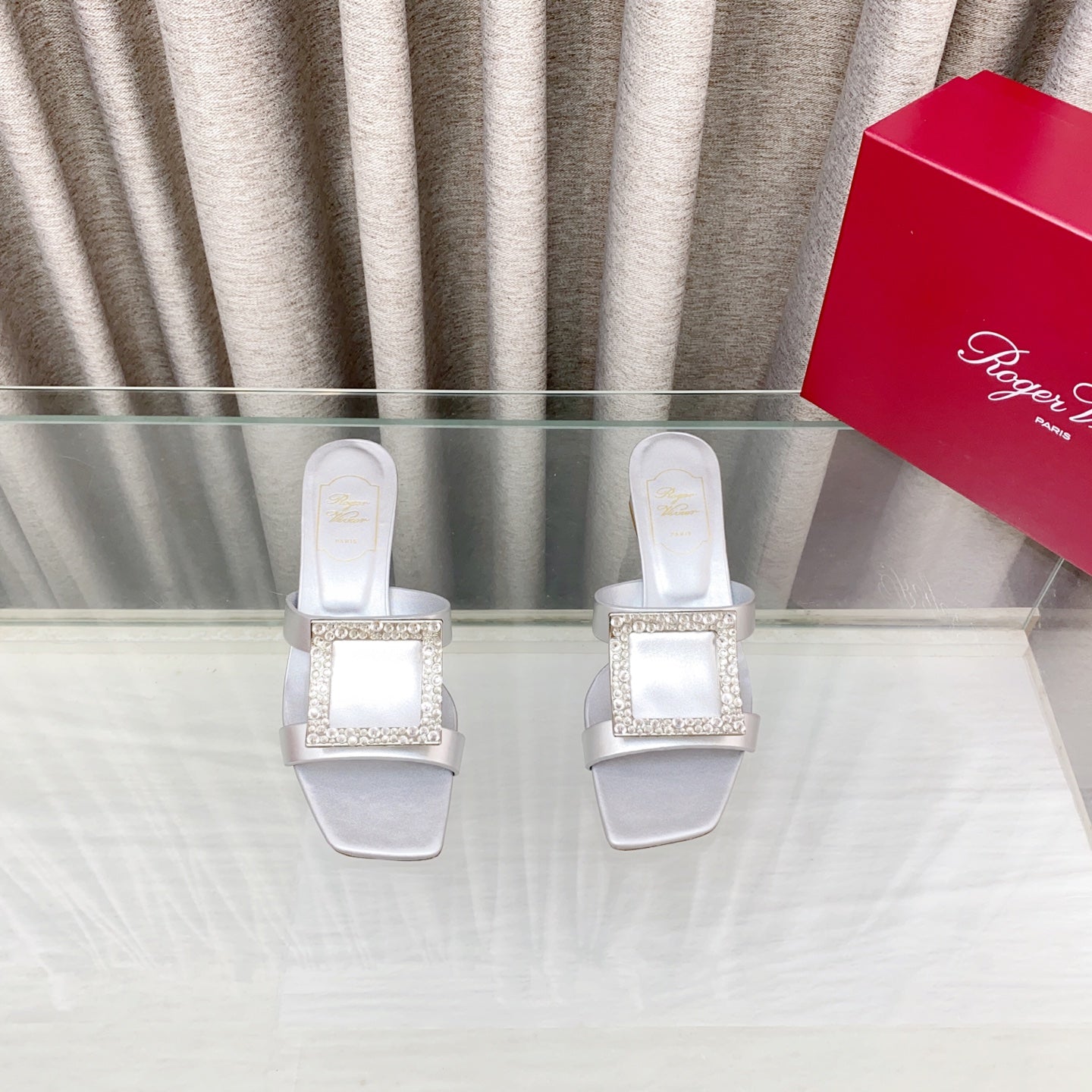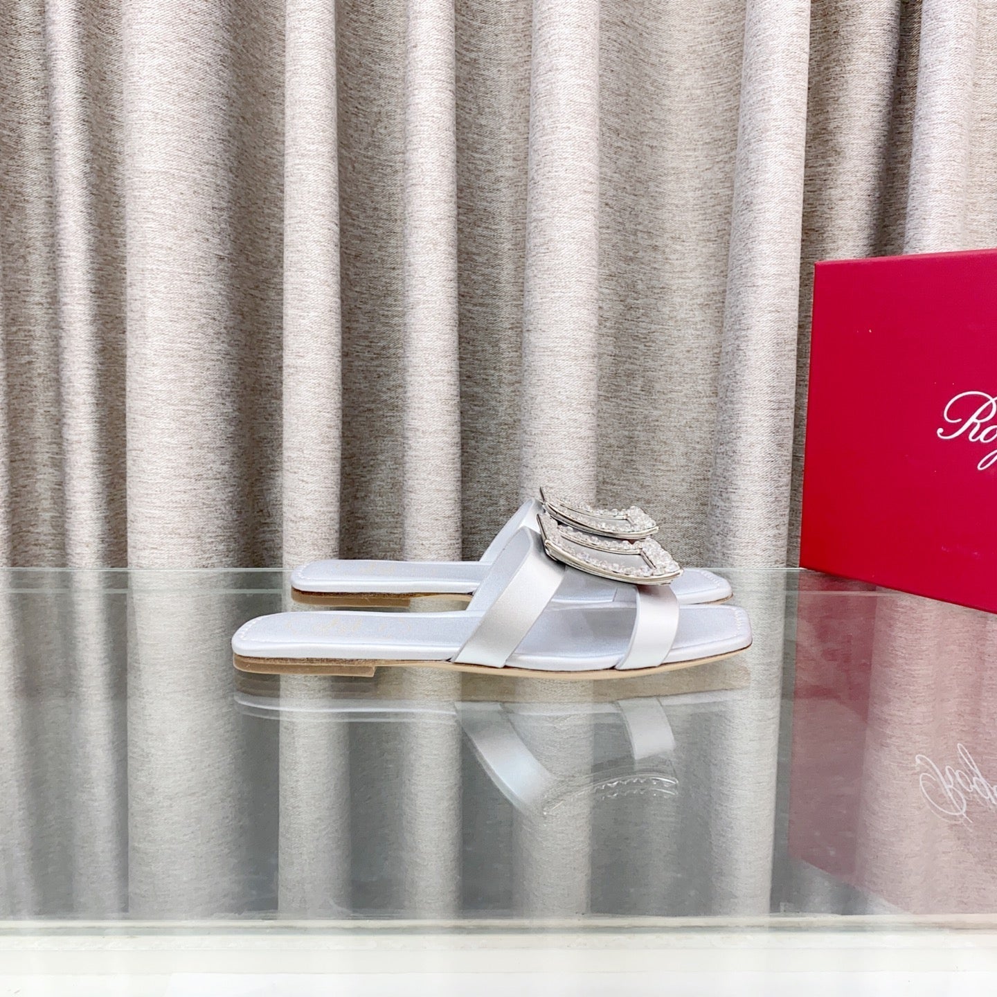 Viv 25 Diamond Flat Slippers Silver Cowhide 283037