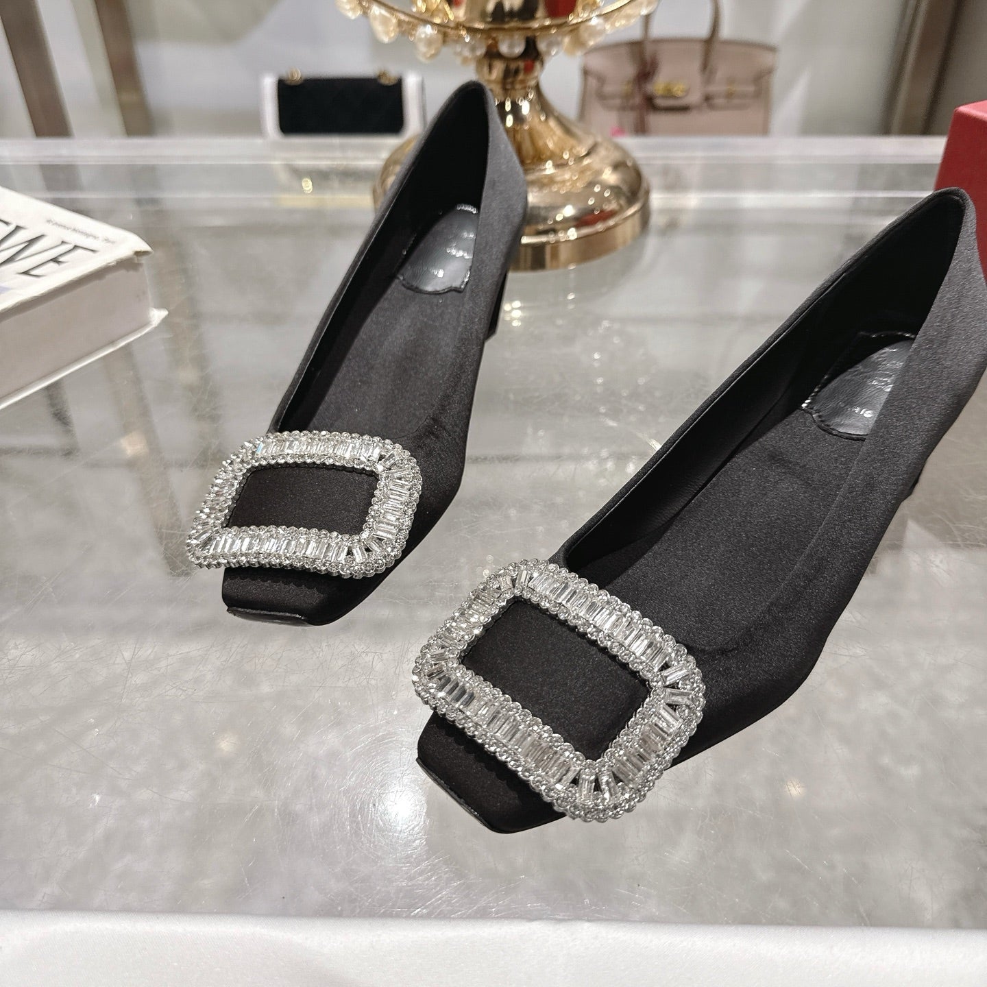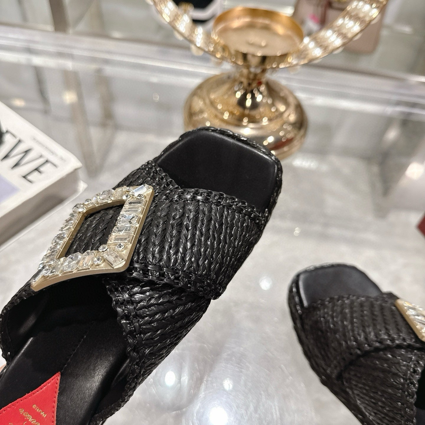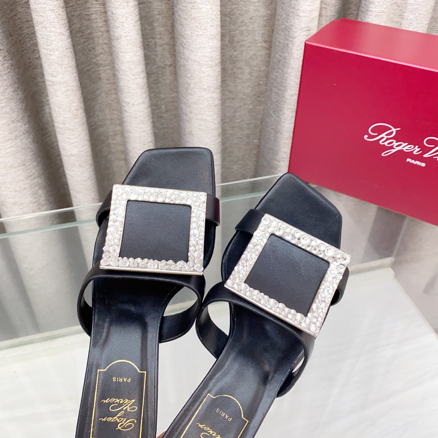 Viv 25 Diamond Flat Slippers Black Cowhide 283038