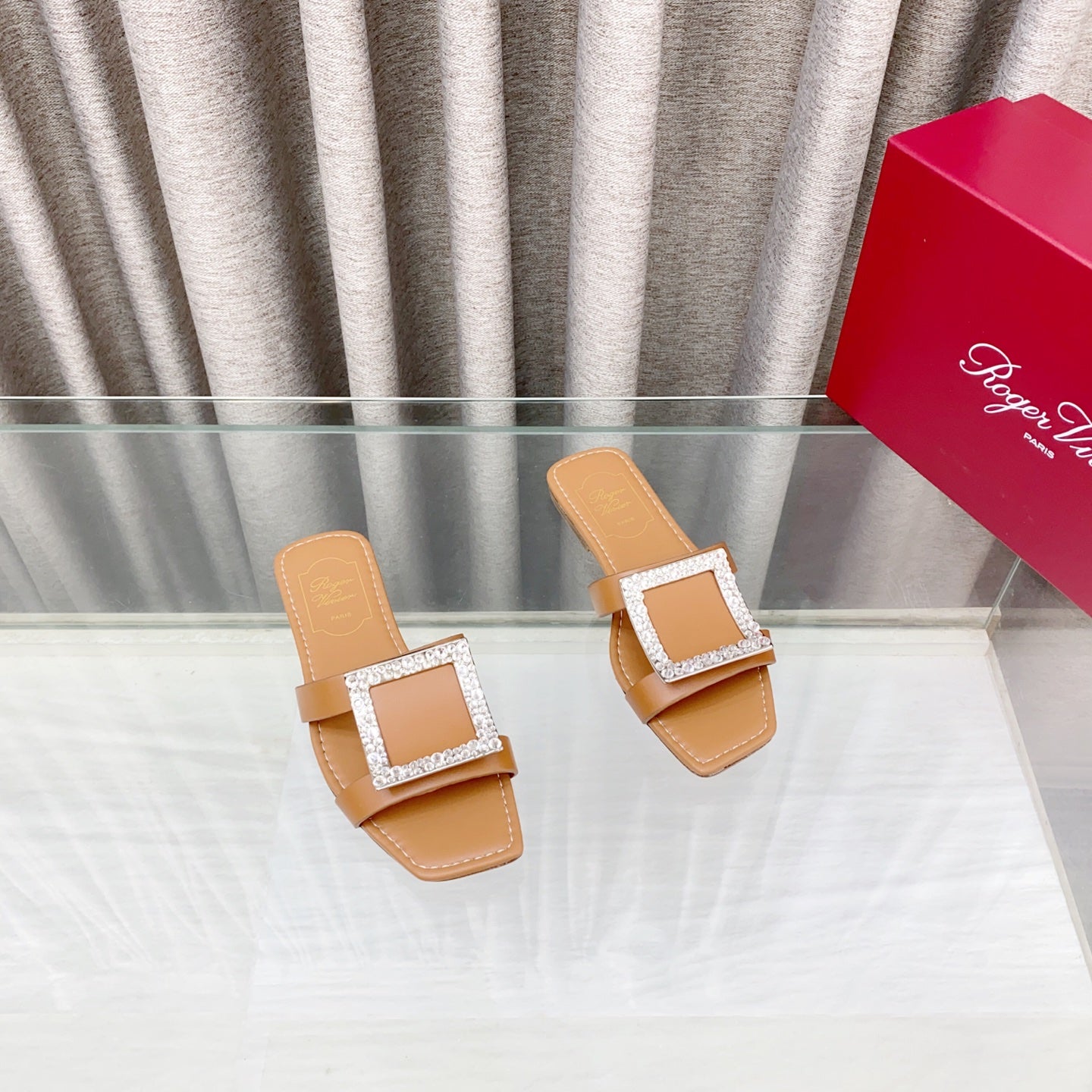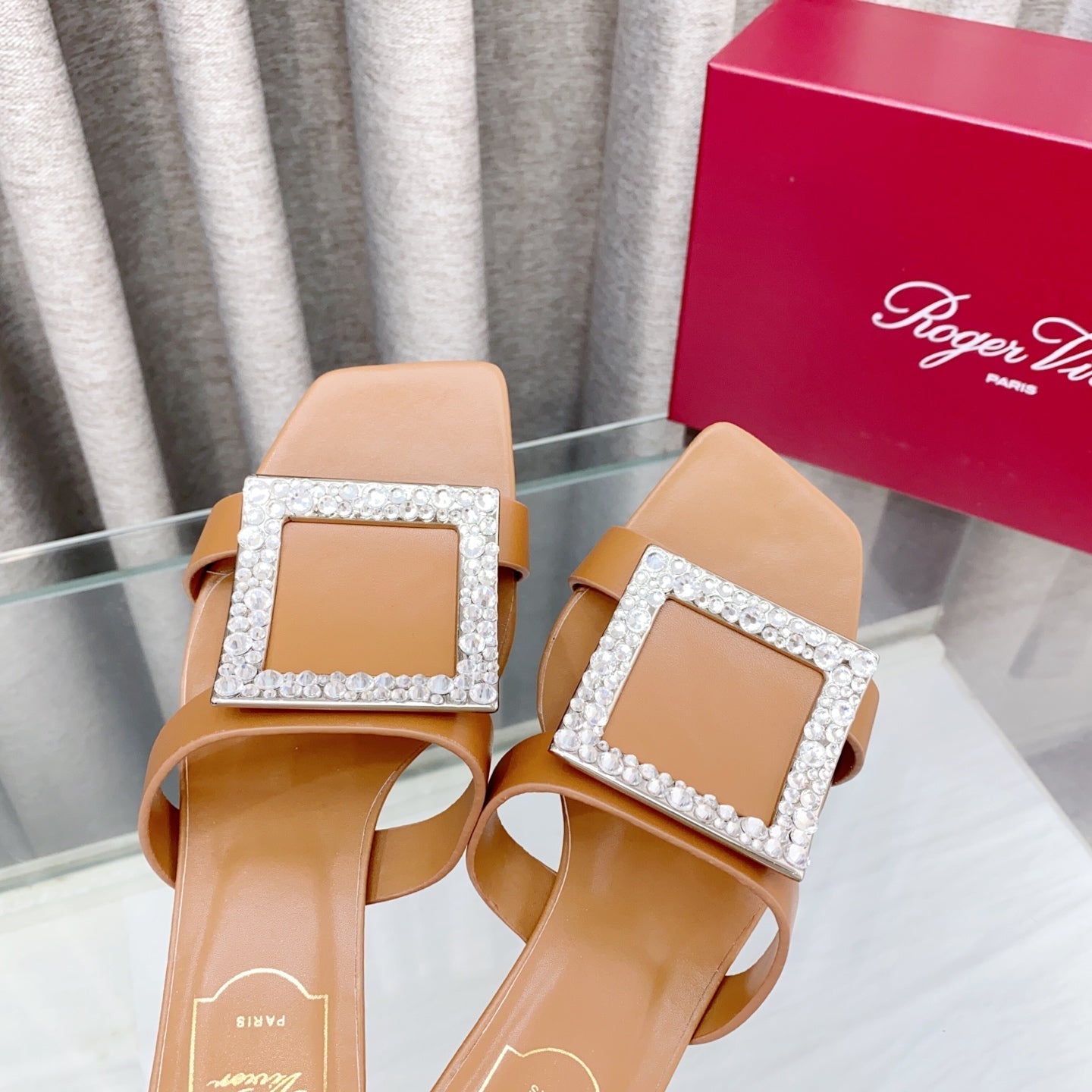 Viv 25 Diamond Mid Heel Slides Brown Cowhide 283039