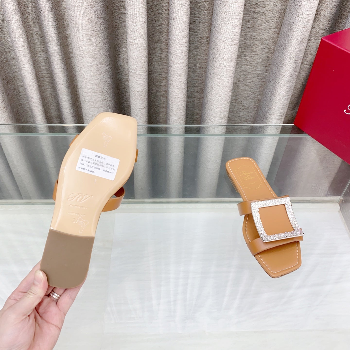 Viv 25 Diamond Flat Slippers Brown Cowhide 283035