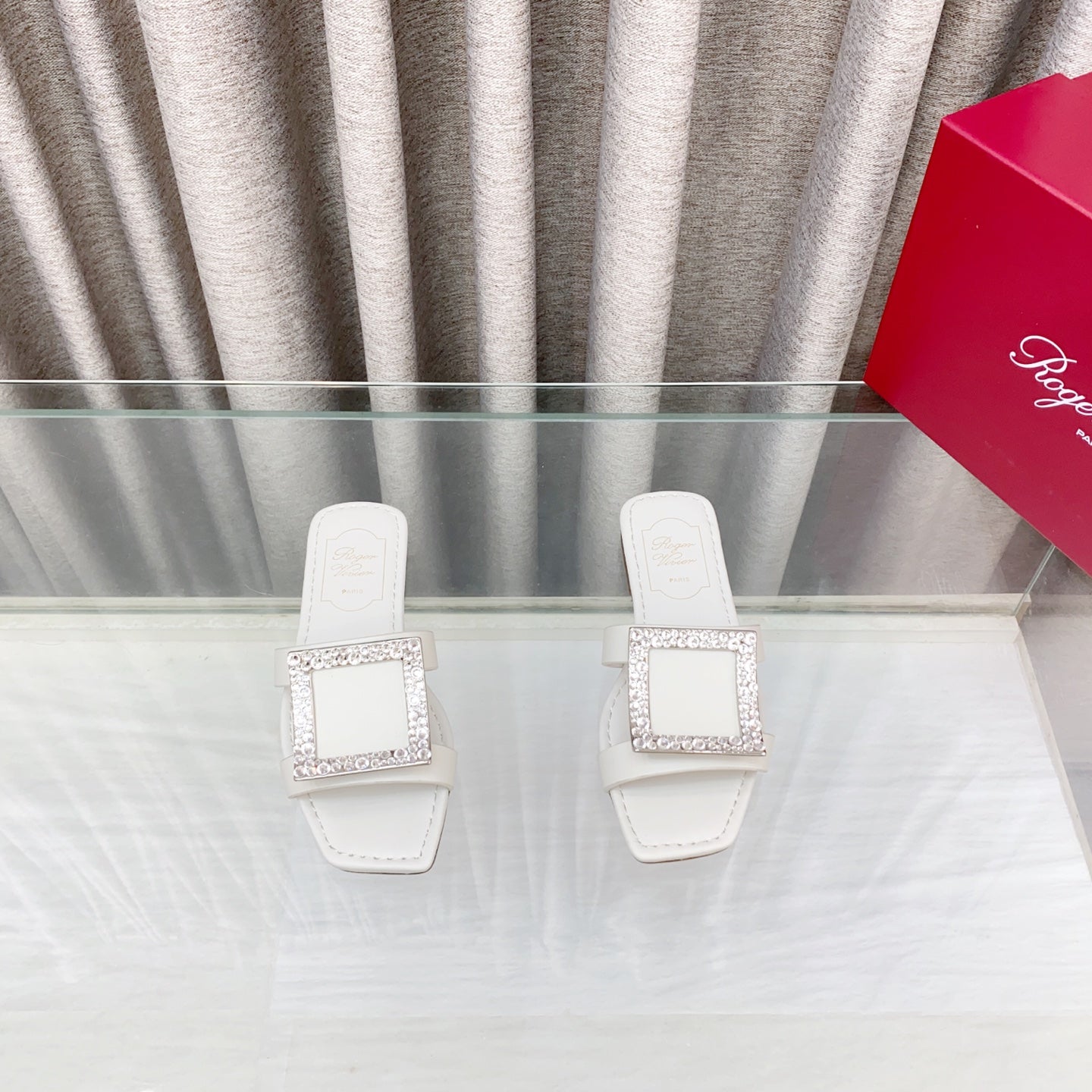 Viv 25 Diamond Flat Slippers White Cowhide 283036
