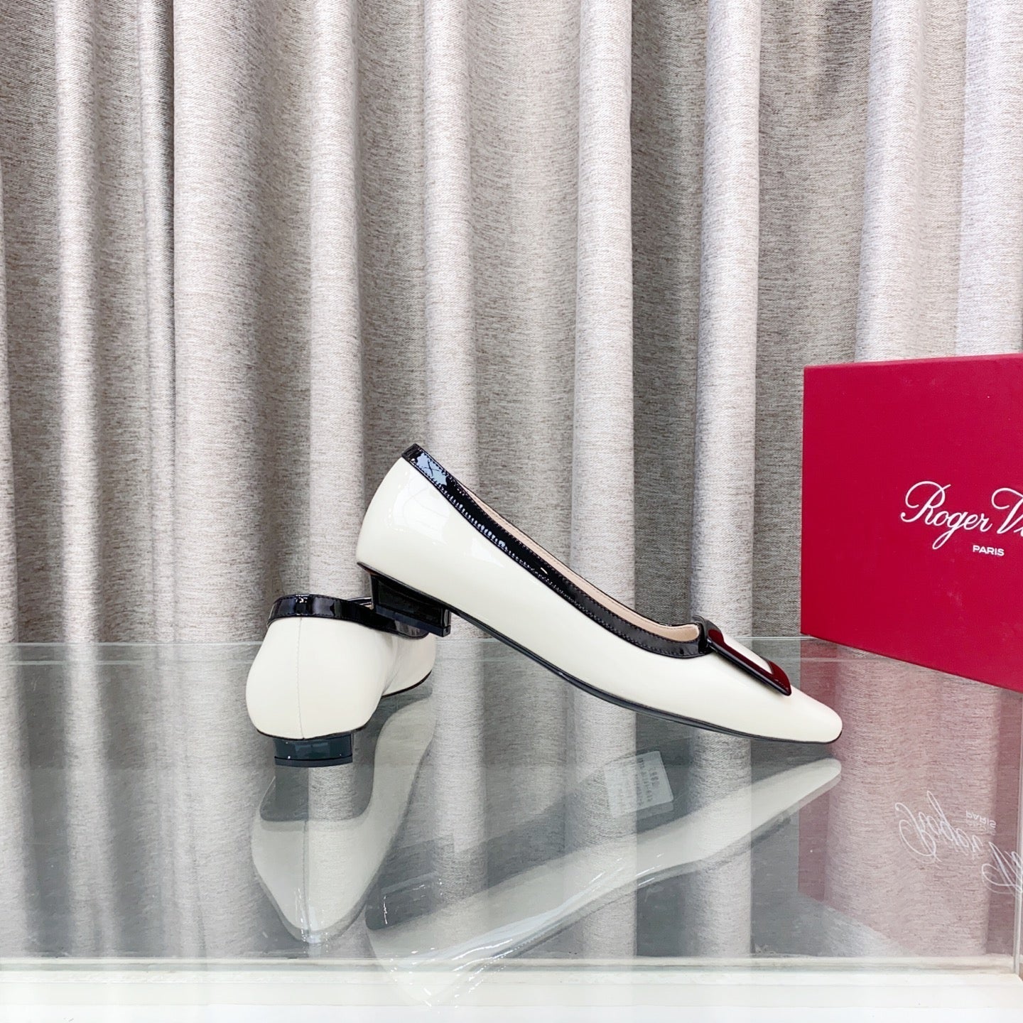 Viv Trompette Thick Heel Pumps White Cowhide Leather 283048