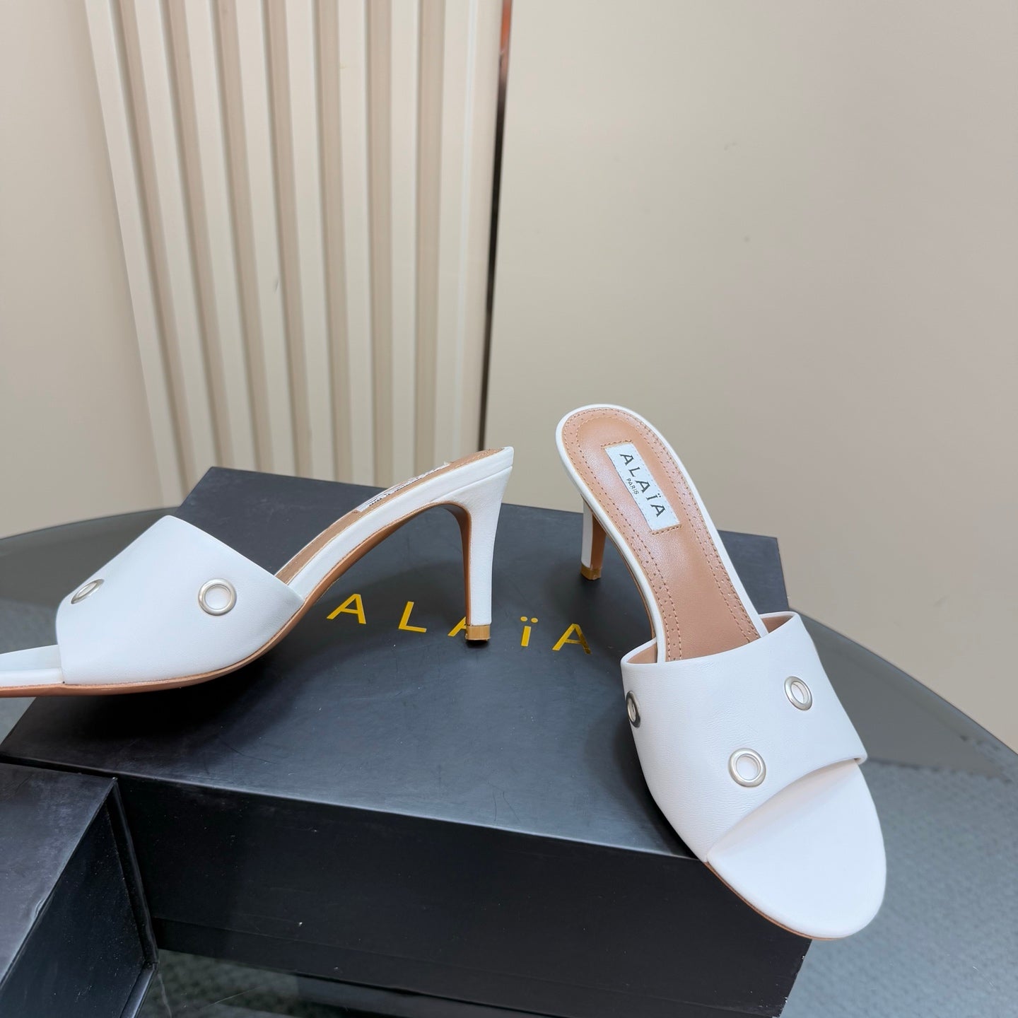 Alaia 2025 Oeillets Embellished Leather Sandals White Lambskin 299667