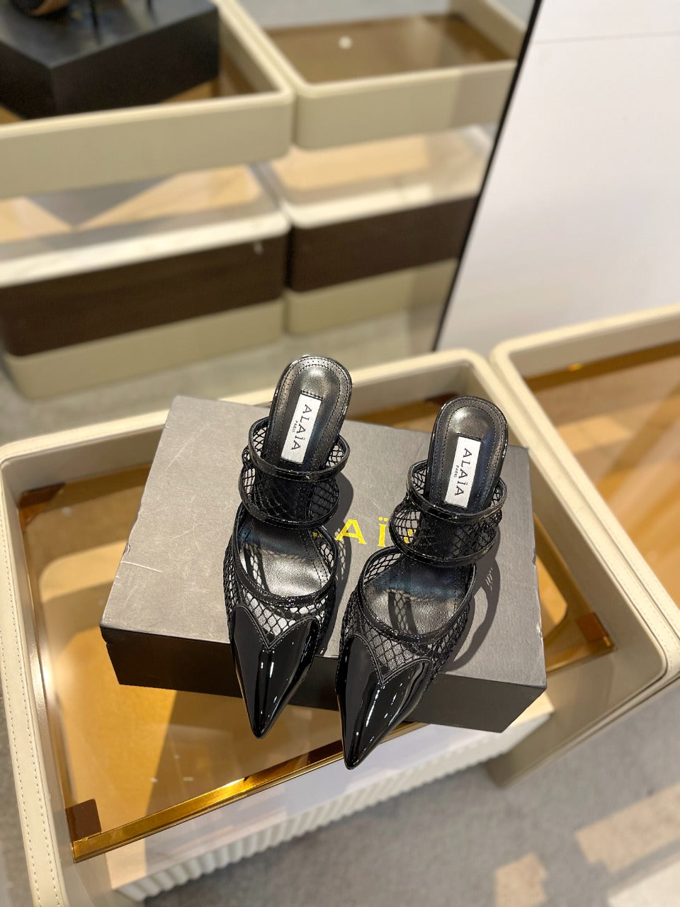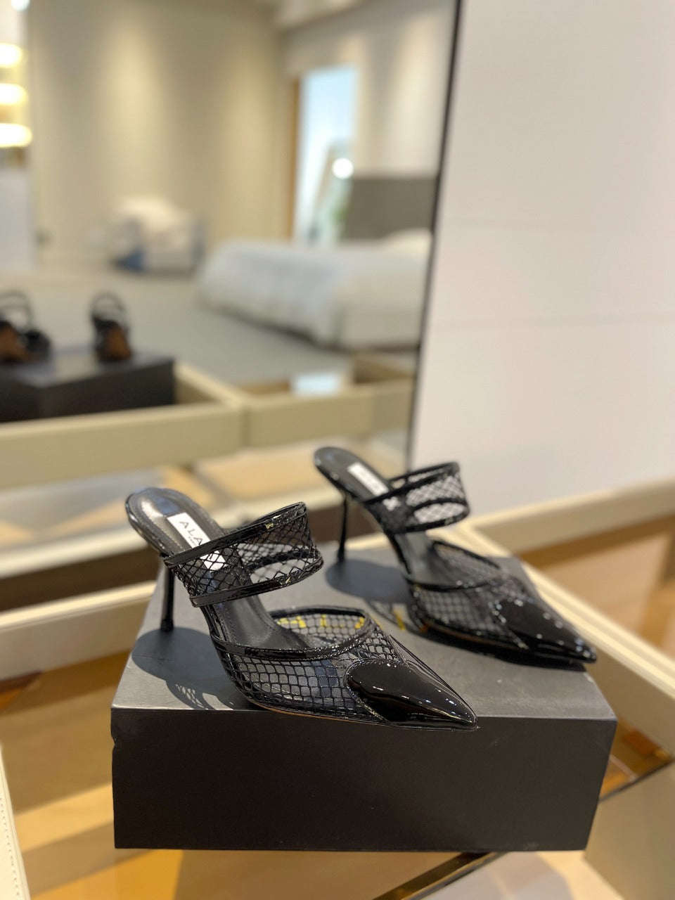 alaia mule 85 fishnet black heart lambskin
