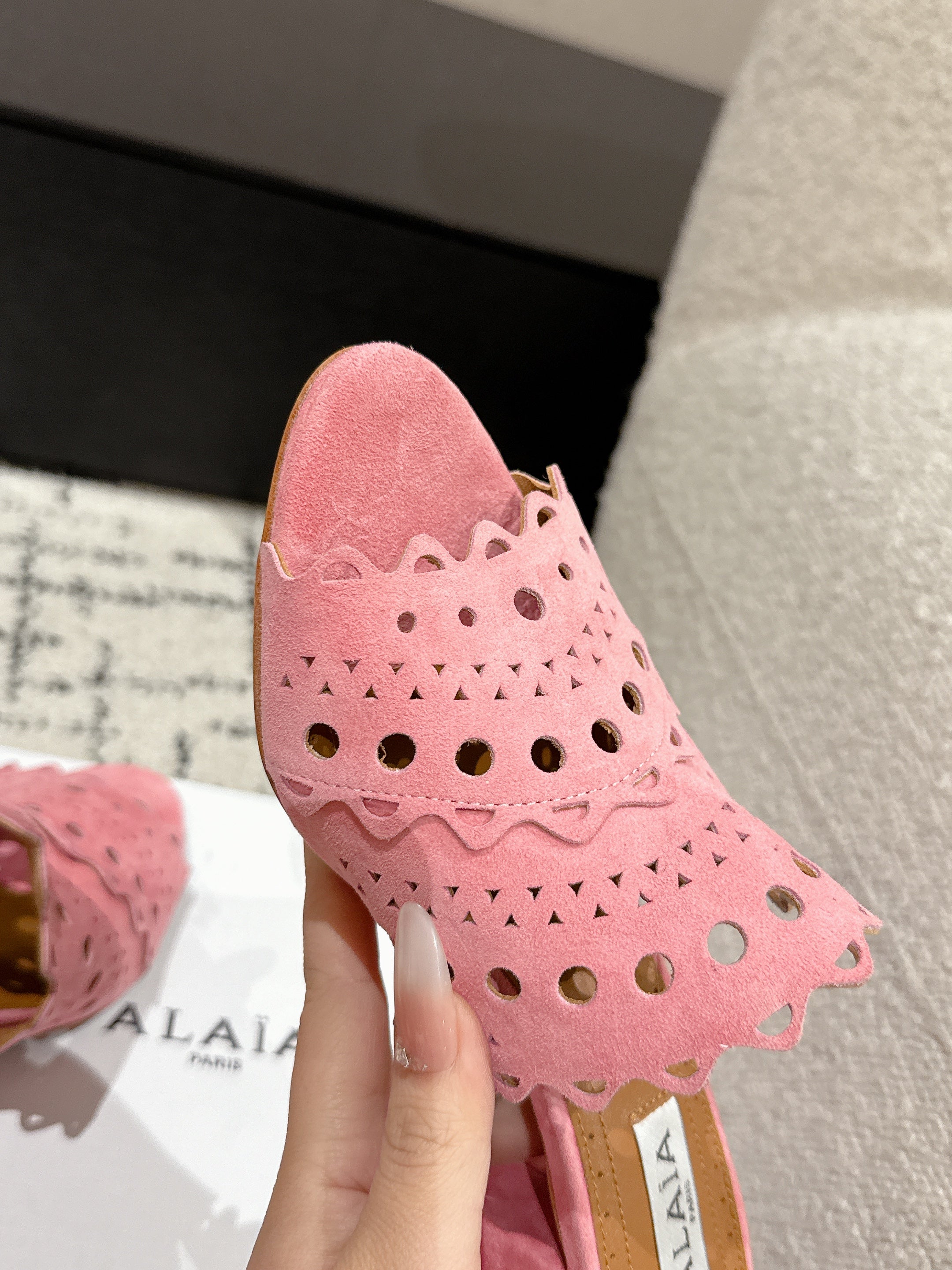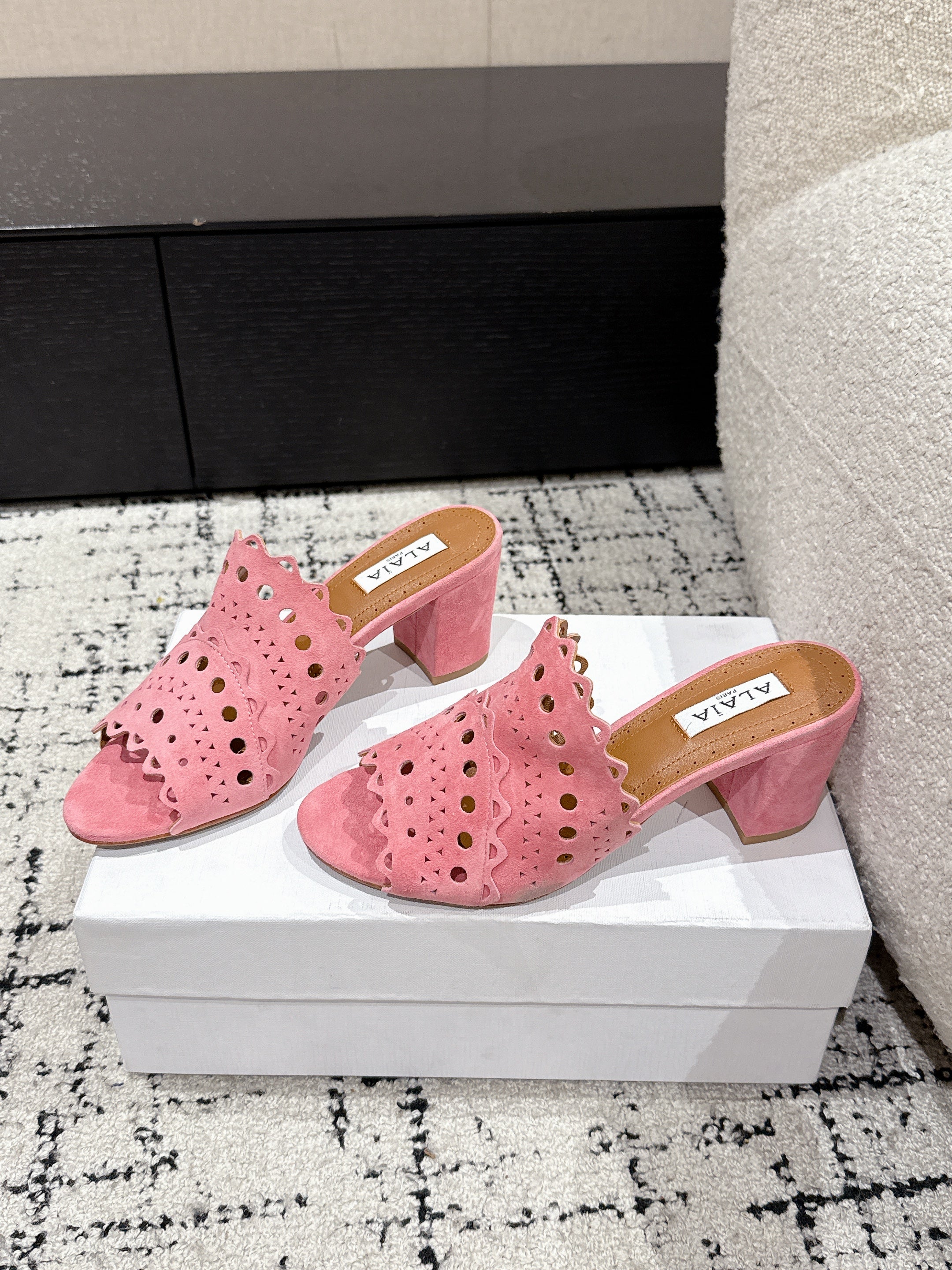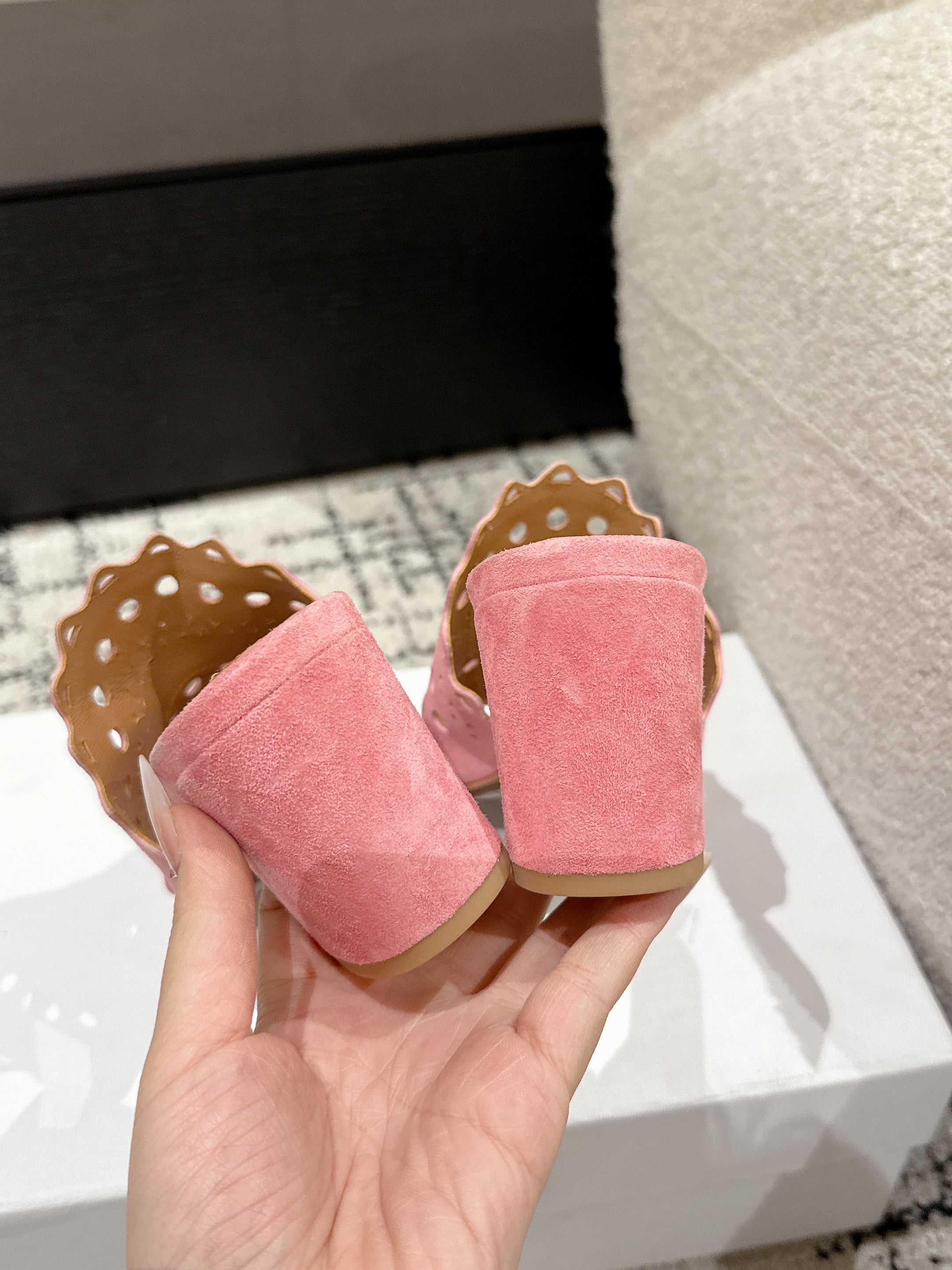 Alaia Vienne Mule Heeled Sandals 70mm Pink Suede Leather 232506