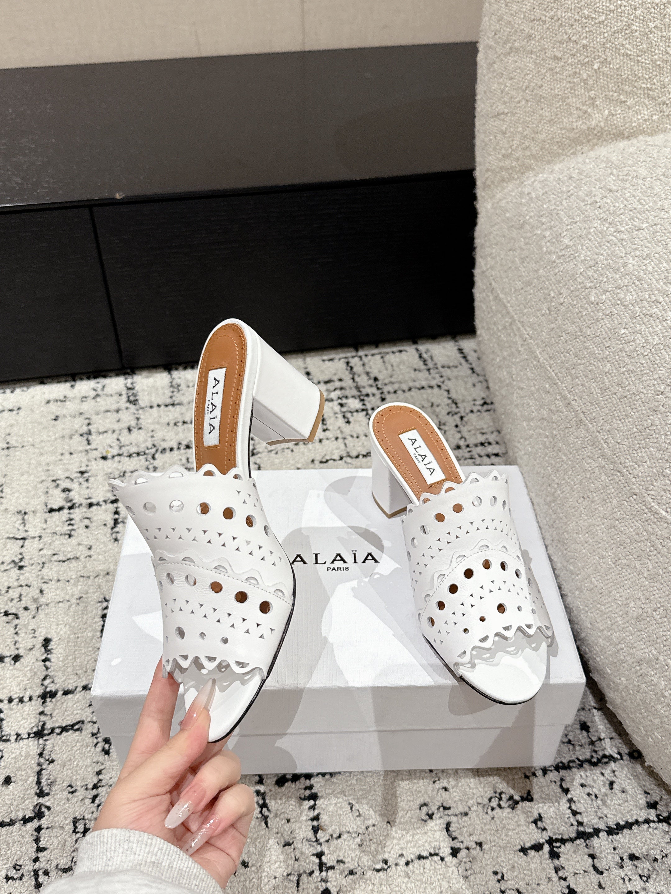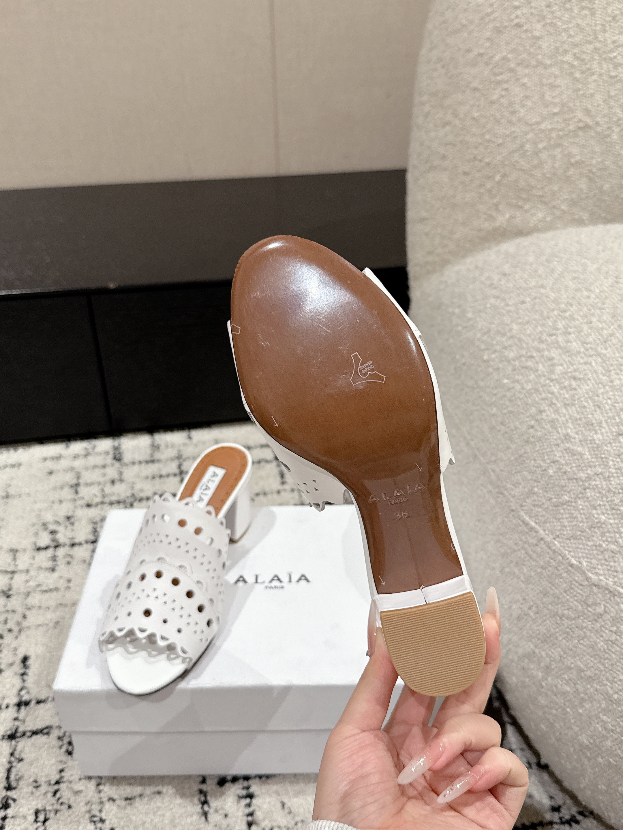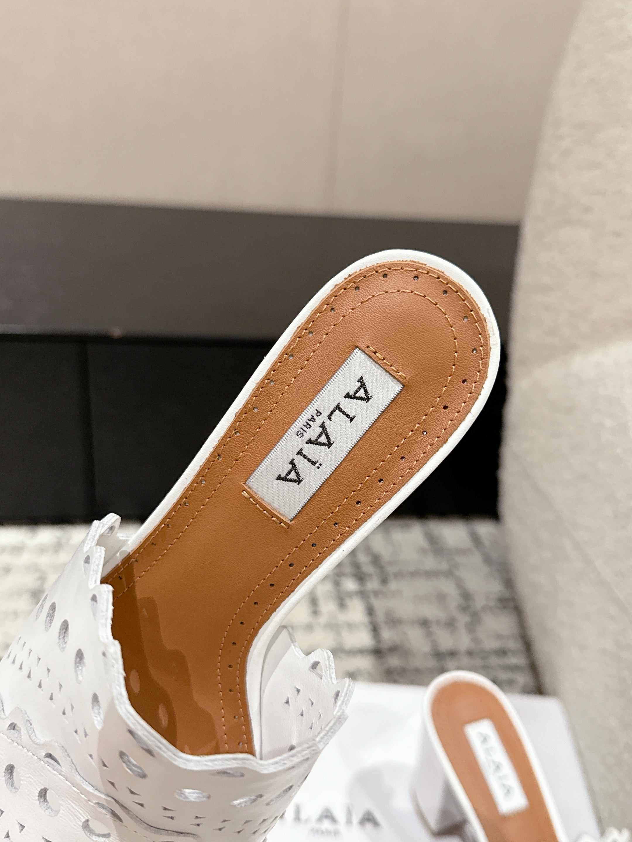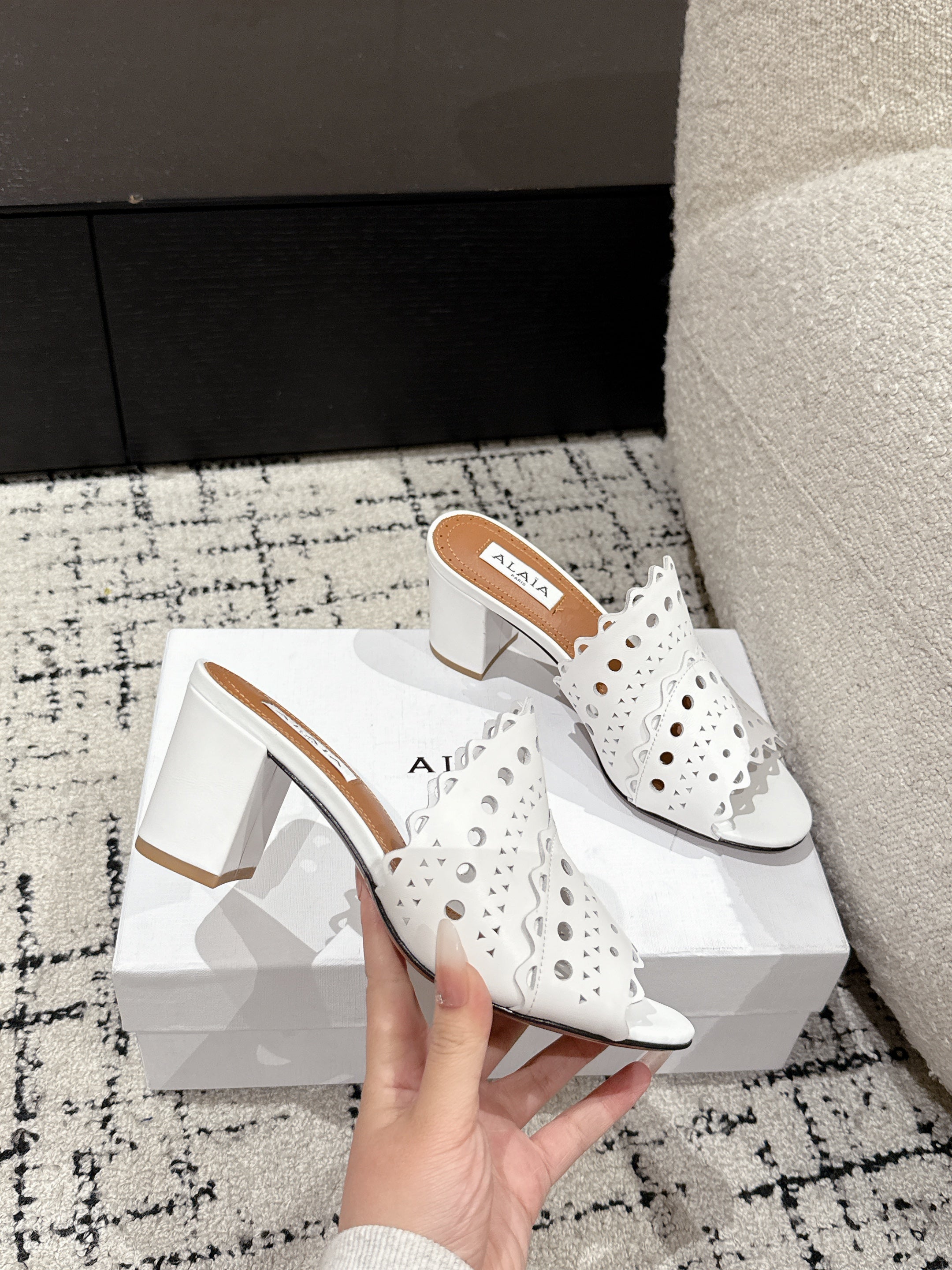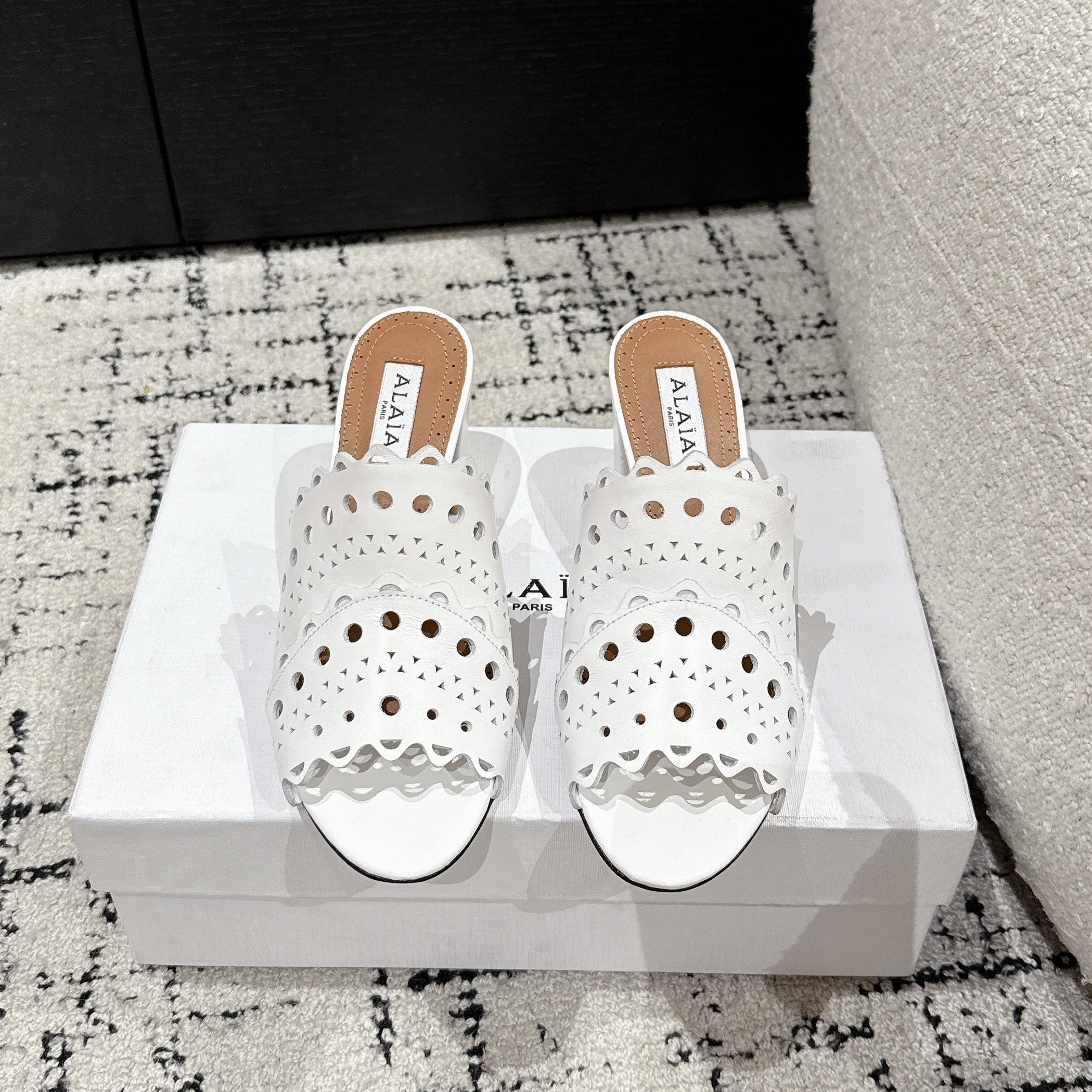 Alaia Vienne Mule Heeled Sandals 70mm White Leather 232504