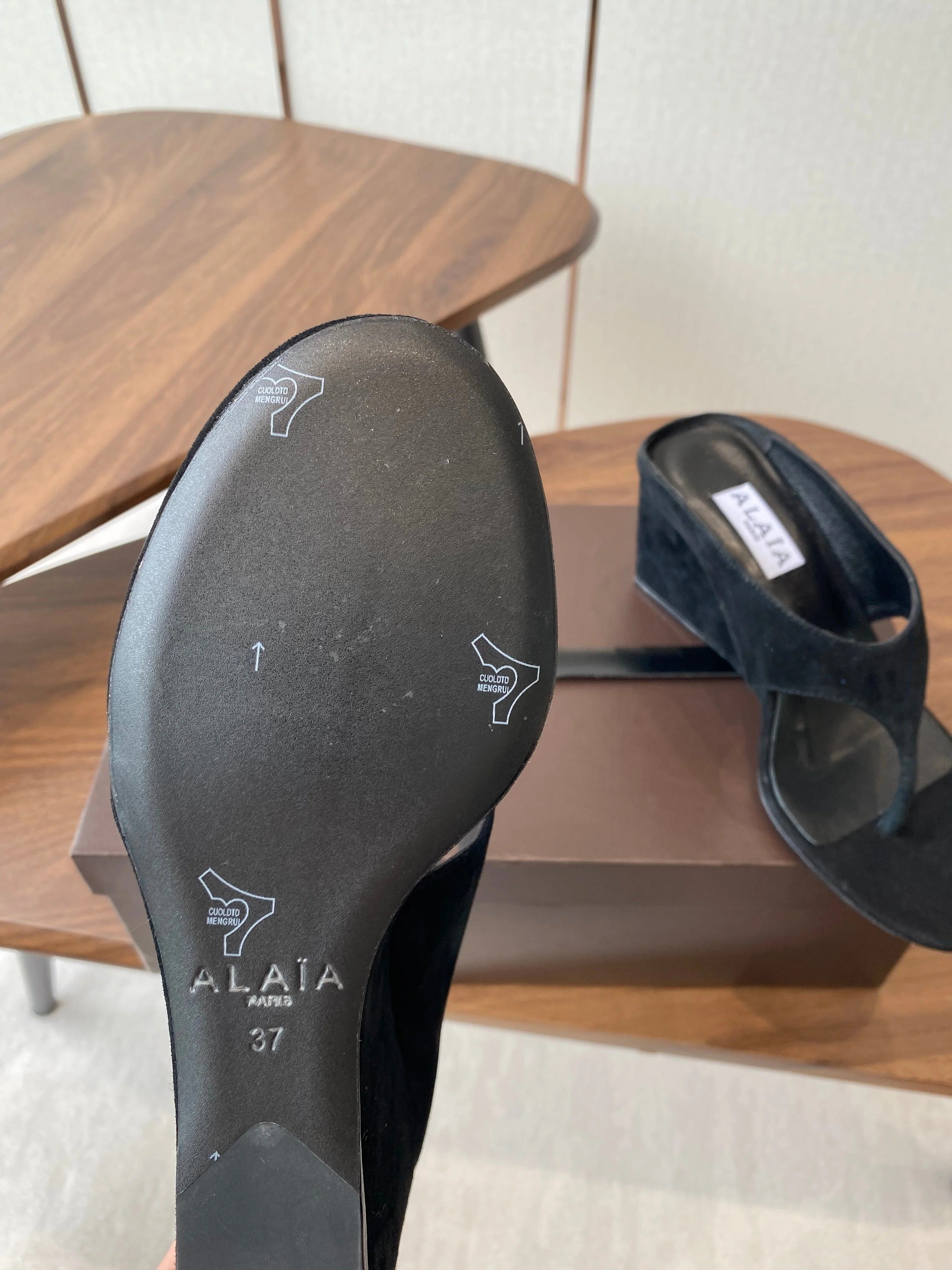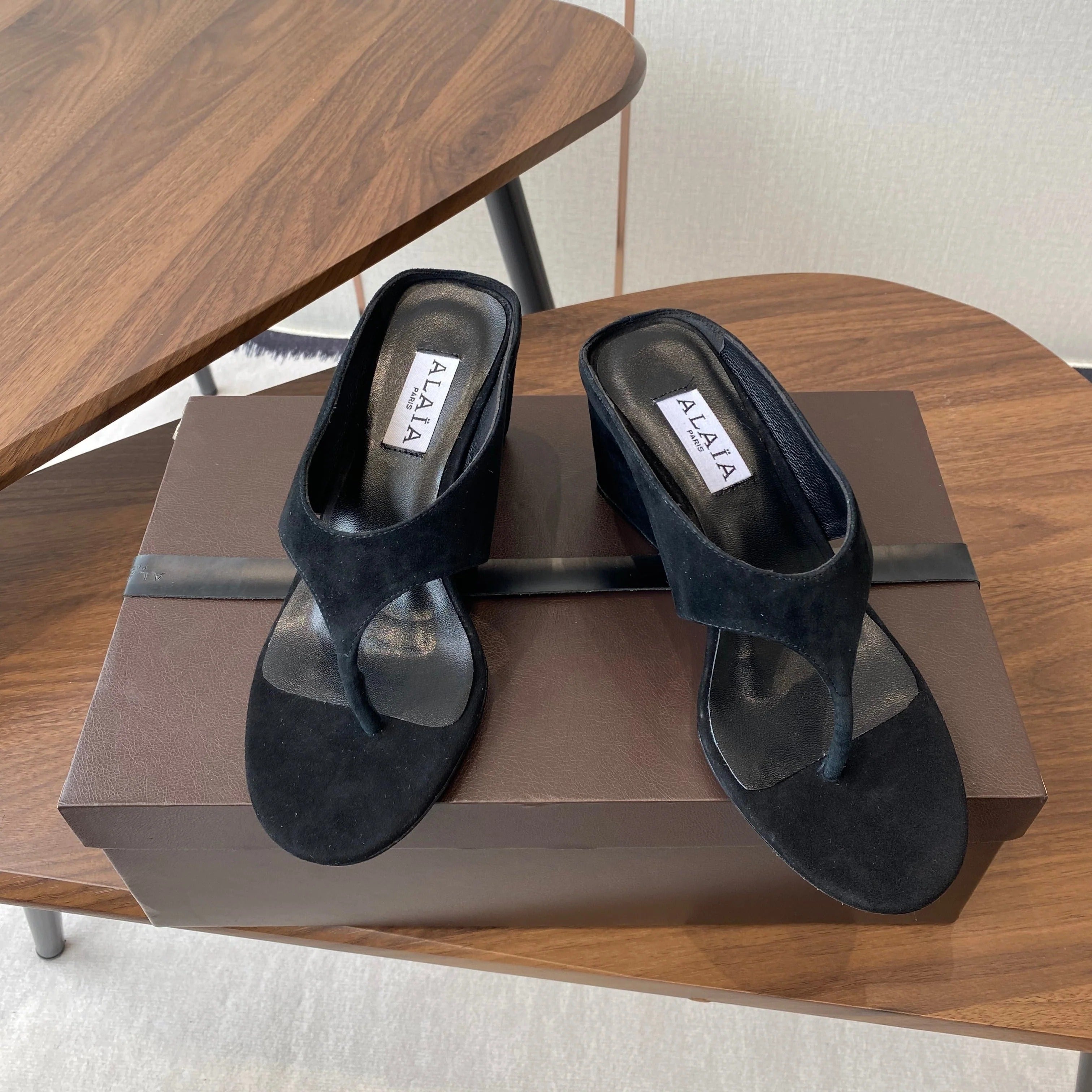 Alaia Wedge Thong Sandals 25s In Black Suede