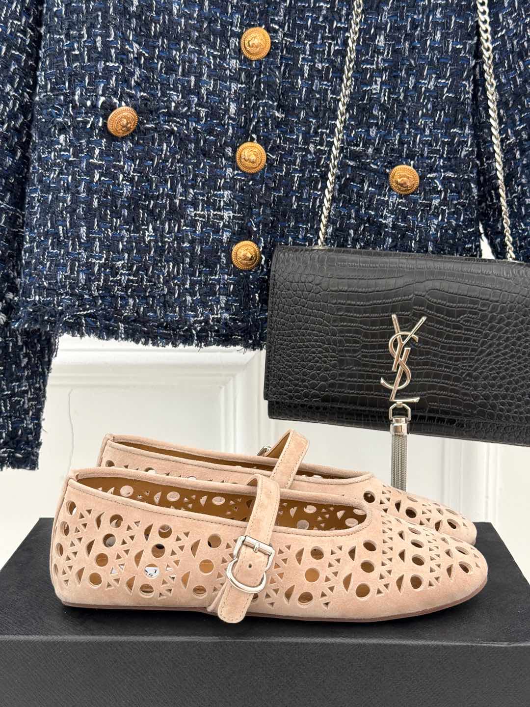 Alaia Women's Ballet Flat Nude Suede 293219