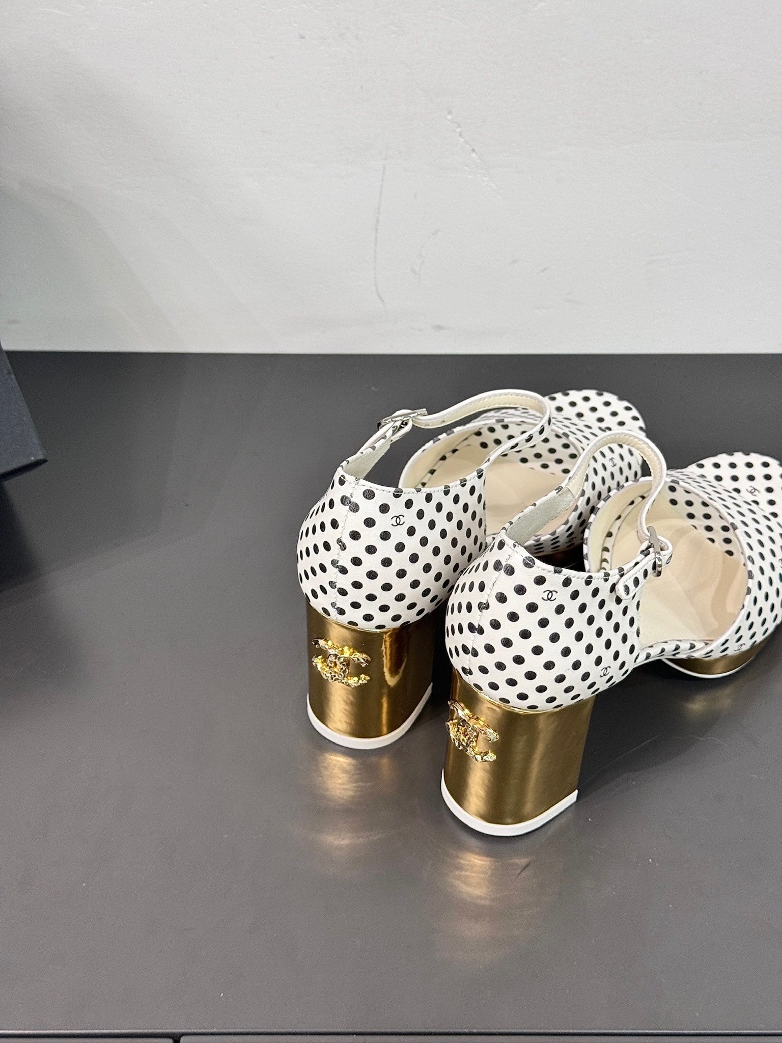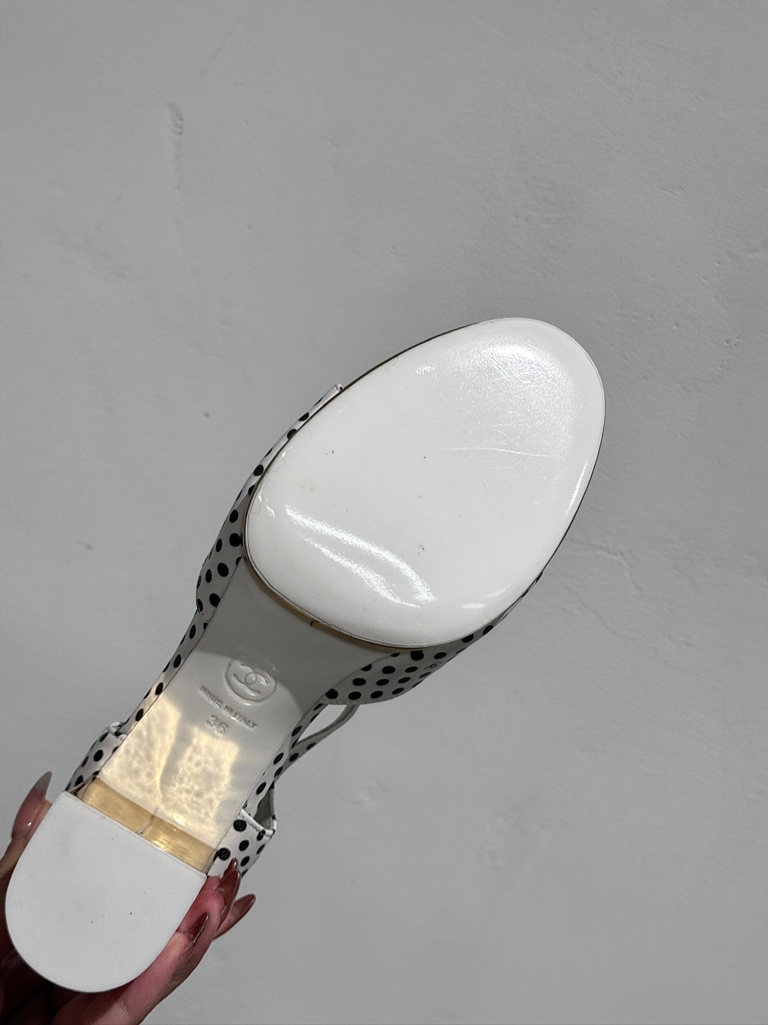 BLOCK HEEL SANDALS WHITE POLKA DOT SHEEPSKIN