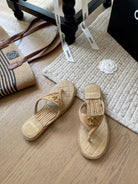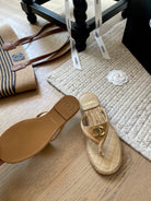 CC 25 Flip Flop Sandals Beige Suede Calfskin Espadrilles