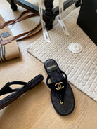 CC 25 Flip Flop Sandals Black Suede Calfskin Espadrilles