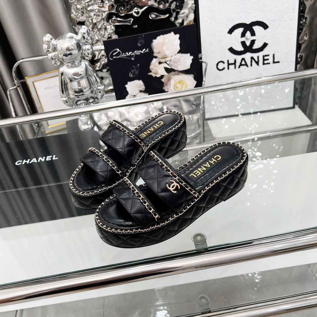 CC 25 Slide Leather Chain 6cm Black Lambskin 338660