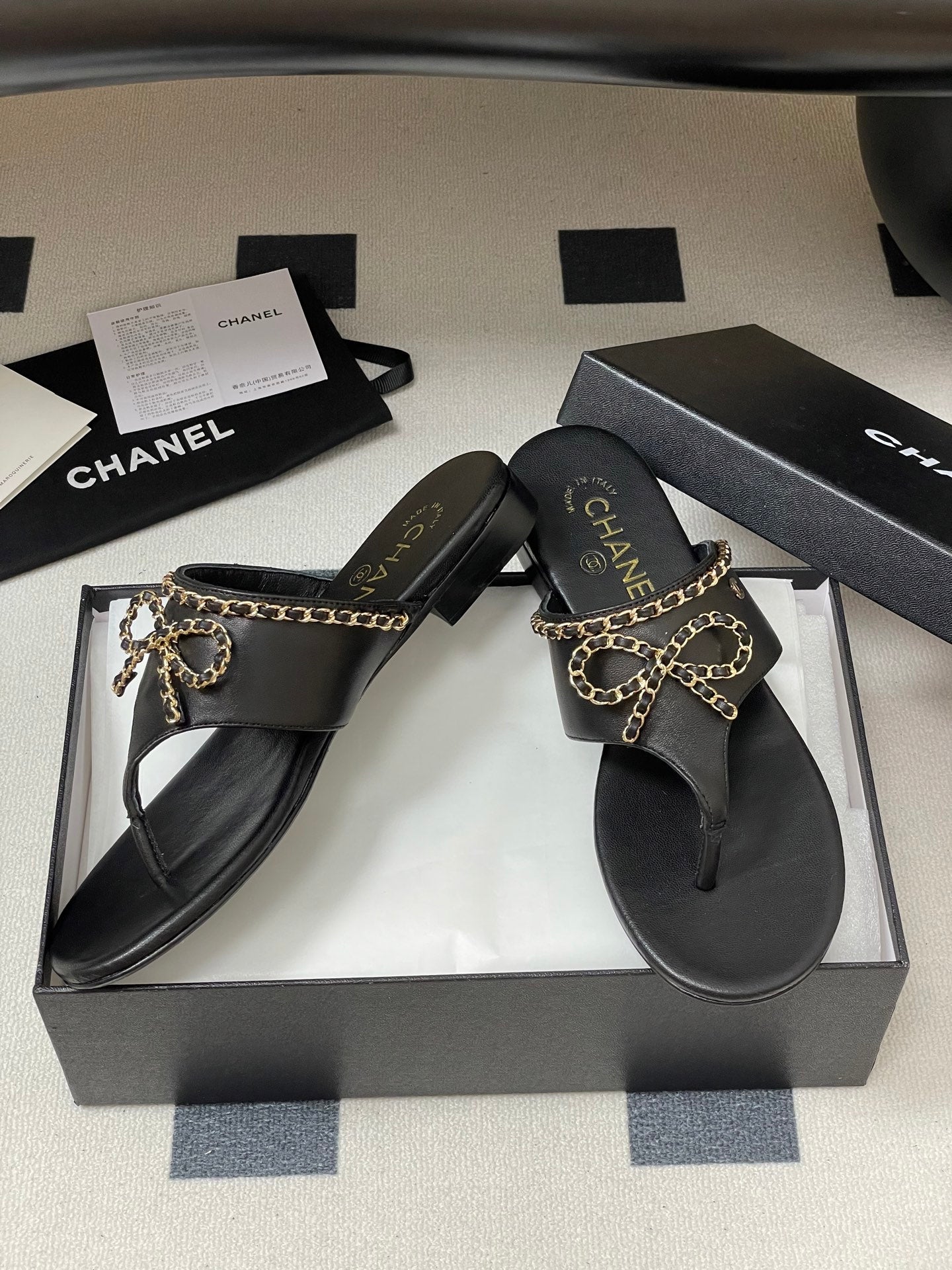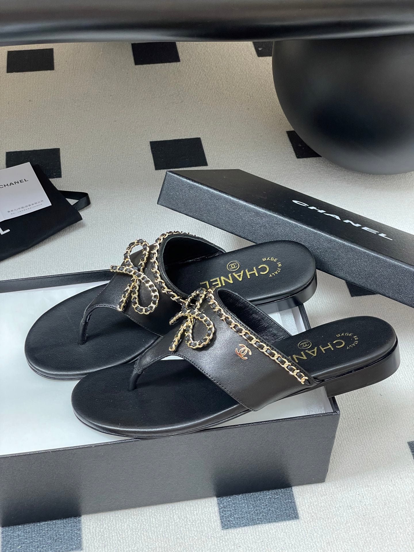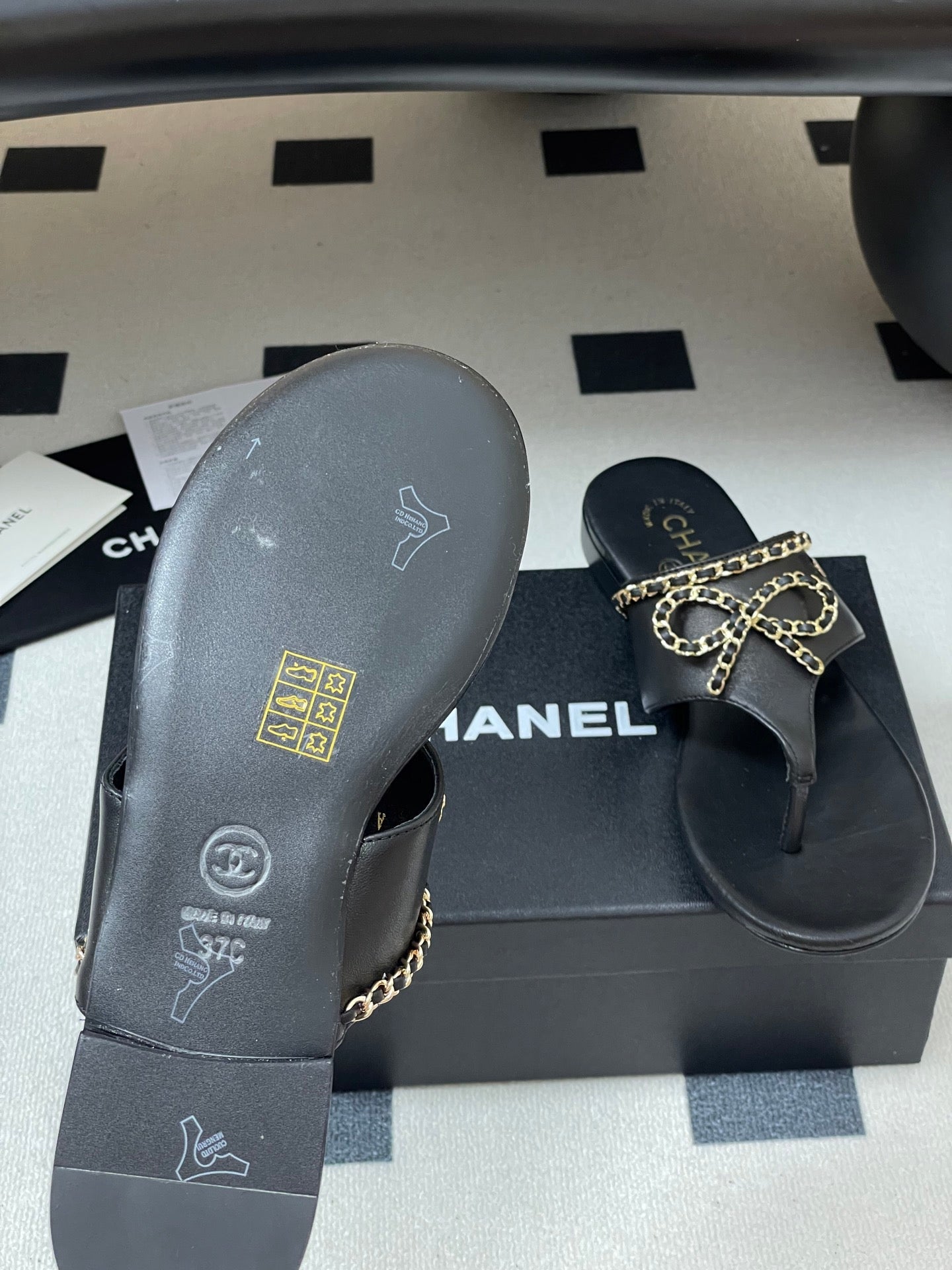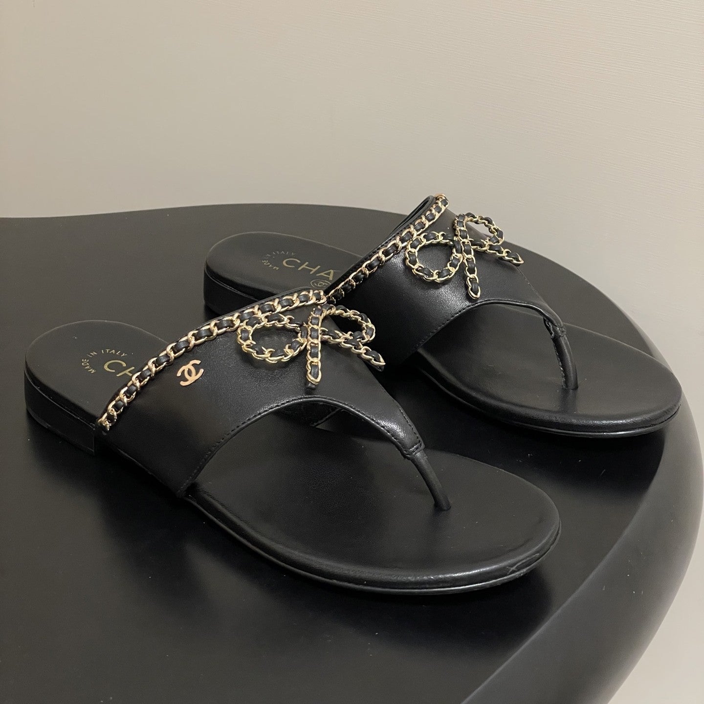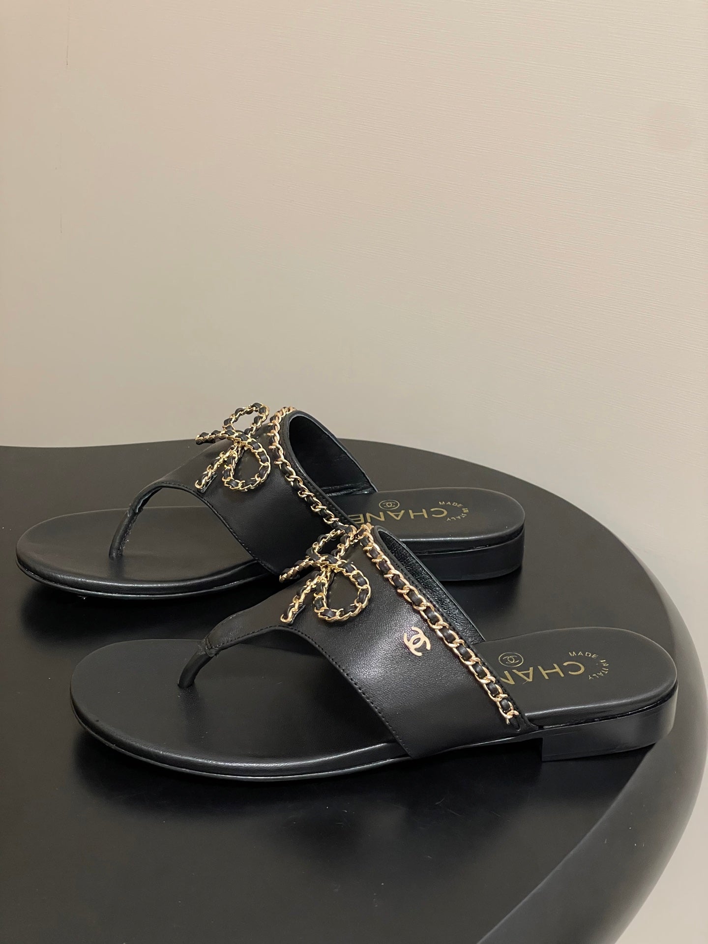 CC 25B Chain Bow Flip-flops Black Sheepskin 393987