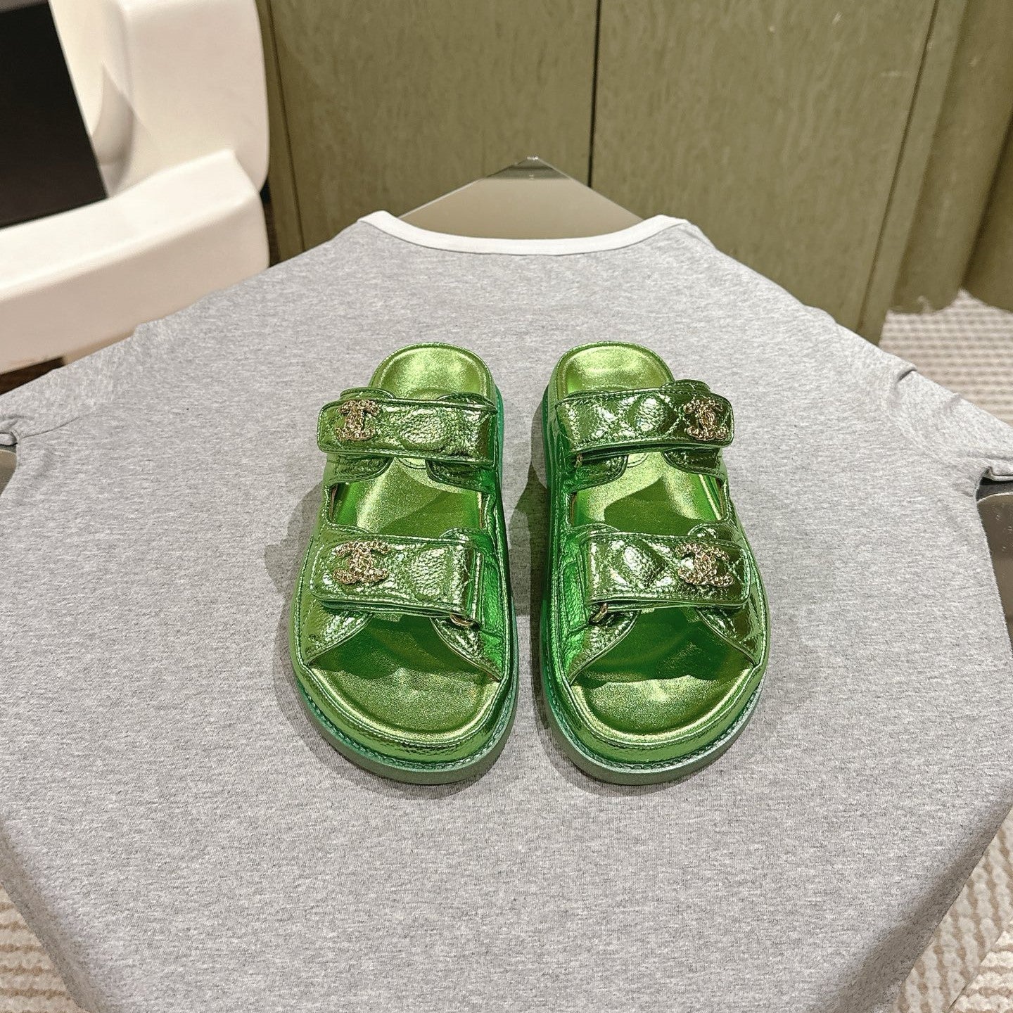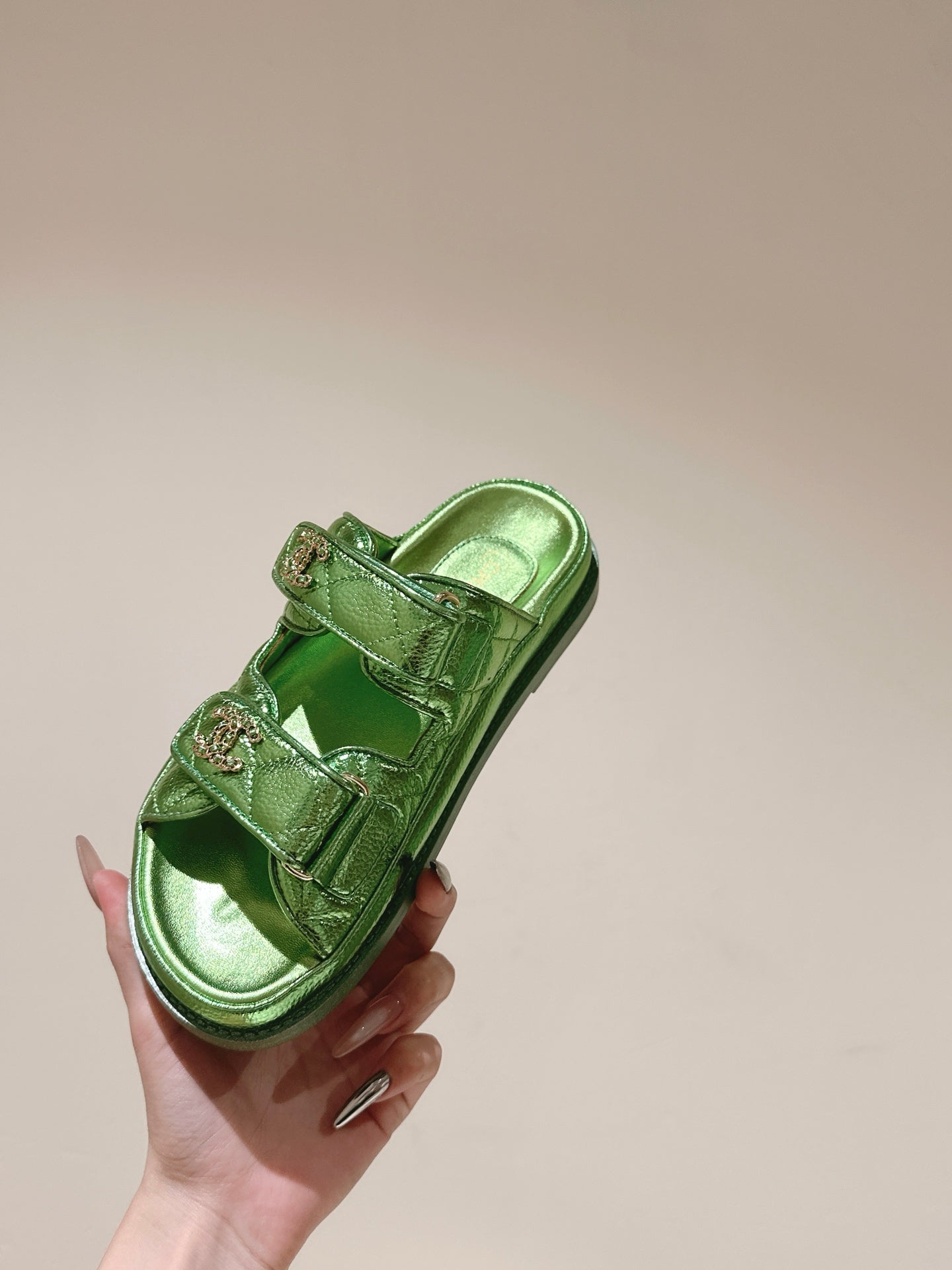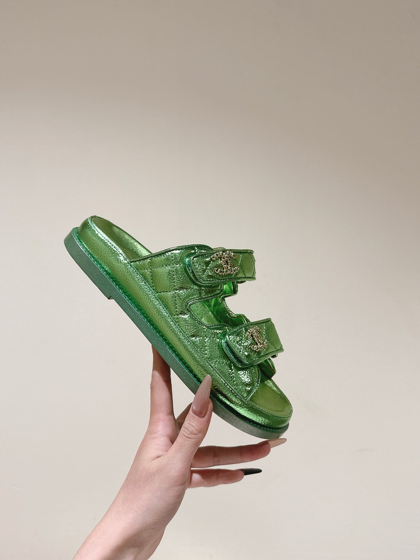 CC 25C Dad Sandals Mule Green Metalic Grained Calfskin 462215