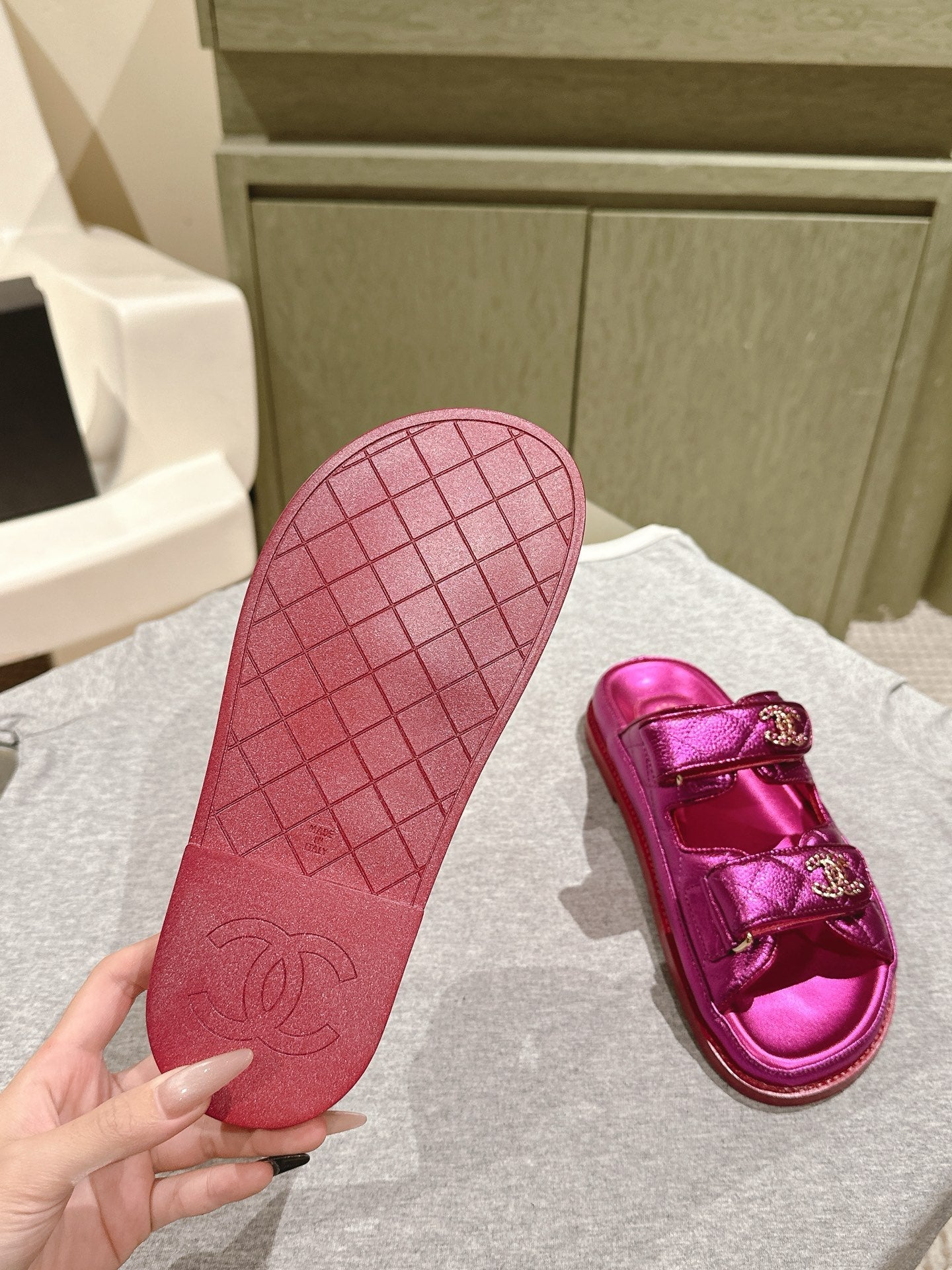 CC 25C Dad Sandals Mule Pink Metalic Grained Calfskin 462217
