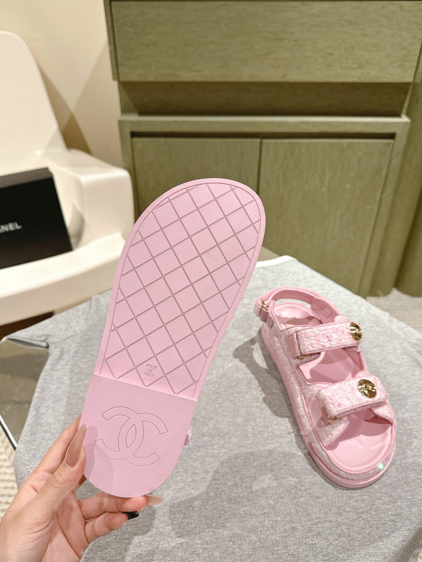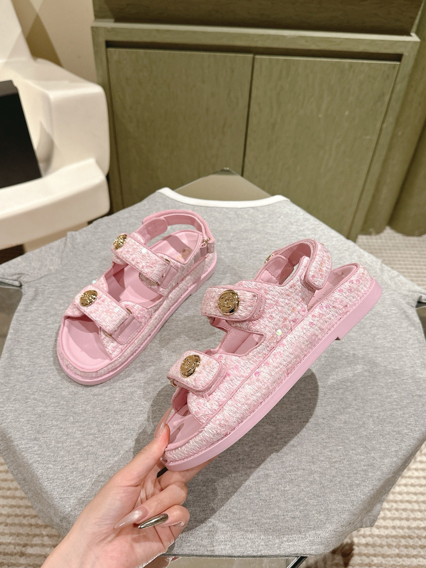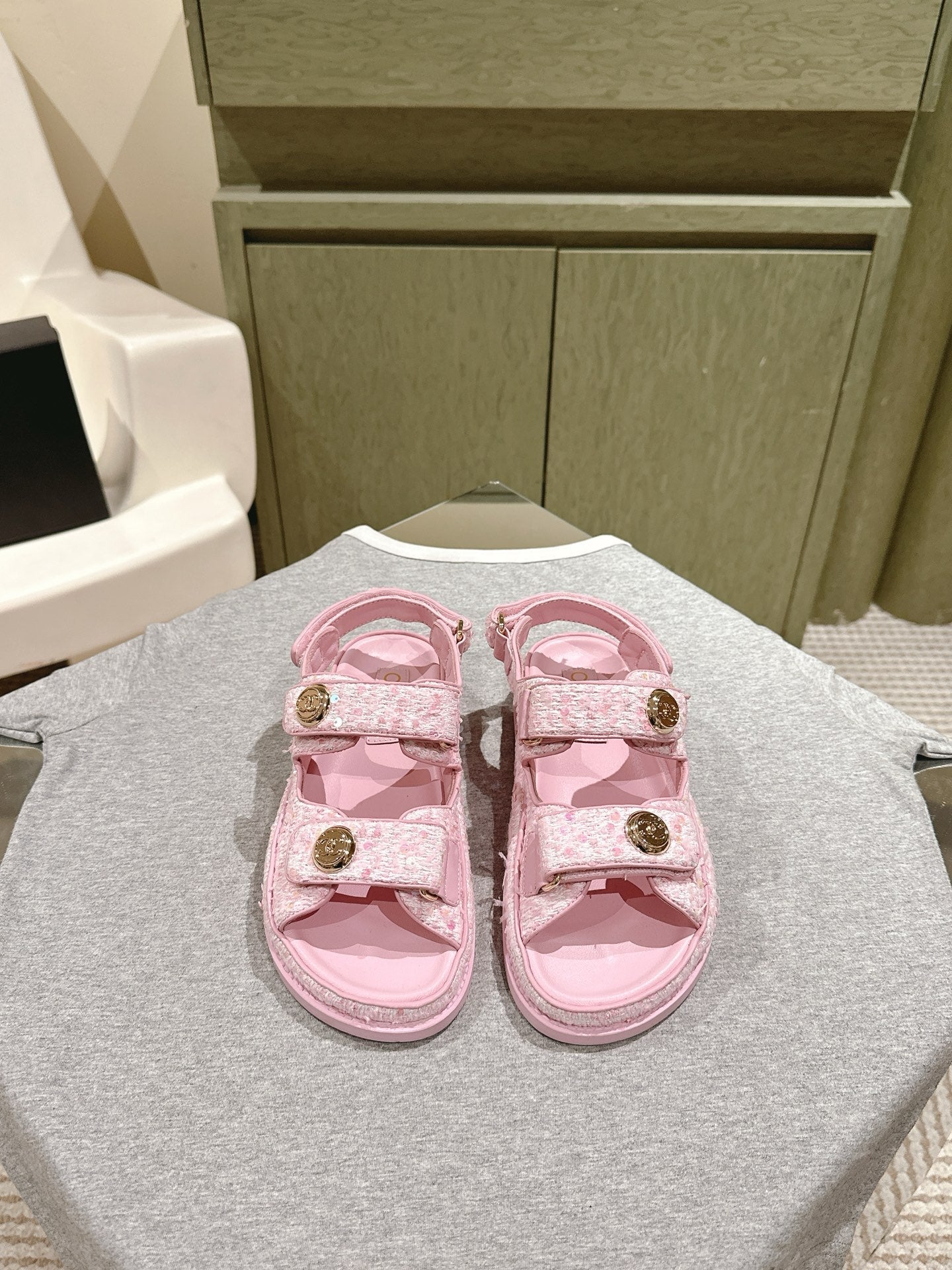 CC 25C Dad Sandals PInk White Tweed 462231
