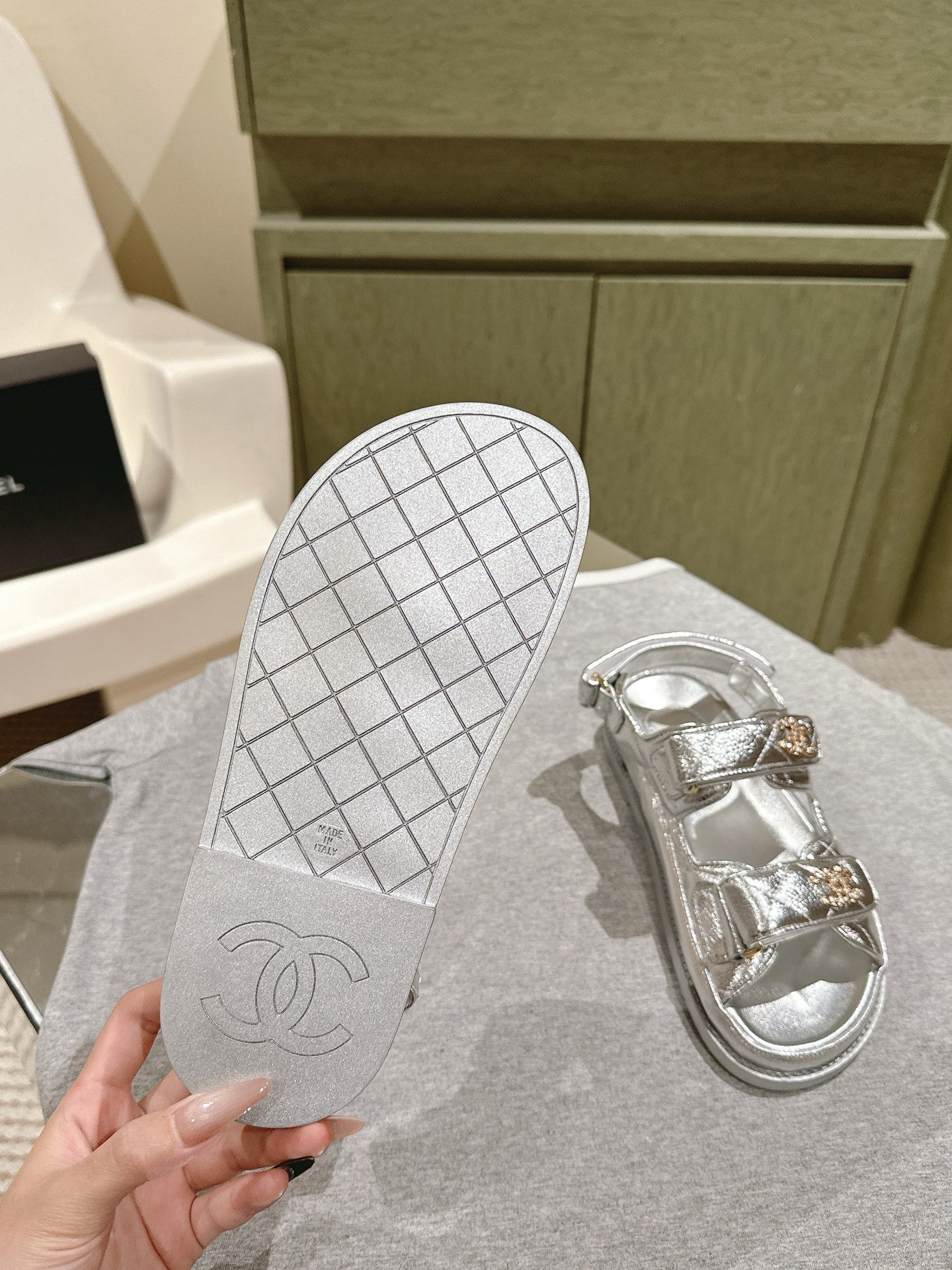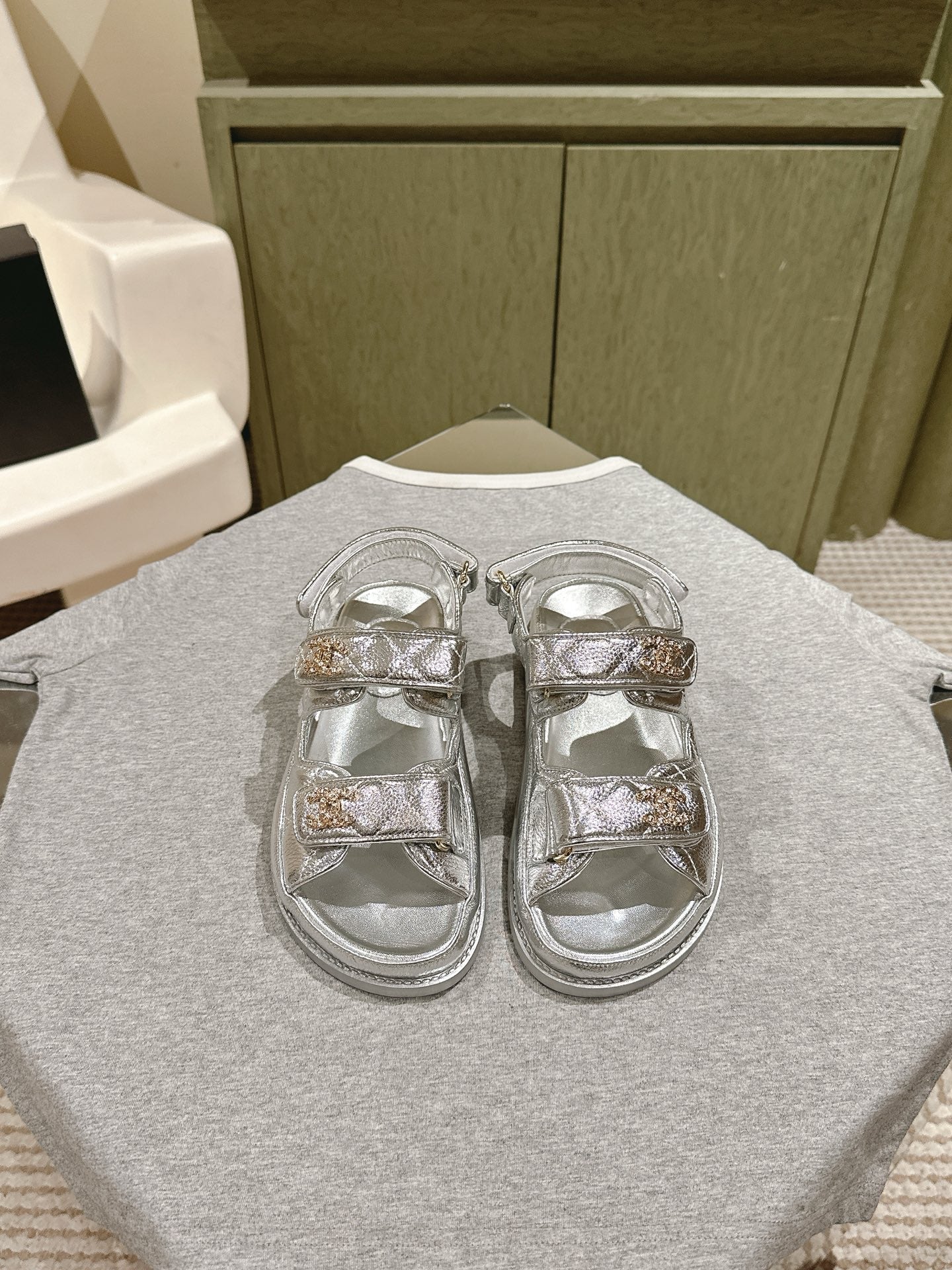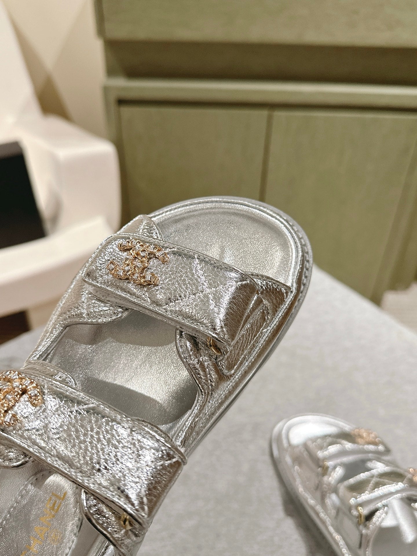 CC 25C Dad Sandals Silver Metalic Grained Calfskin 462236