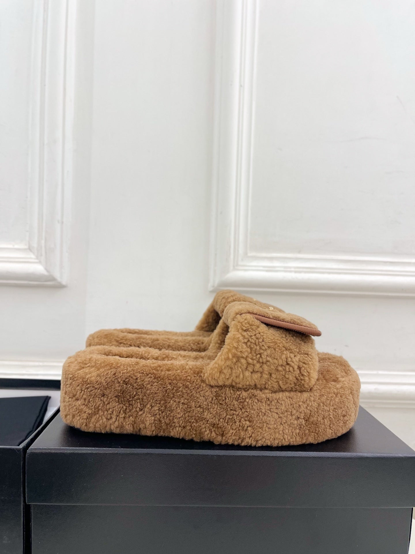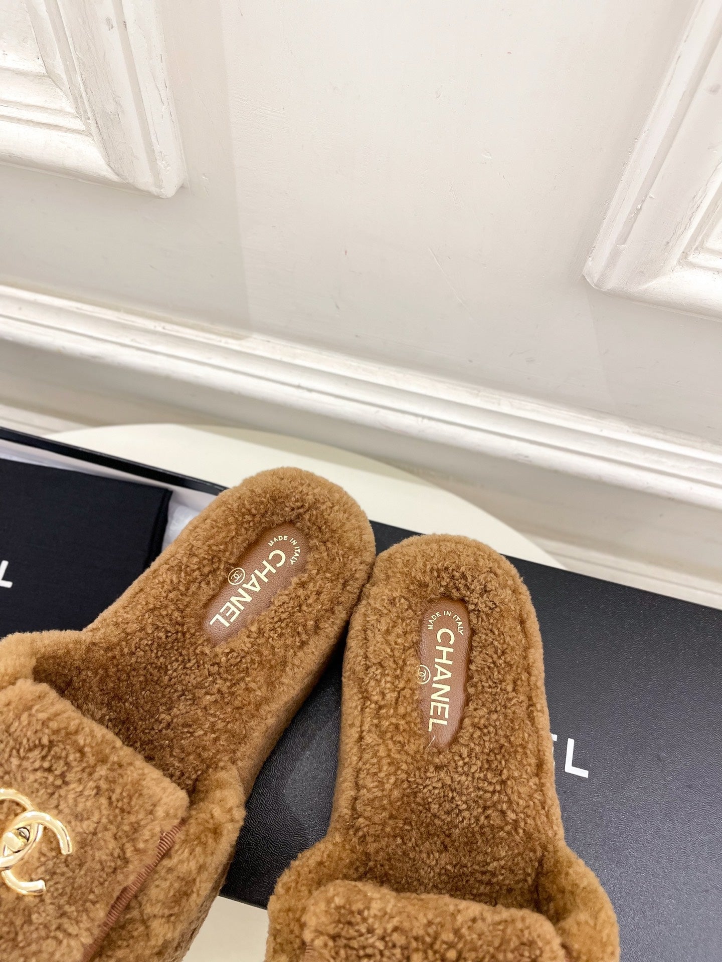 CC 25s Logo Slippers 50mm Brown Wool GHW 435263