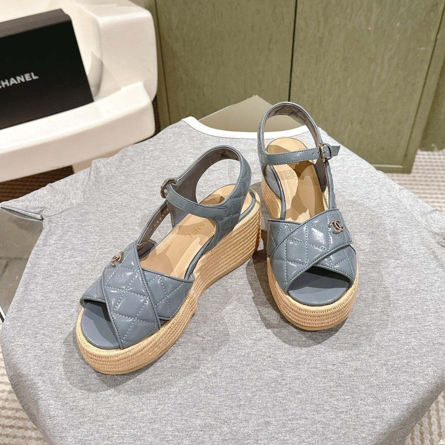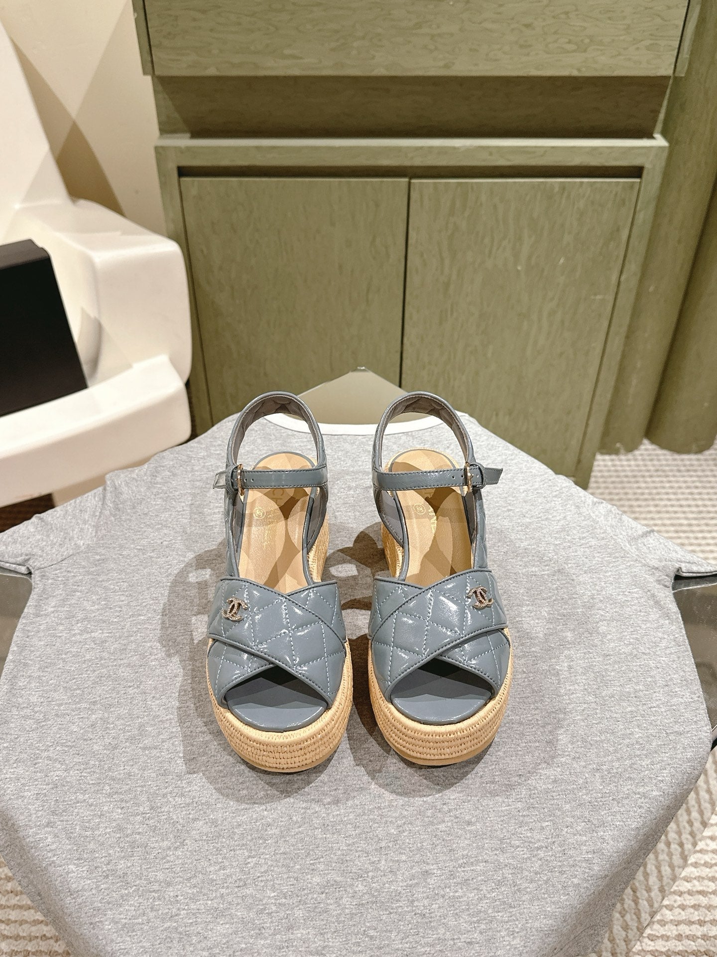 CC 25ss Espadrille Sandals 85mm Slate Blue Quited Sheepskin 462241