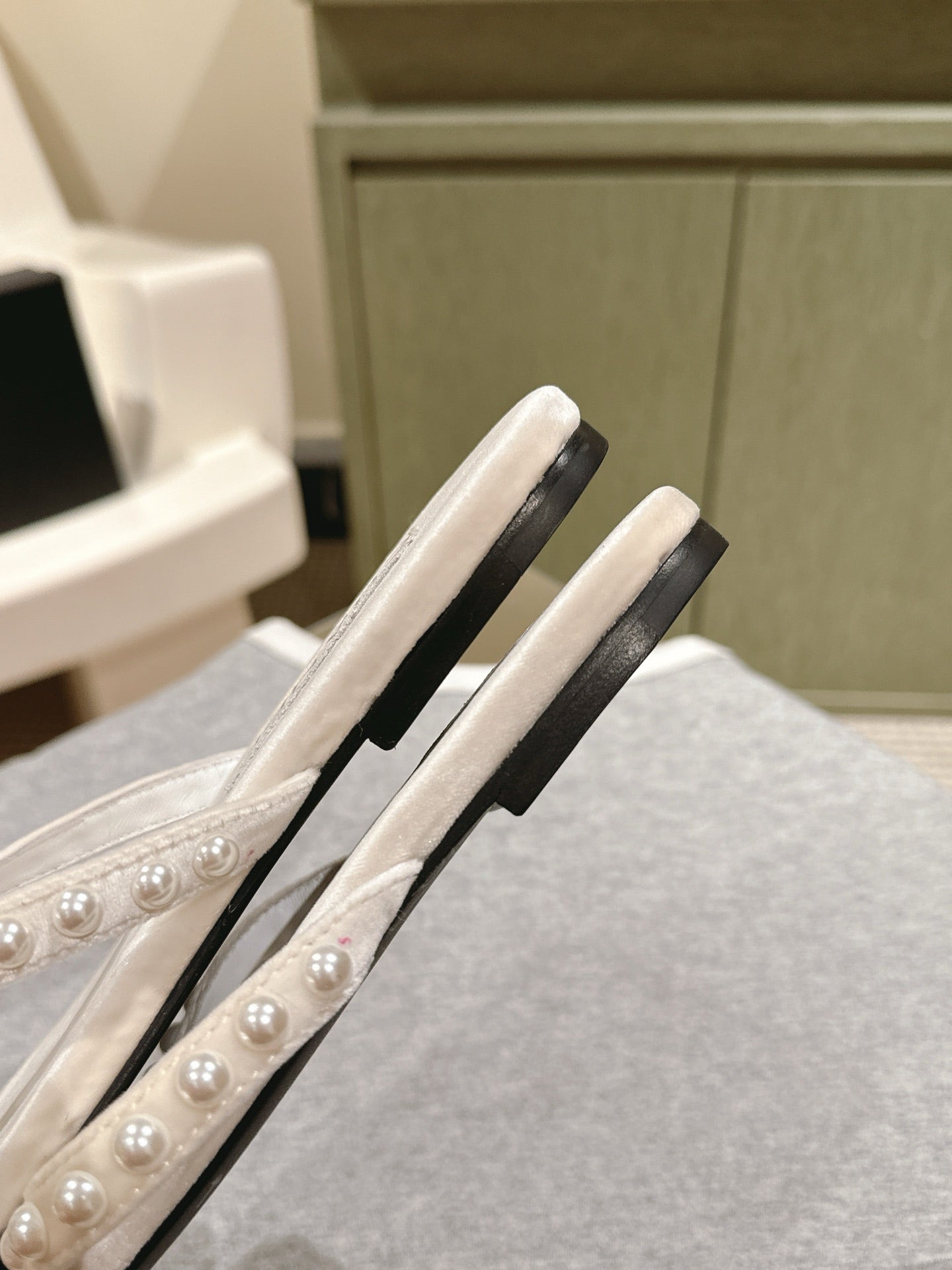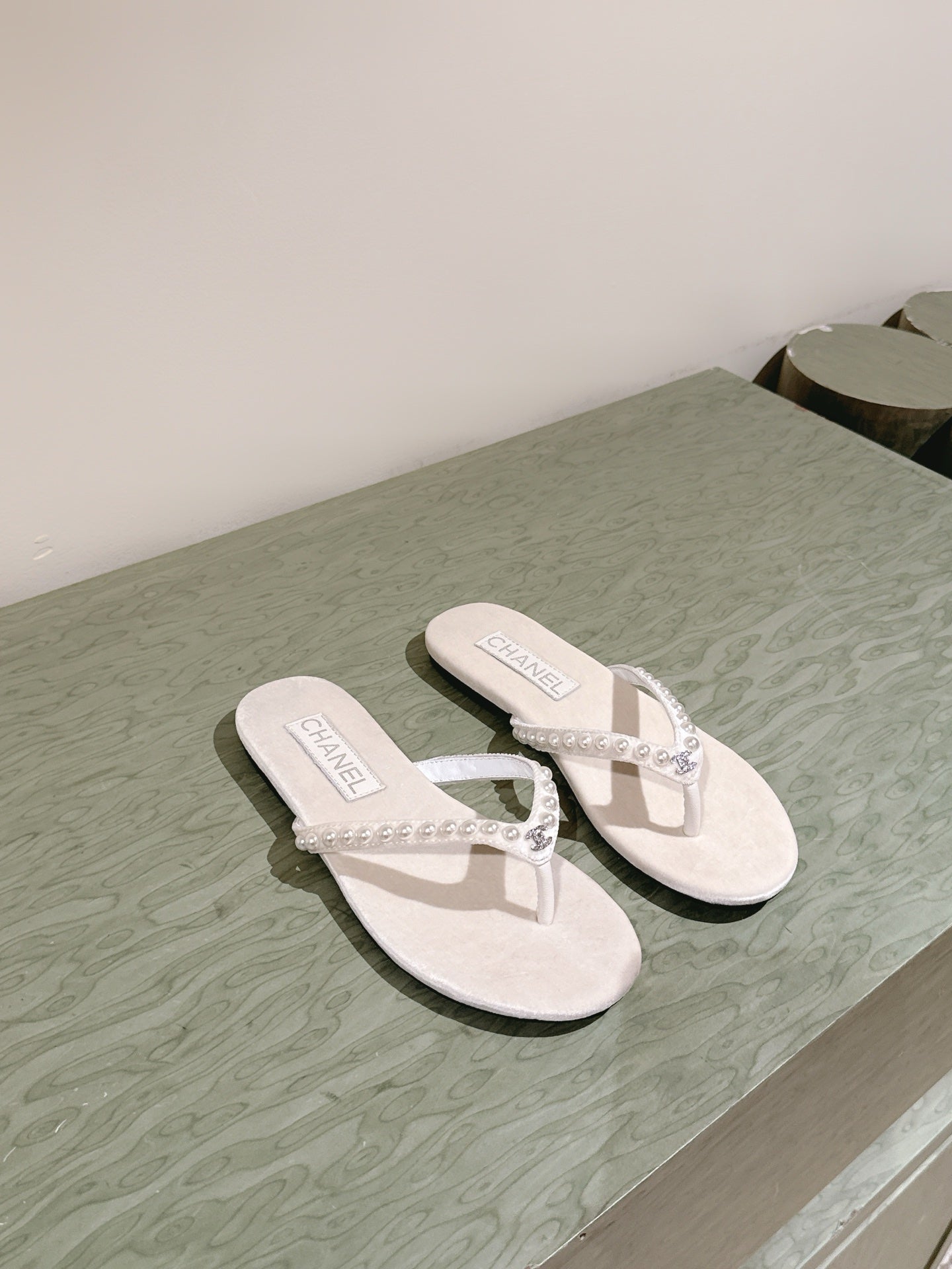CC 25ss Pearl Thong Sandal Beige Velvet 461639