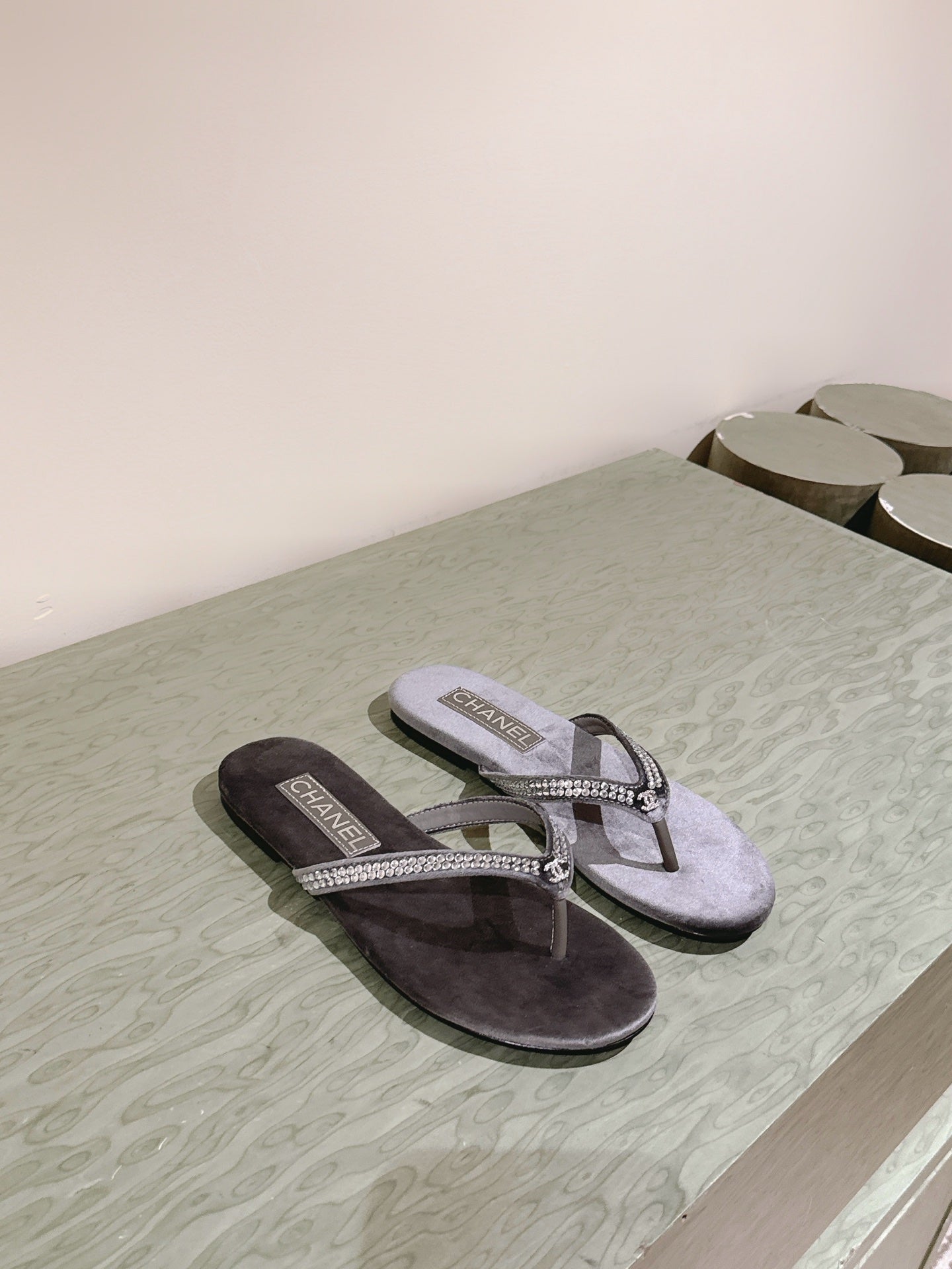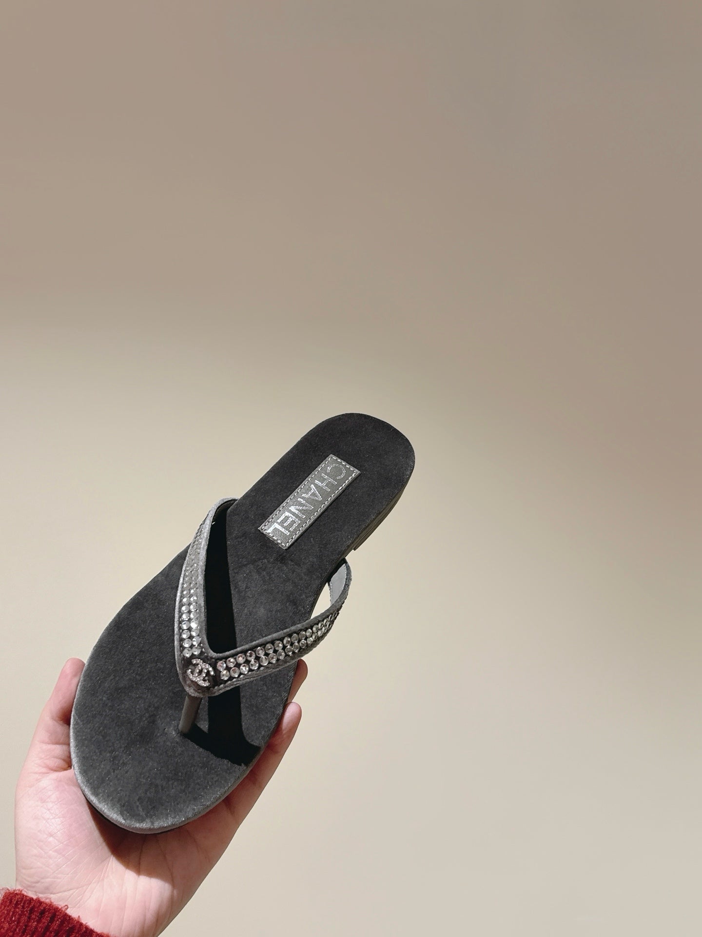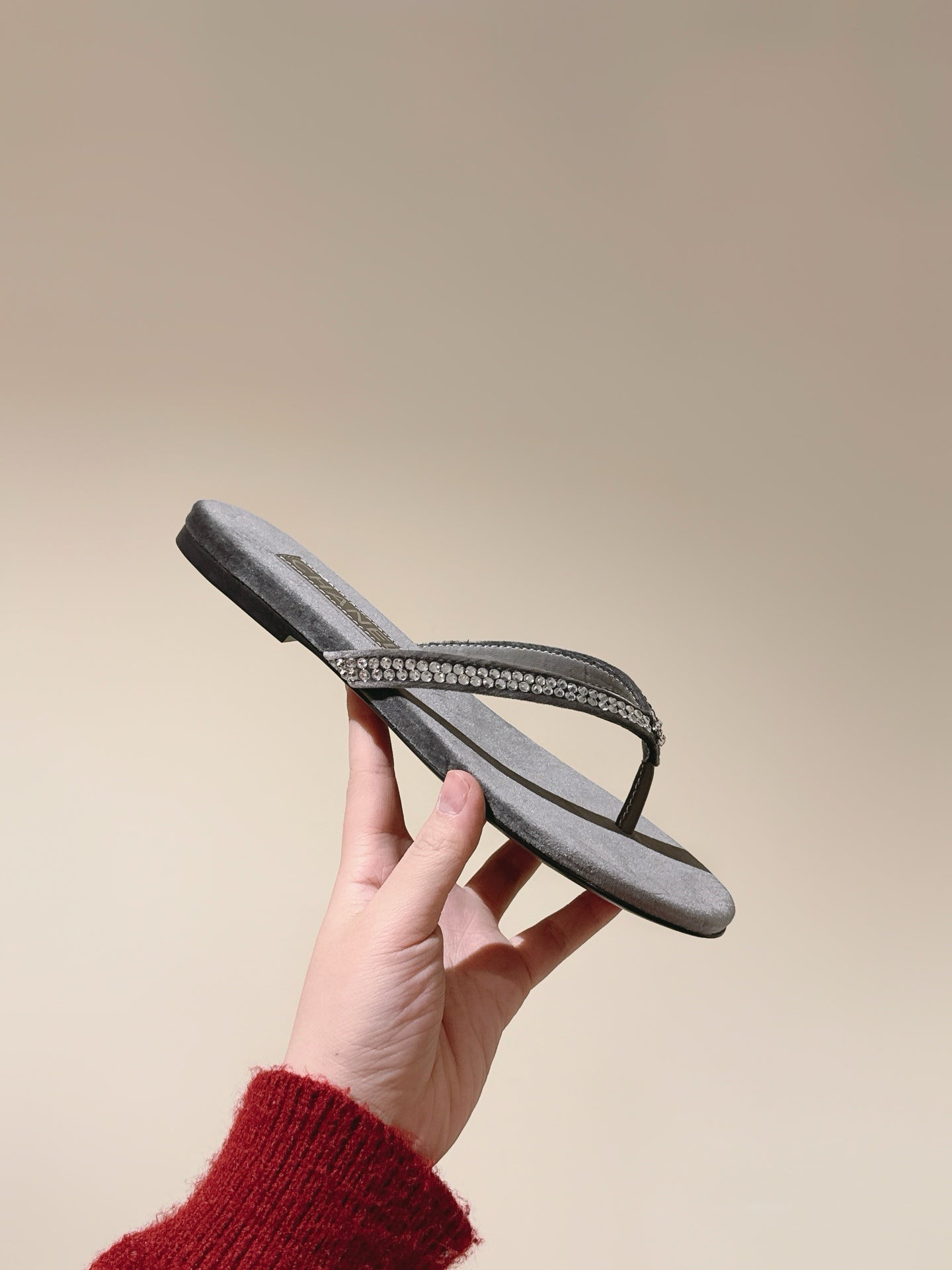 CC 25ss Rhinestone Thong Sandal Black Mix Grey Velvet 461635