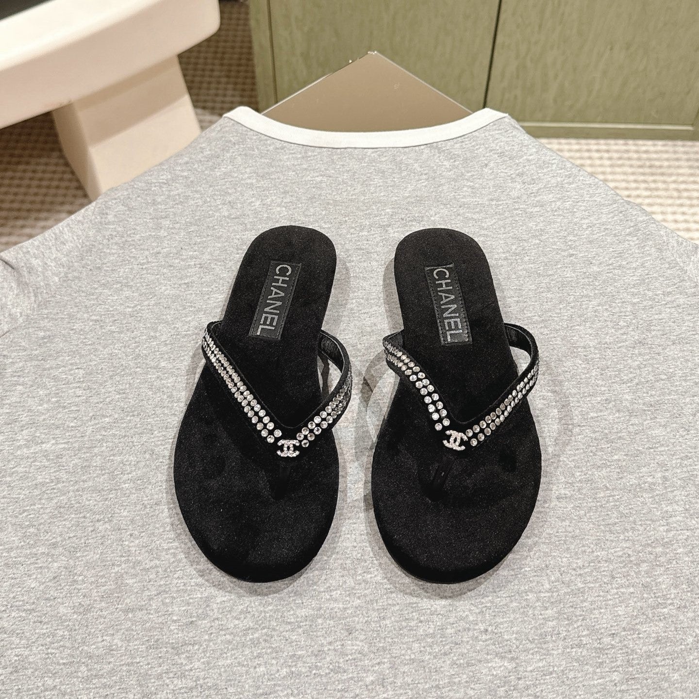 CC 25ss Rhinestone Thong Sandal Black Velvet 461637