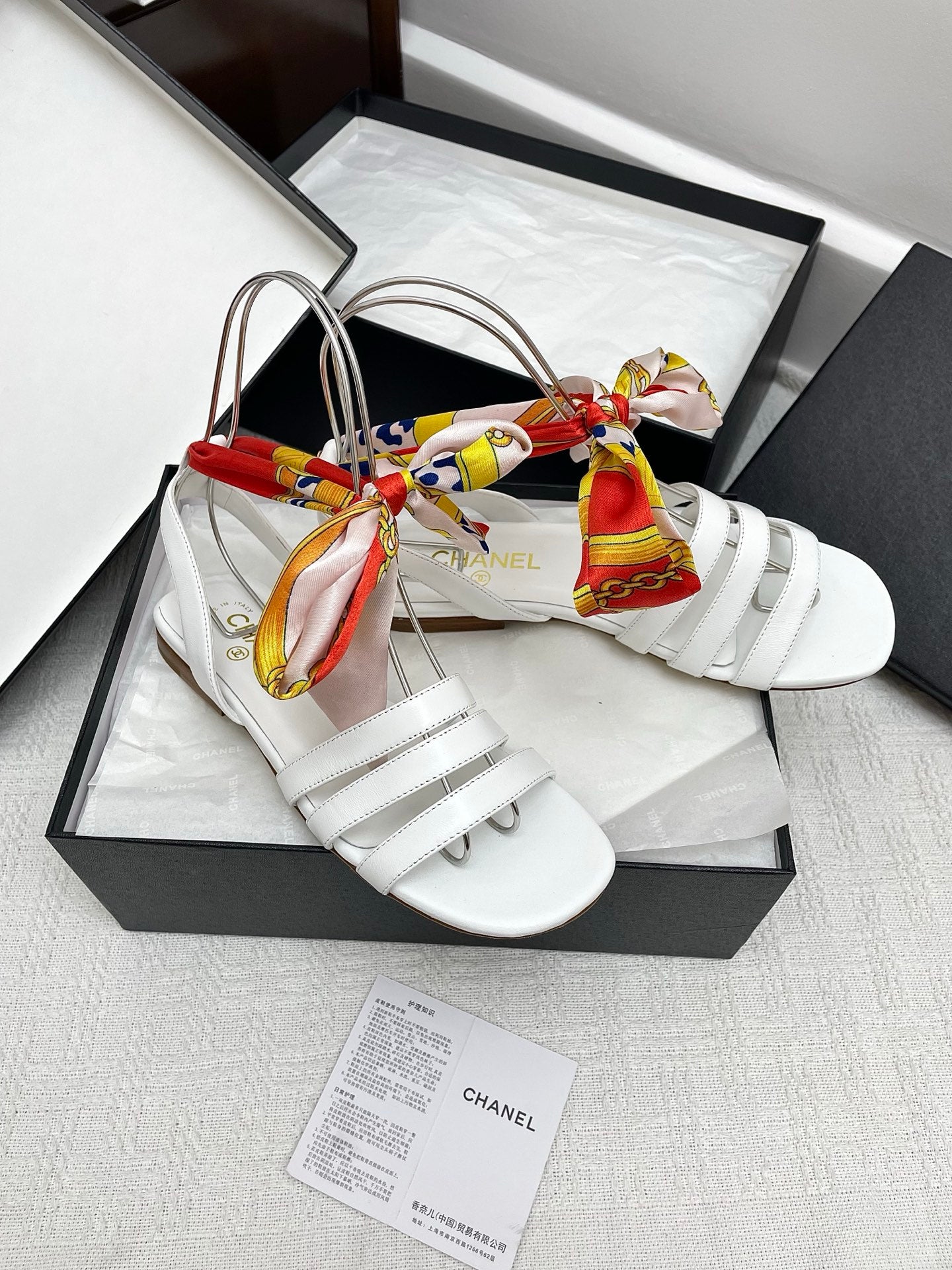 CC 25SS Sandals Three Straps White Calfskin 338324