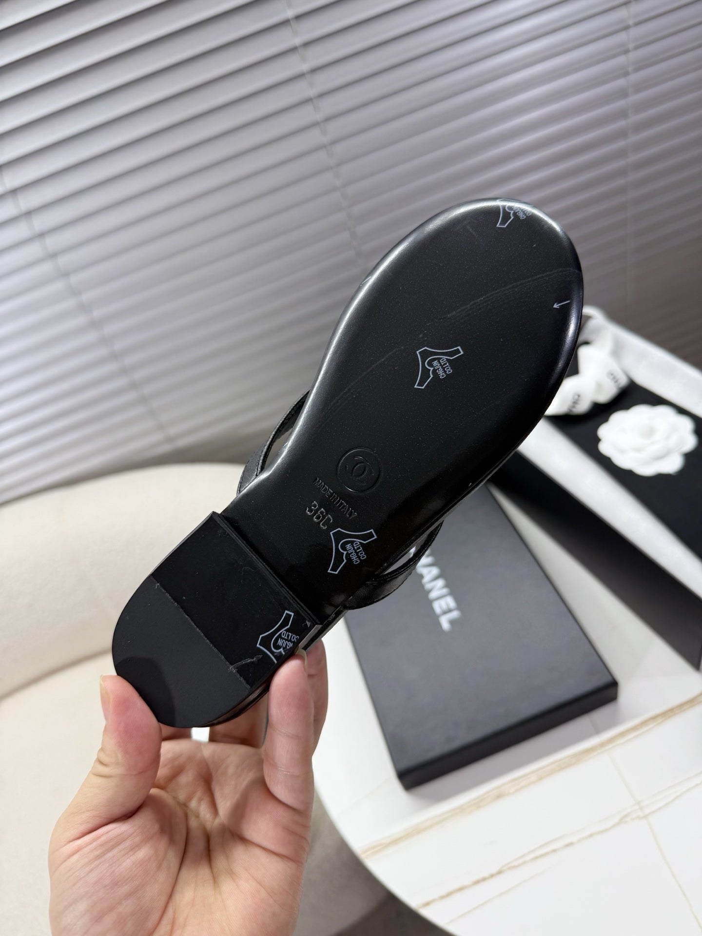 CC 25SS Thong Sandals Double C Rhinestone Black Sheepskin 352435