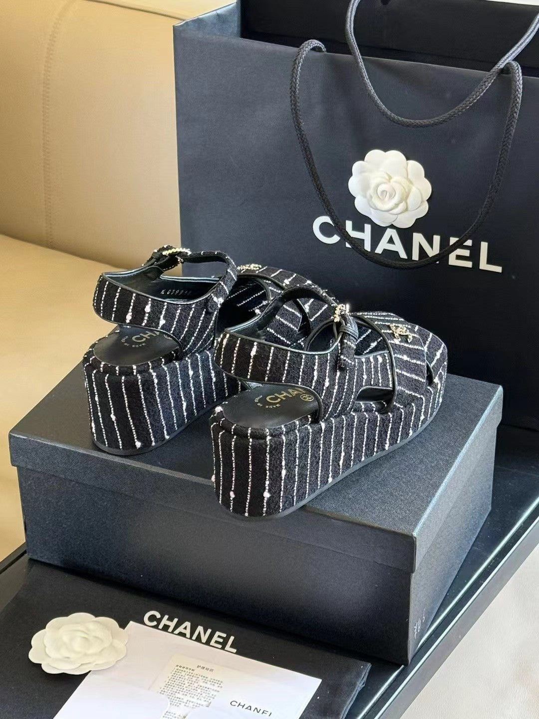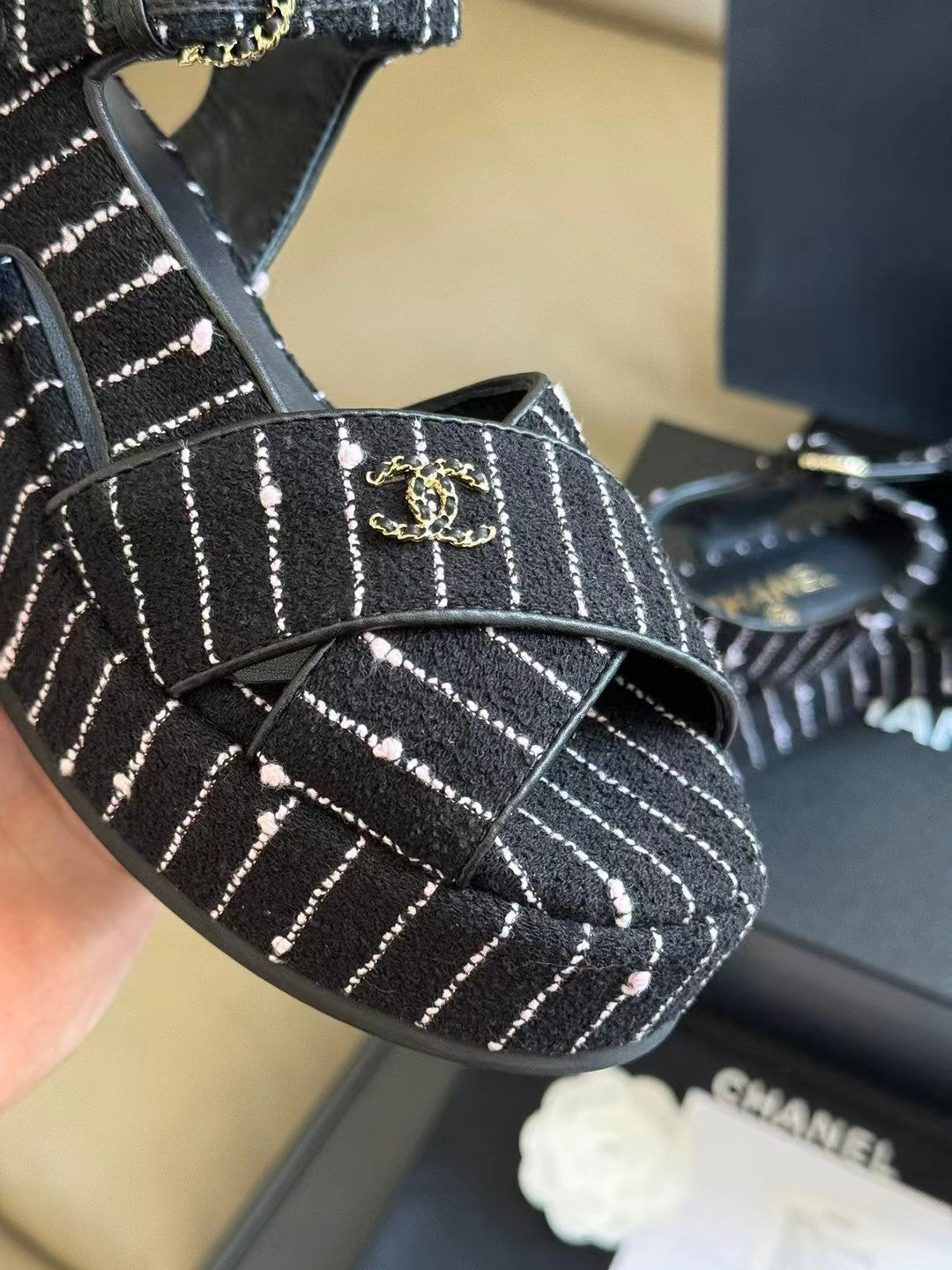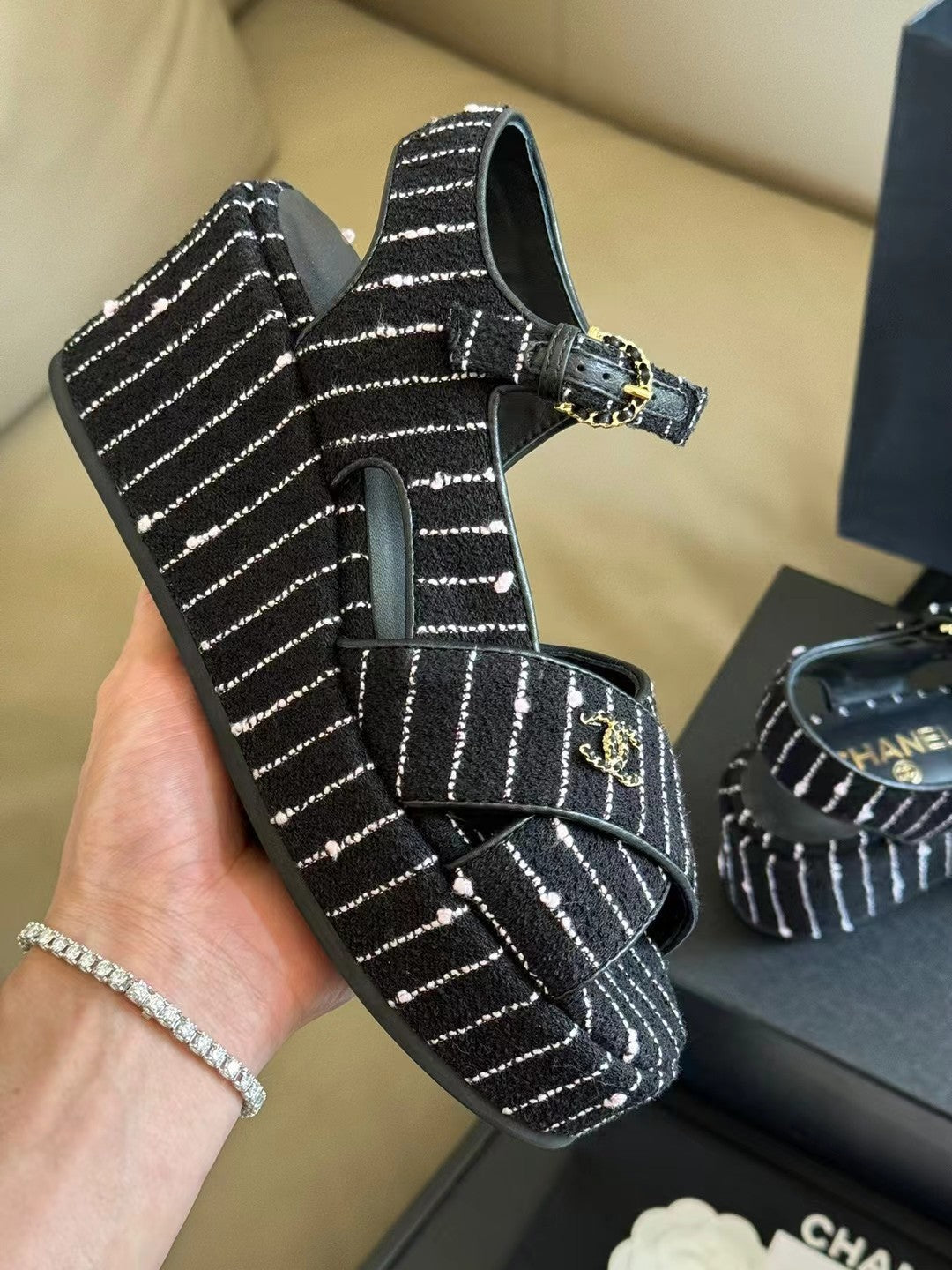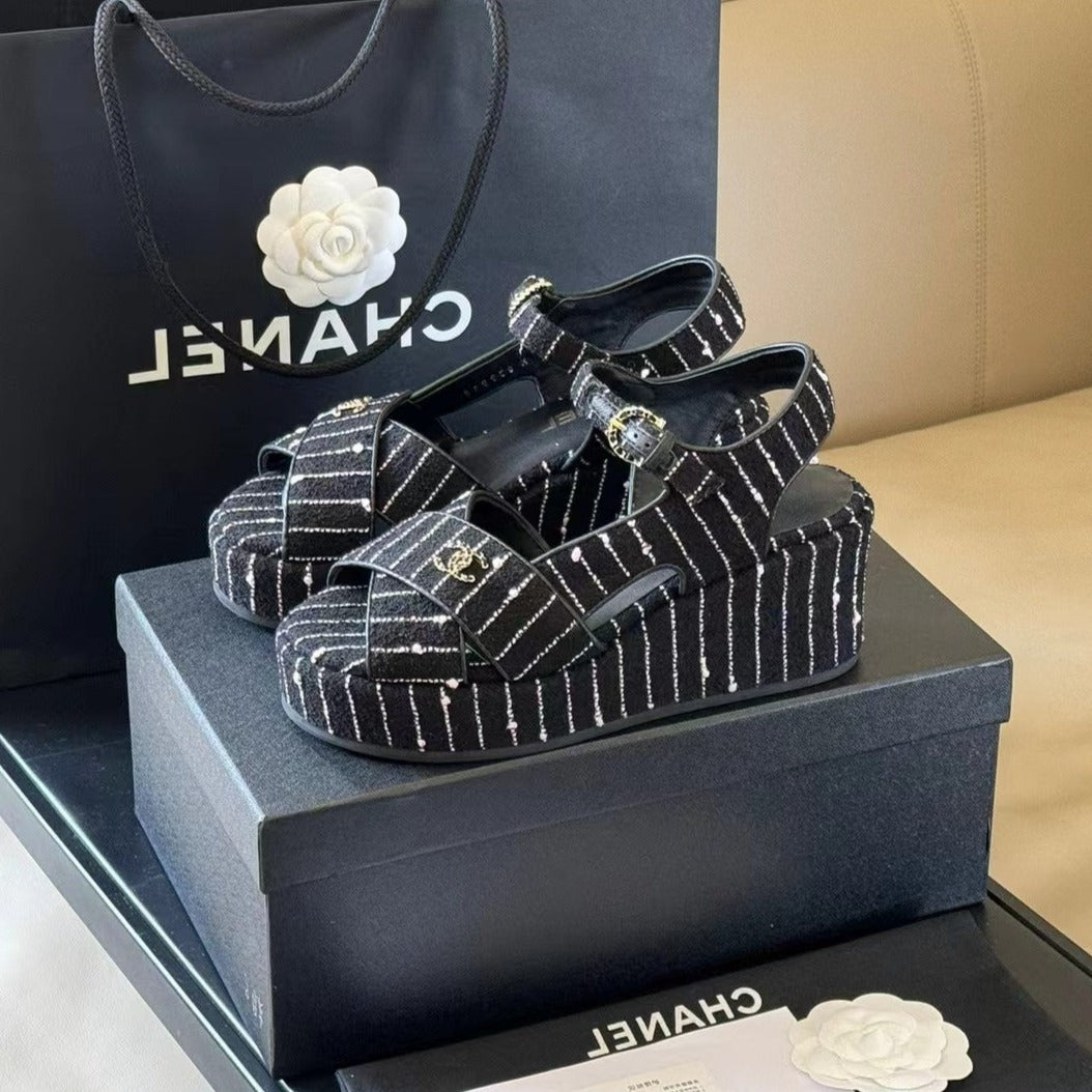 CC CLASSIC WEDGE SANDALS IN BLACK WHITE LAMBSKIN SUEDE