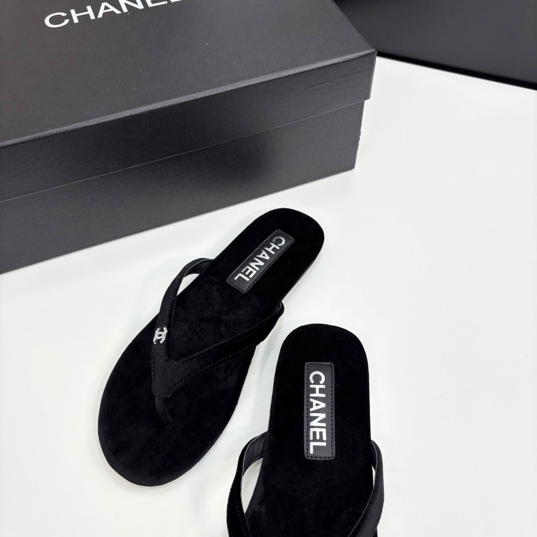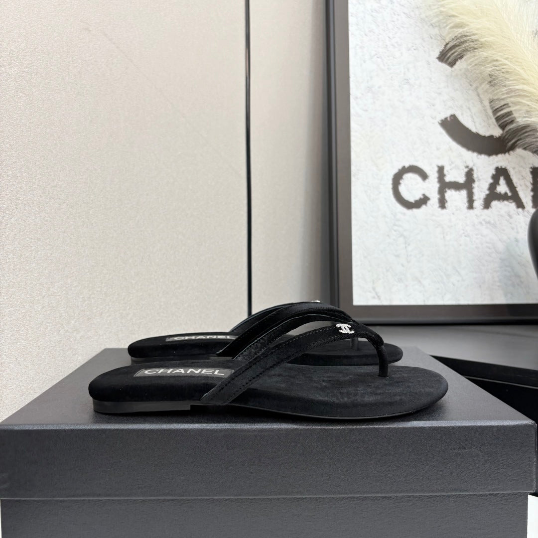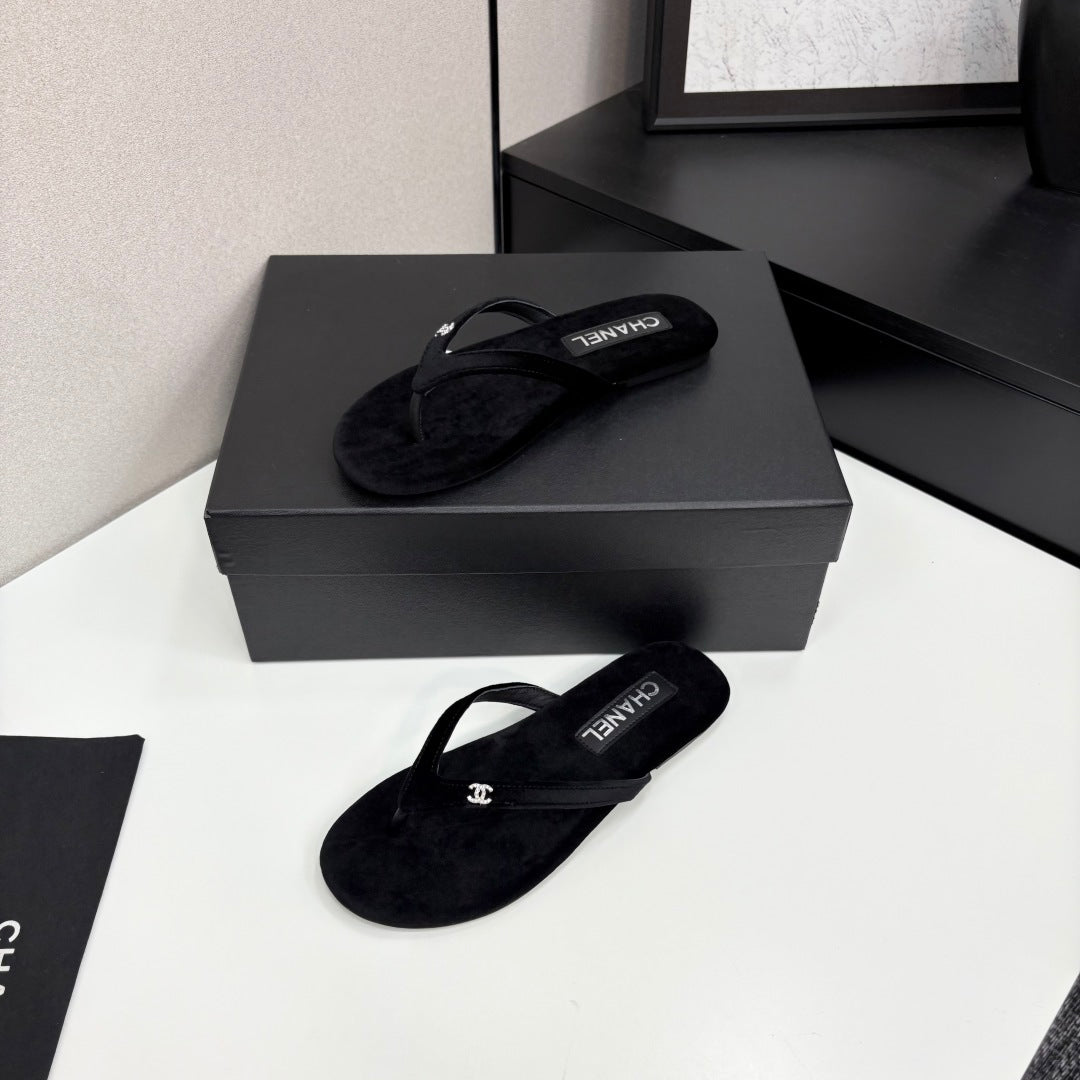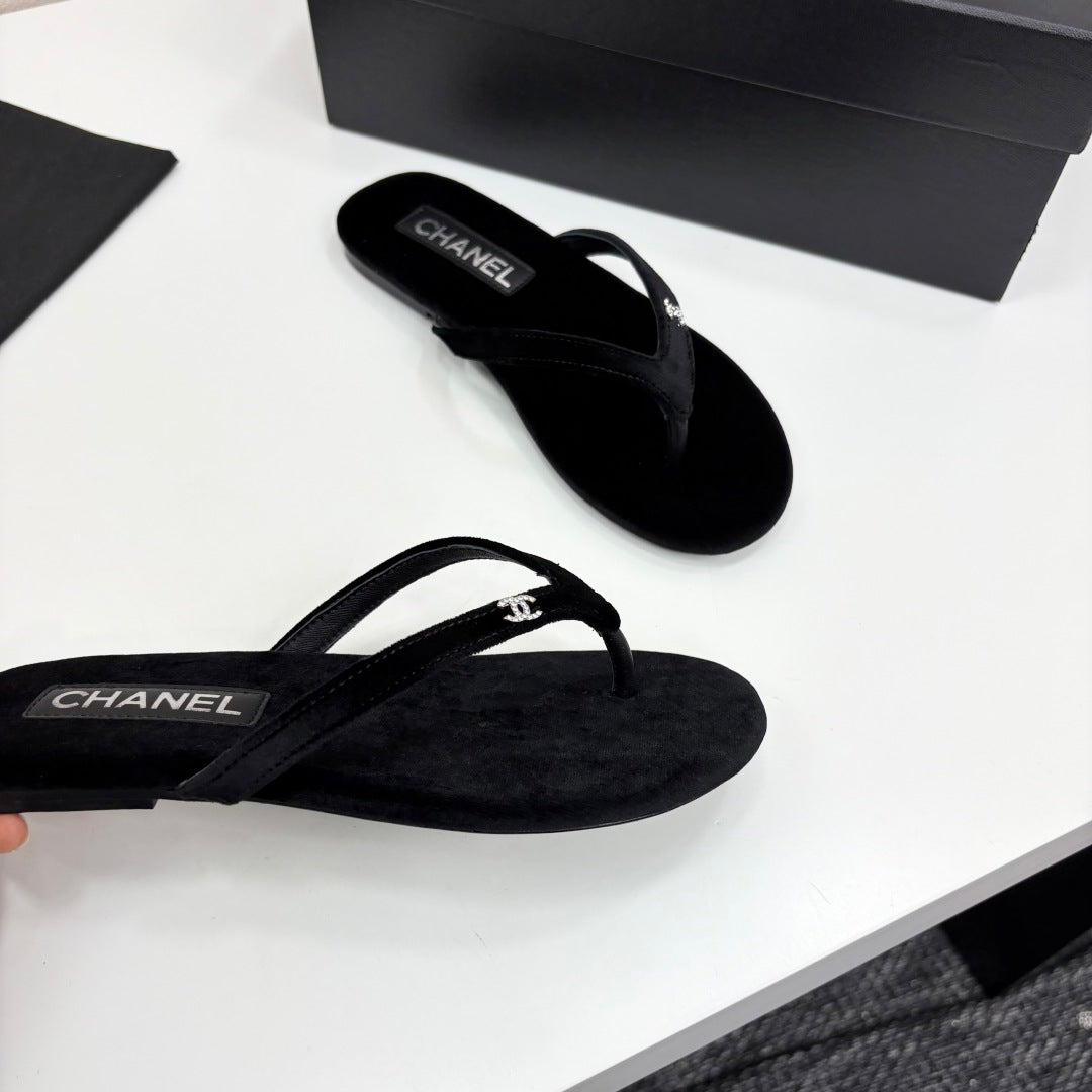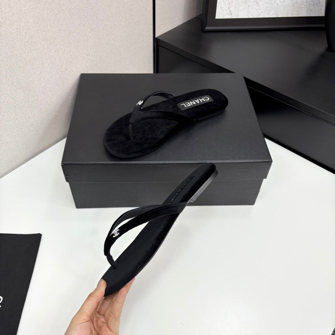 CC Crystal Logo Thong Sandal Black Velvet 352478
