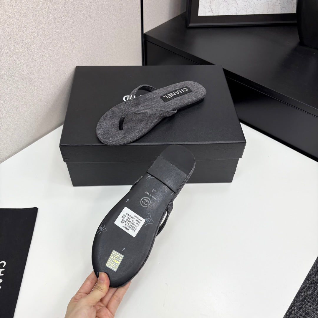 CC Crystal Logo Thong Sandal Grey Fabric And Sheepskin 352482