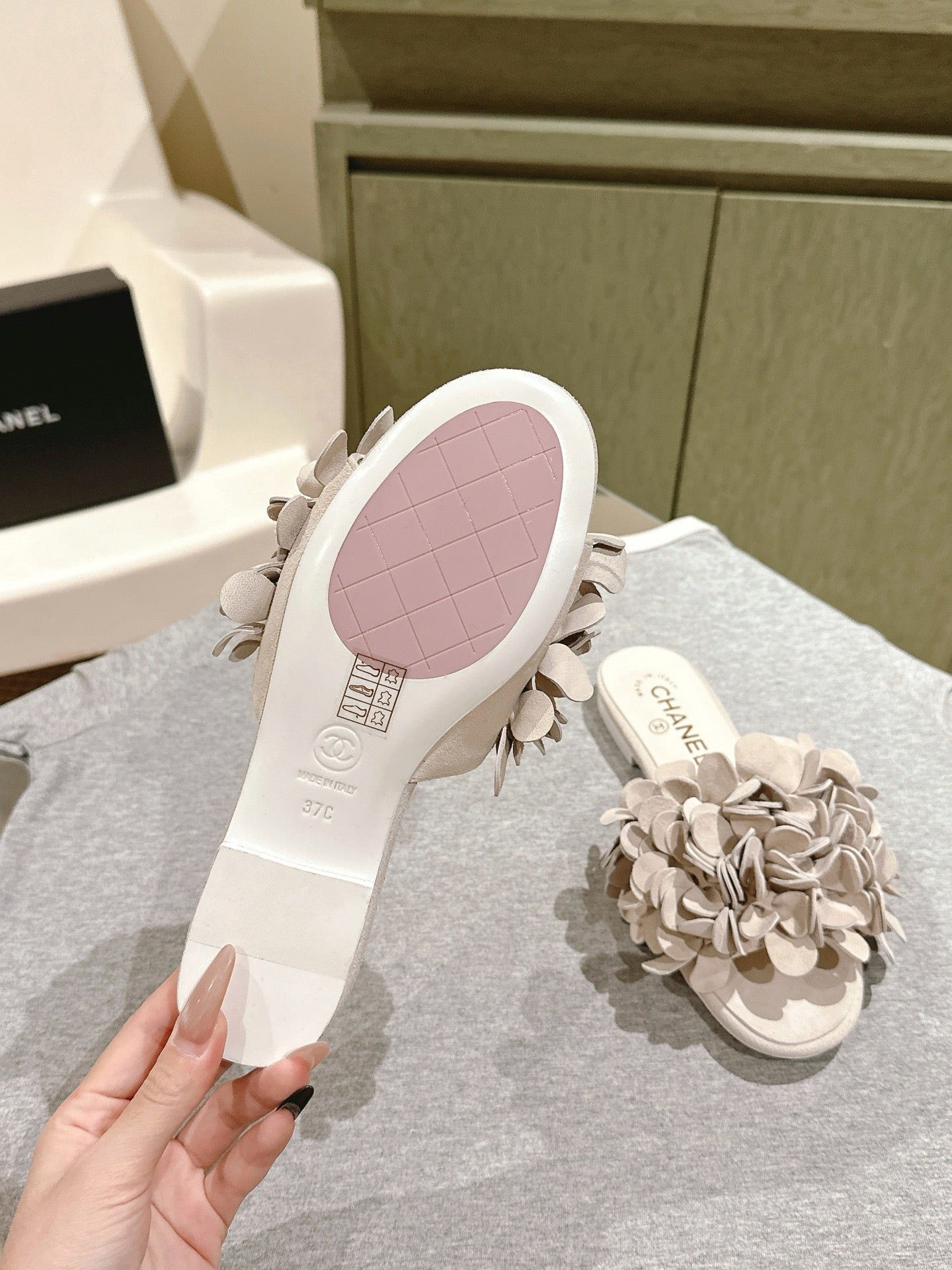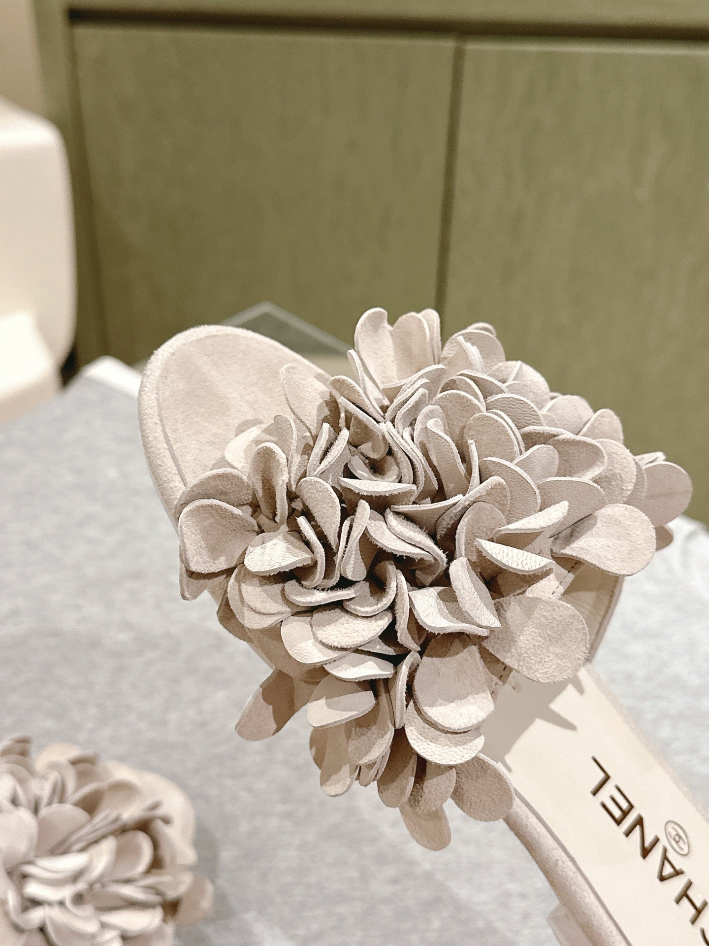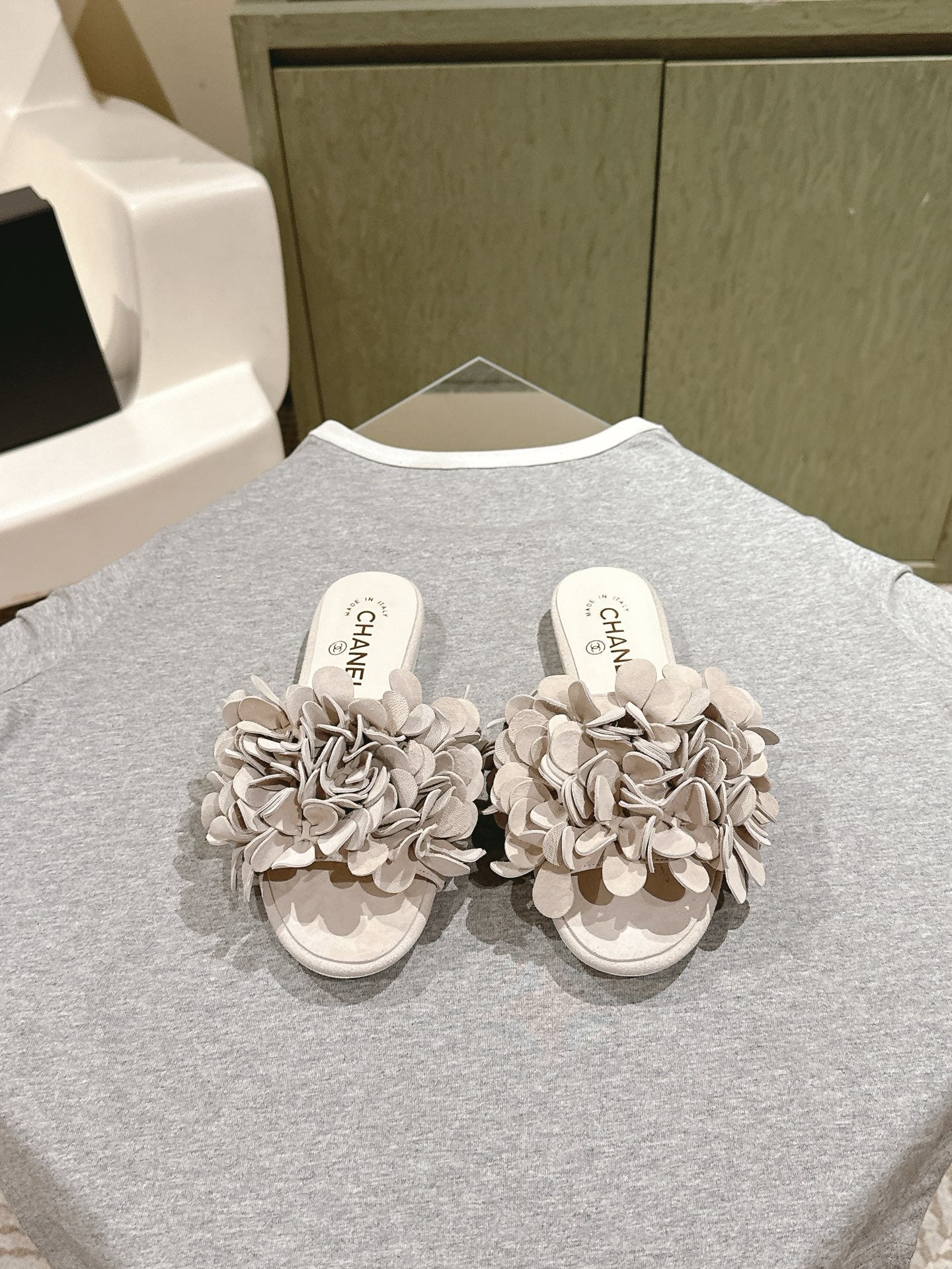 CC Floral Slide Flat Light Taupe Suede Cowhide 454280