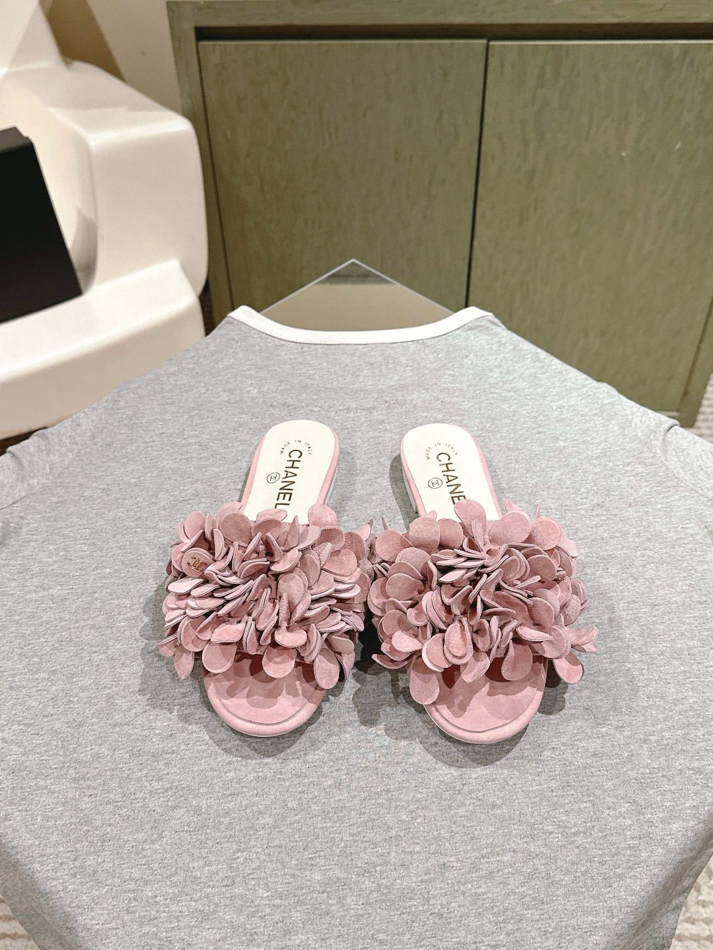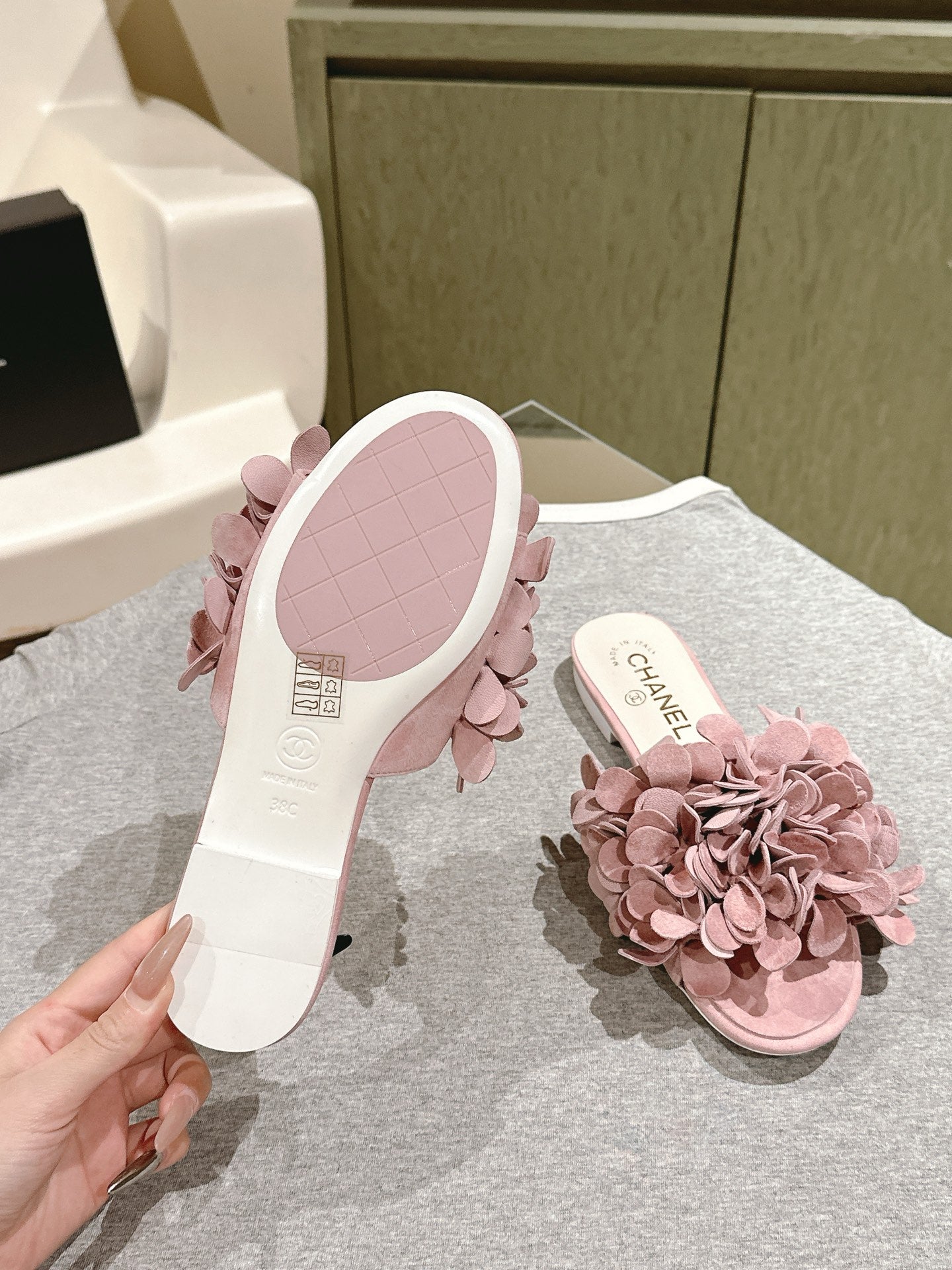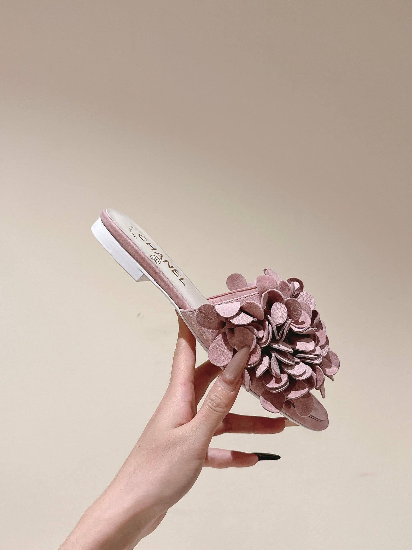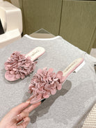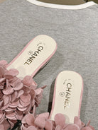 CC Floral Slide Flat Pink Suede Cowhide 454281