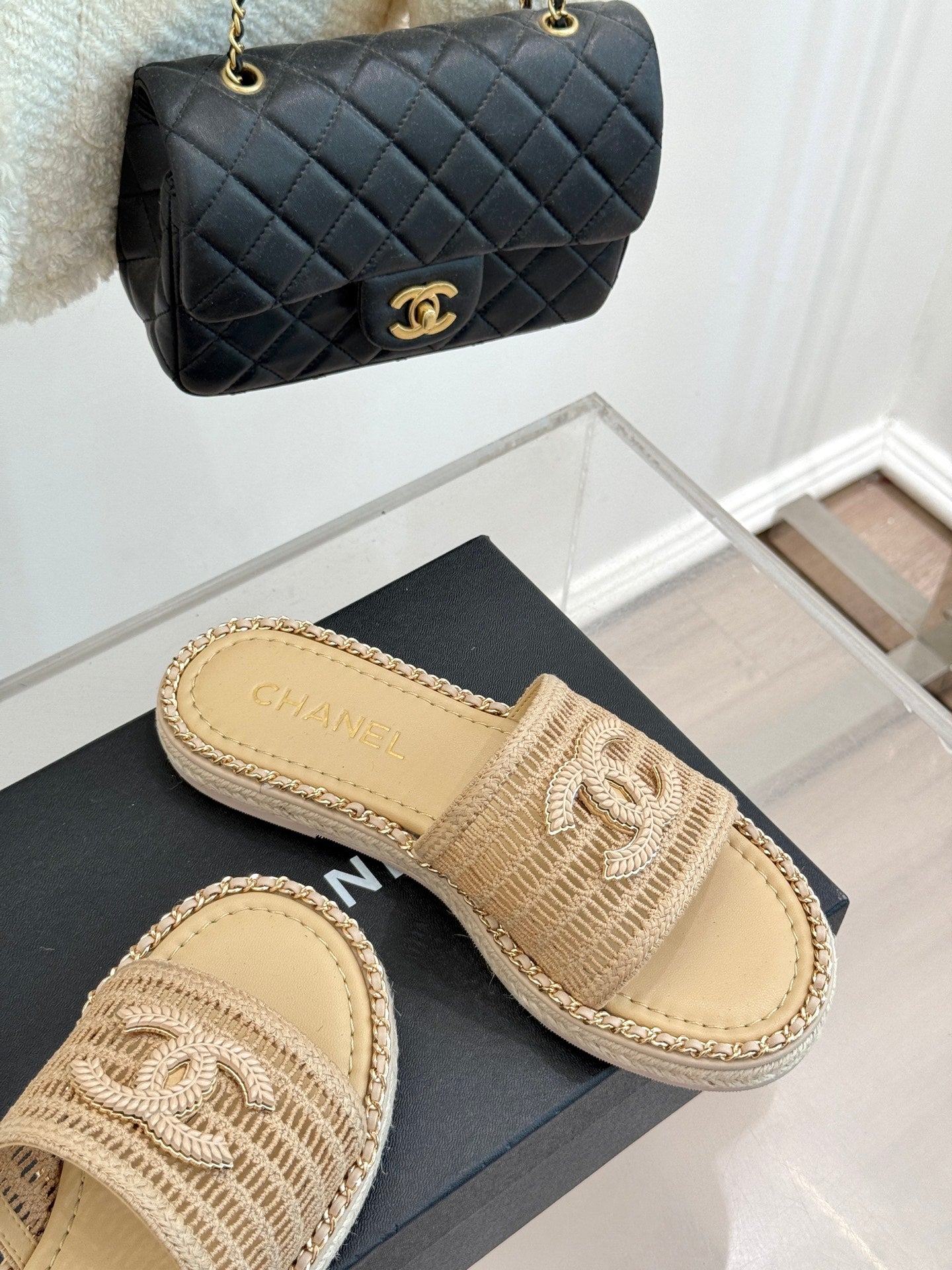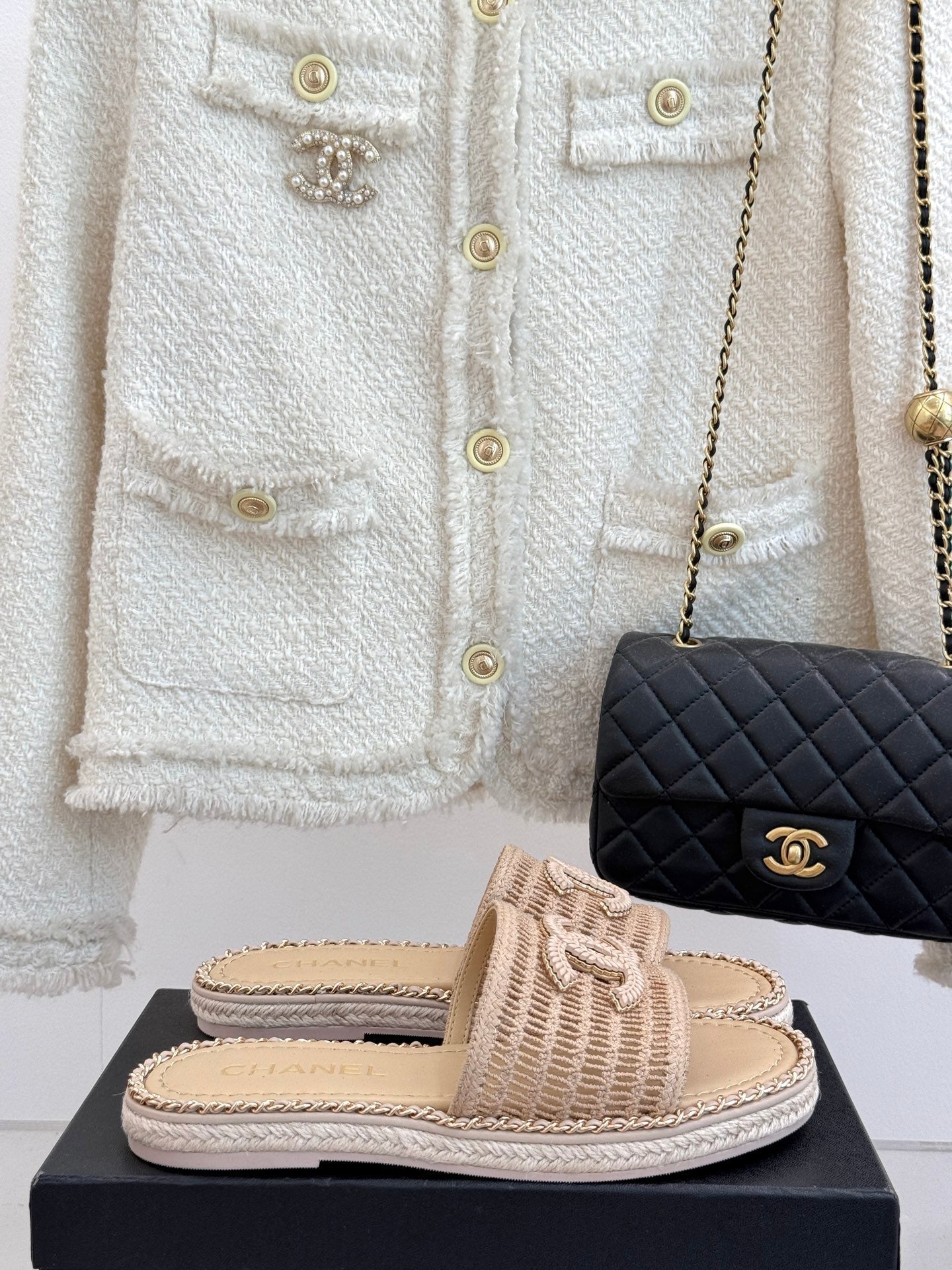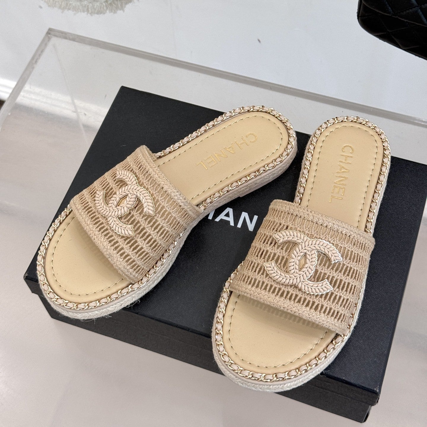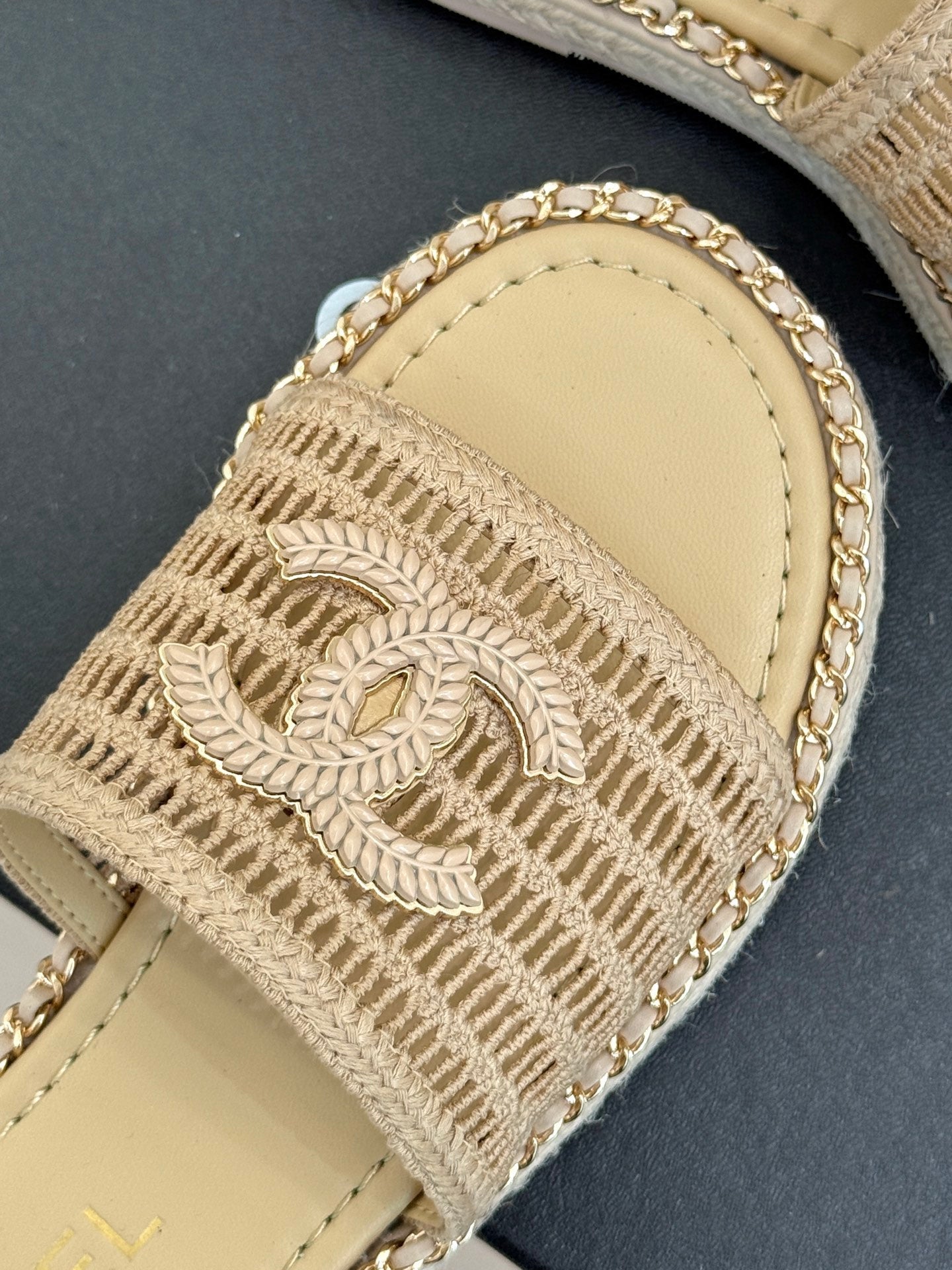 CC Mesh Hollow Chain Double C Thick-Soled Slippers 20mm Beige 265645
