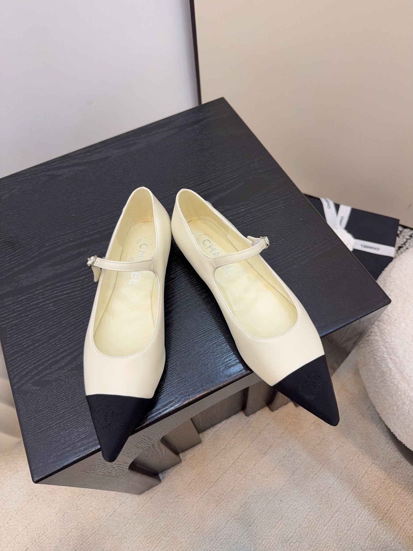 CD FW Mary Janes Light Beige Lambskin & Grosgrain 505040