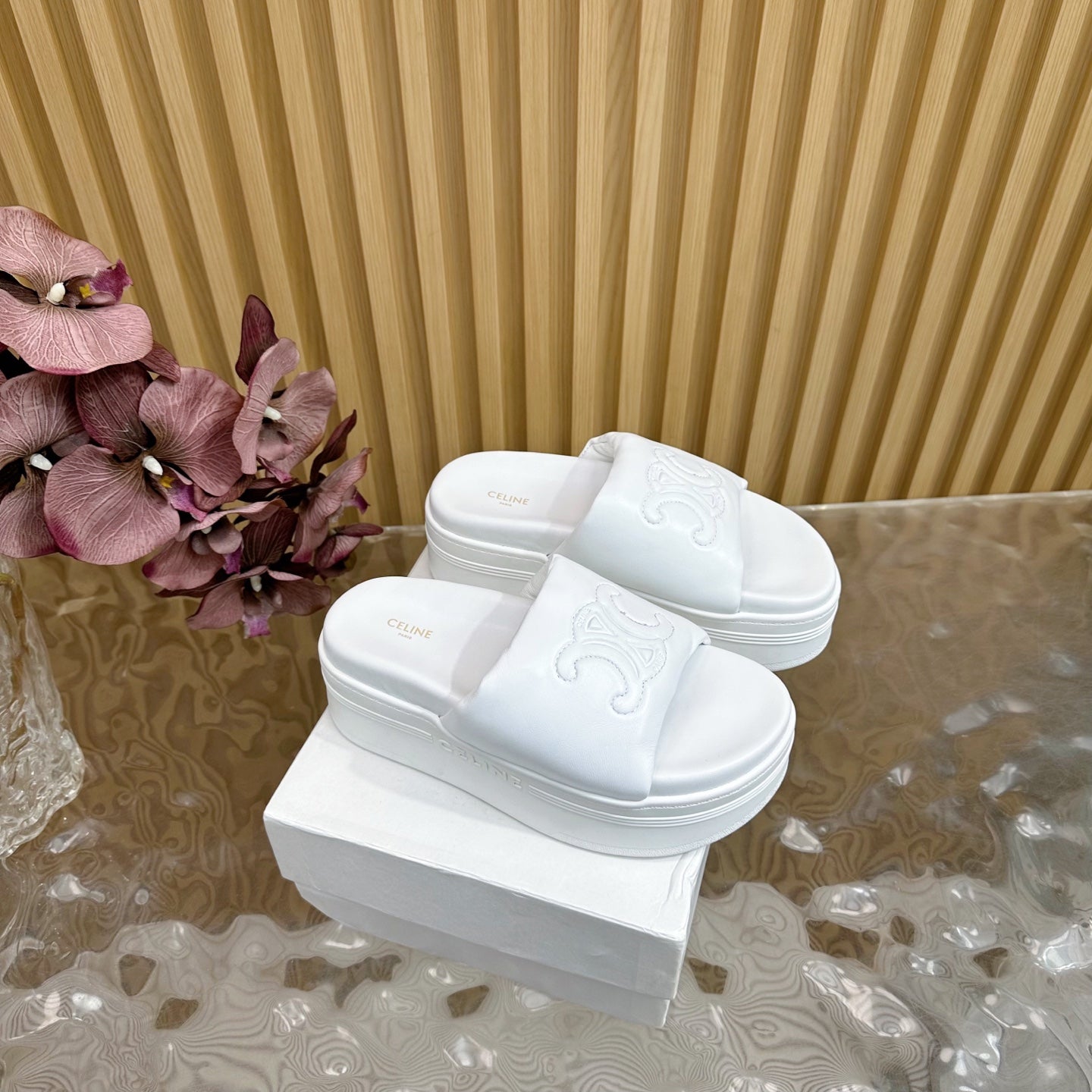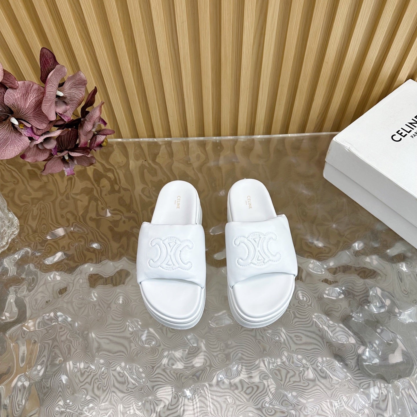 CELINE 25 Sline Sandal White Sheepskin 285911