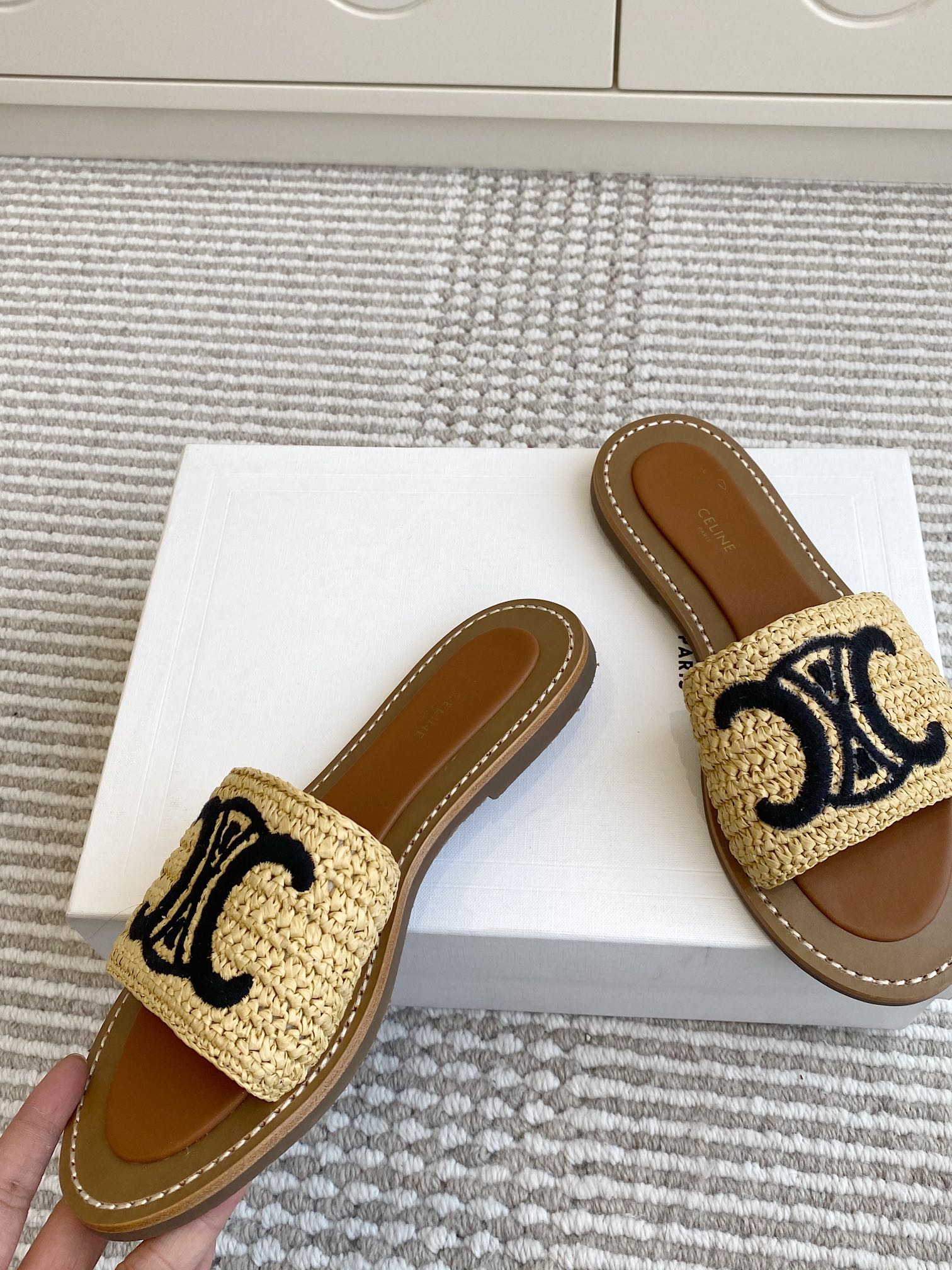 CELINE 25 Slippers Beige Black Sedge 285982