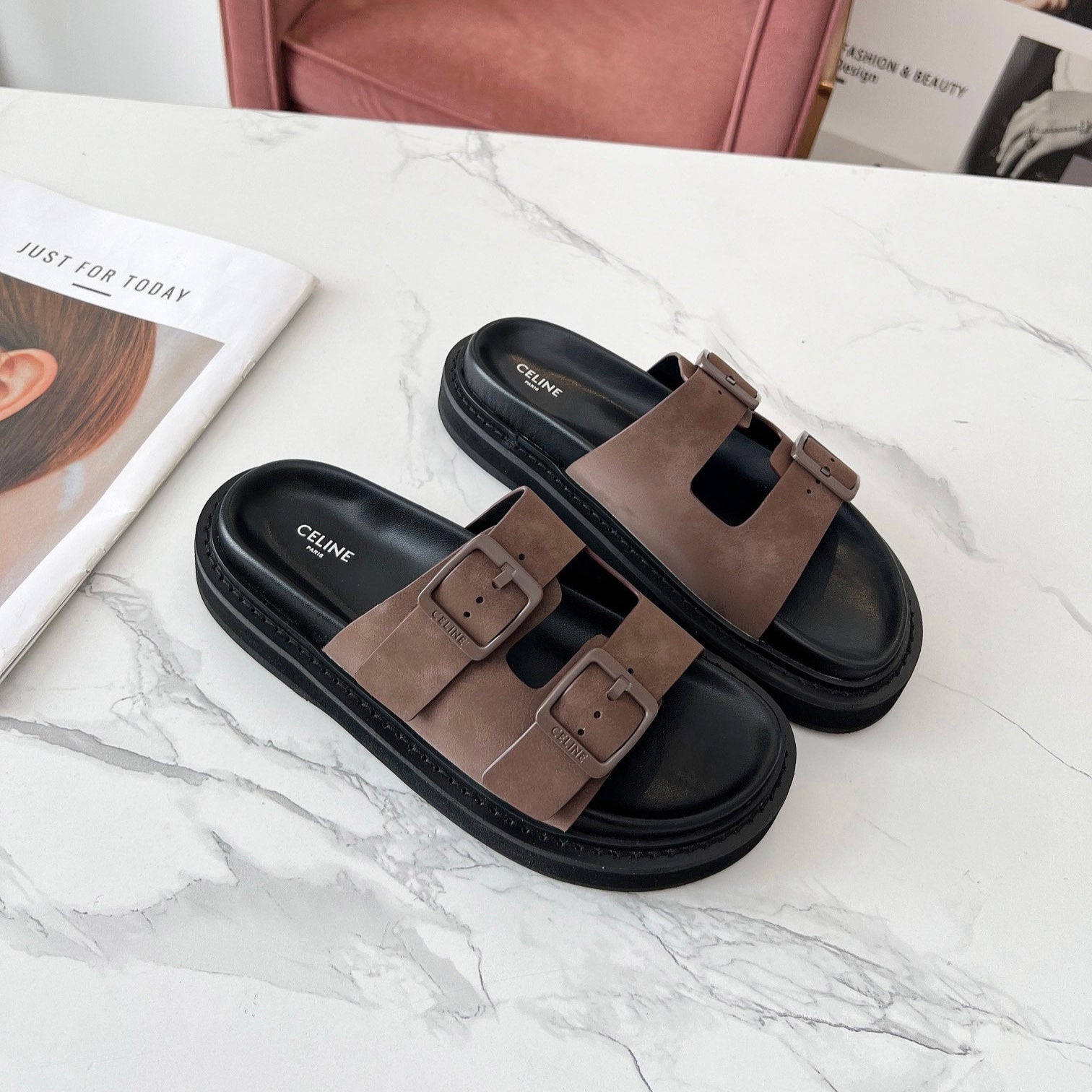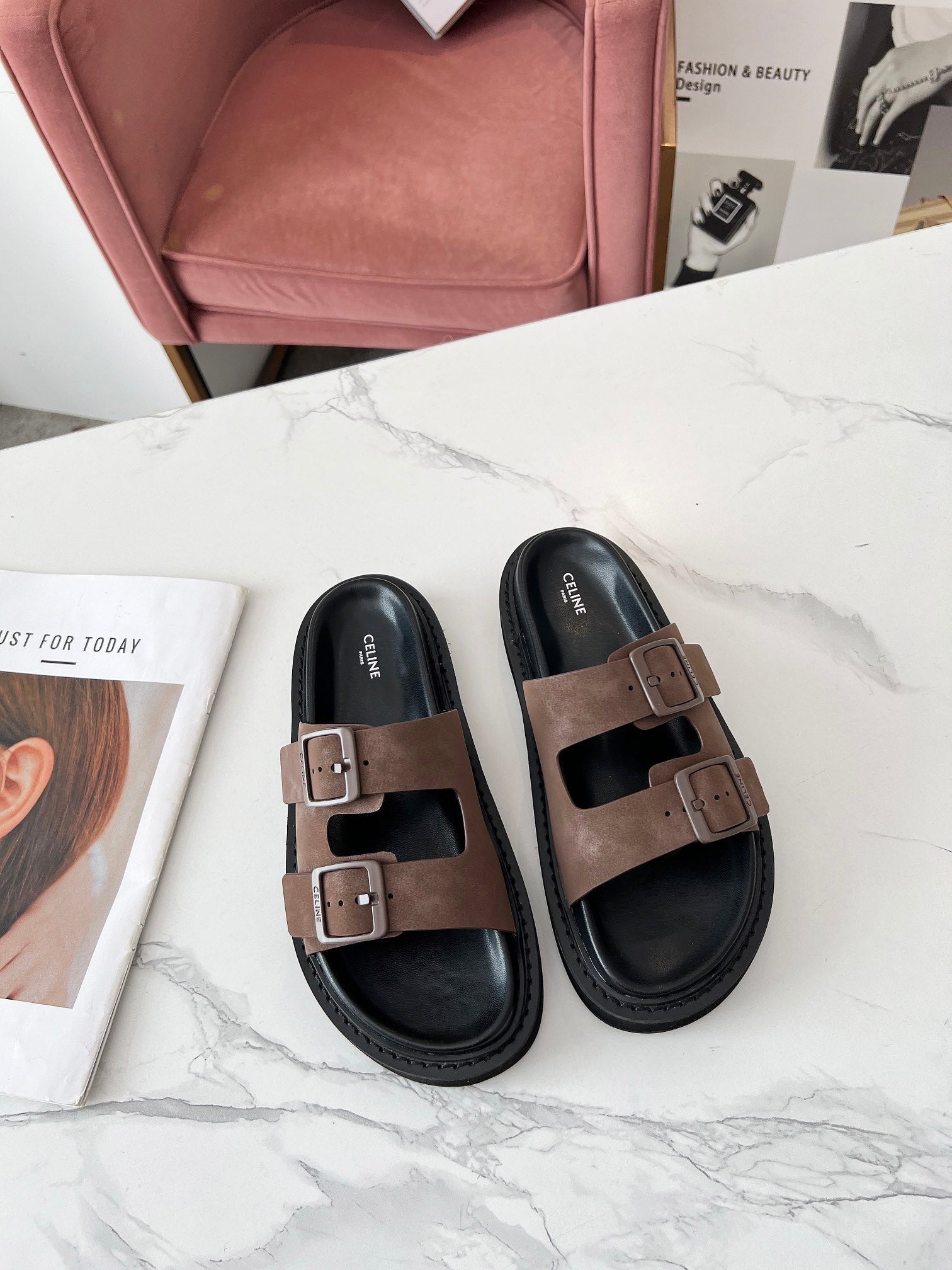 Celine 25C Dad Sandal Mule Ivory Brown Leather 238144