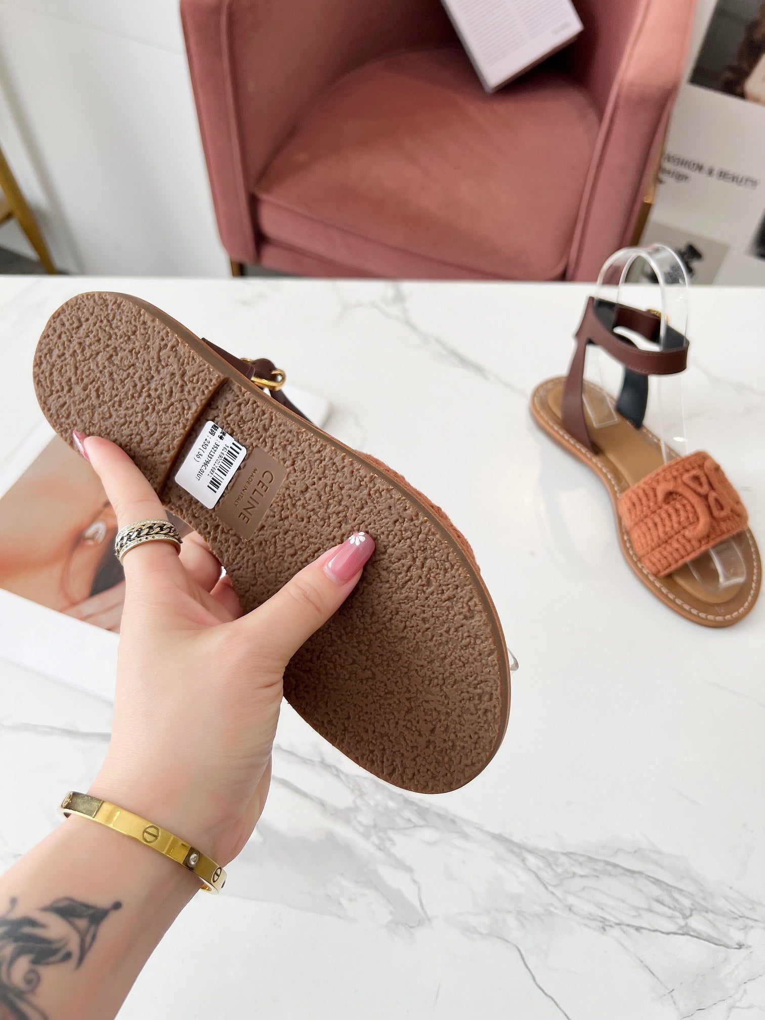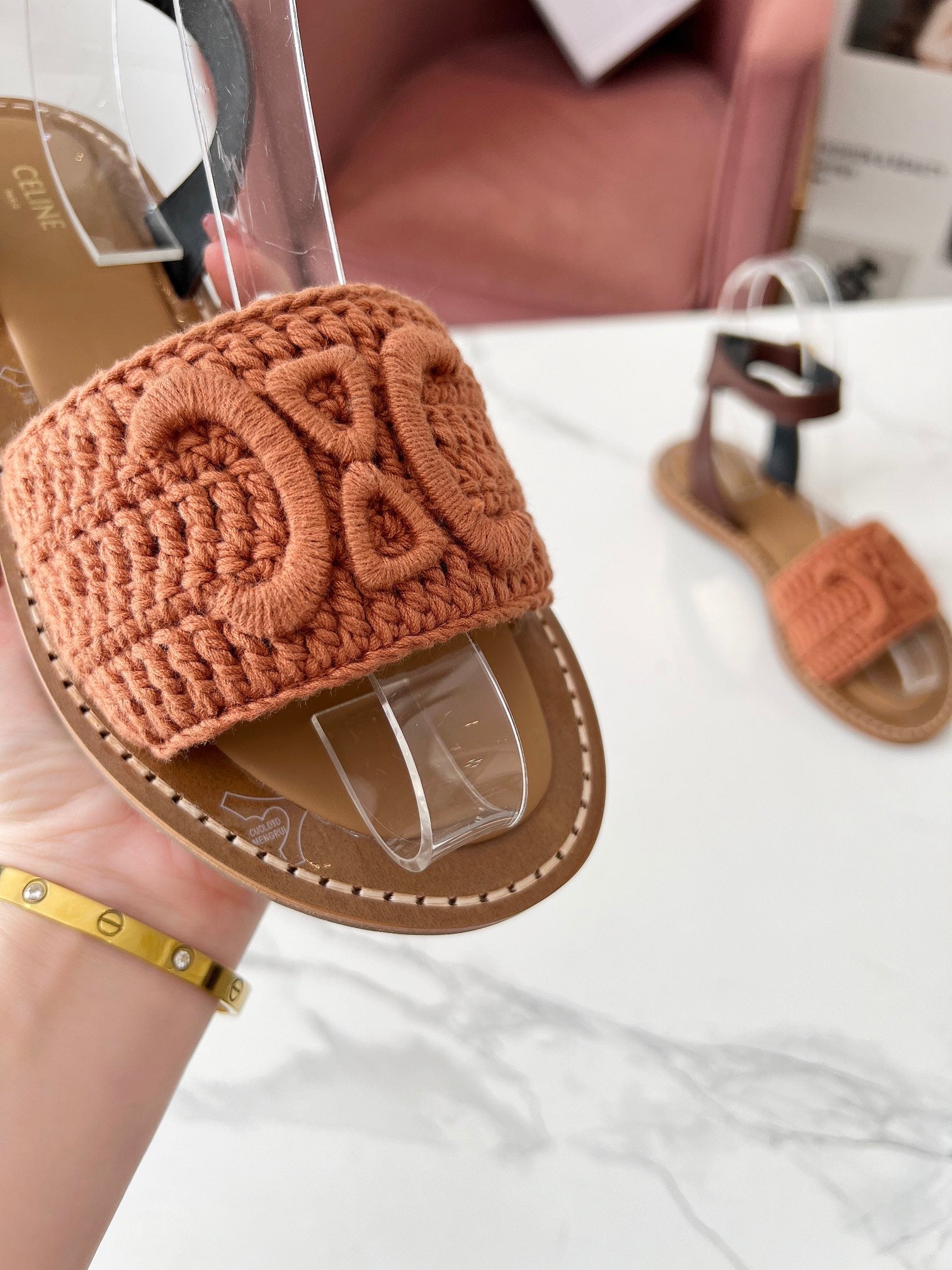 Celine 25C Lympia Sandal Melon Orange Fabric with Calfskin 238174