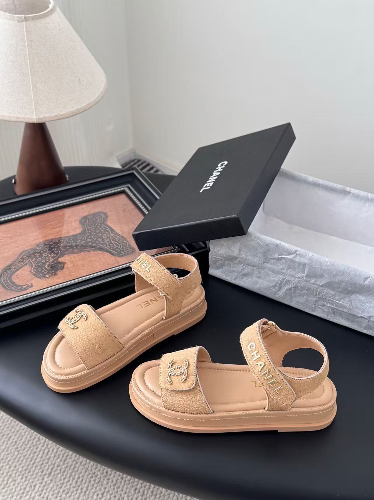 Chanel Sandal Beige Horsehair Calfskin