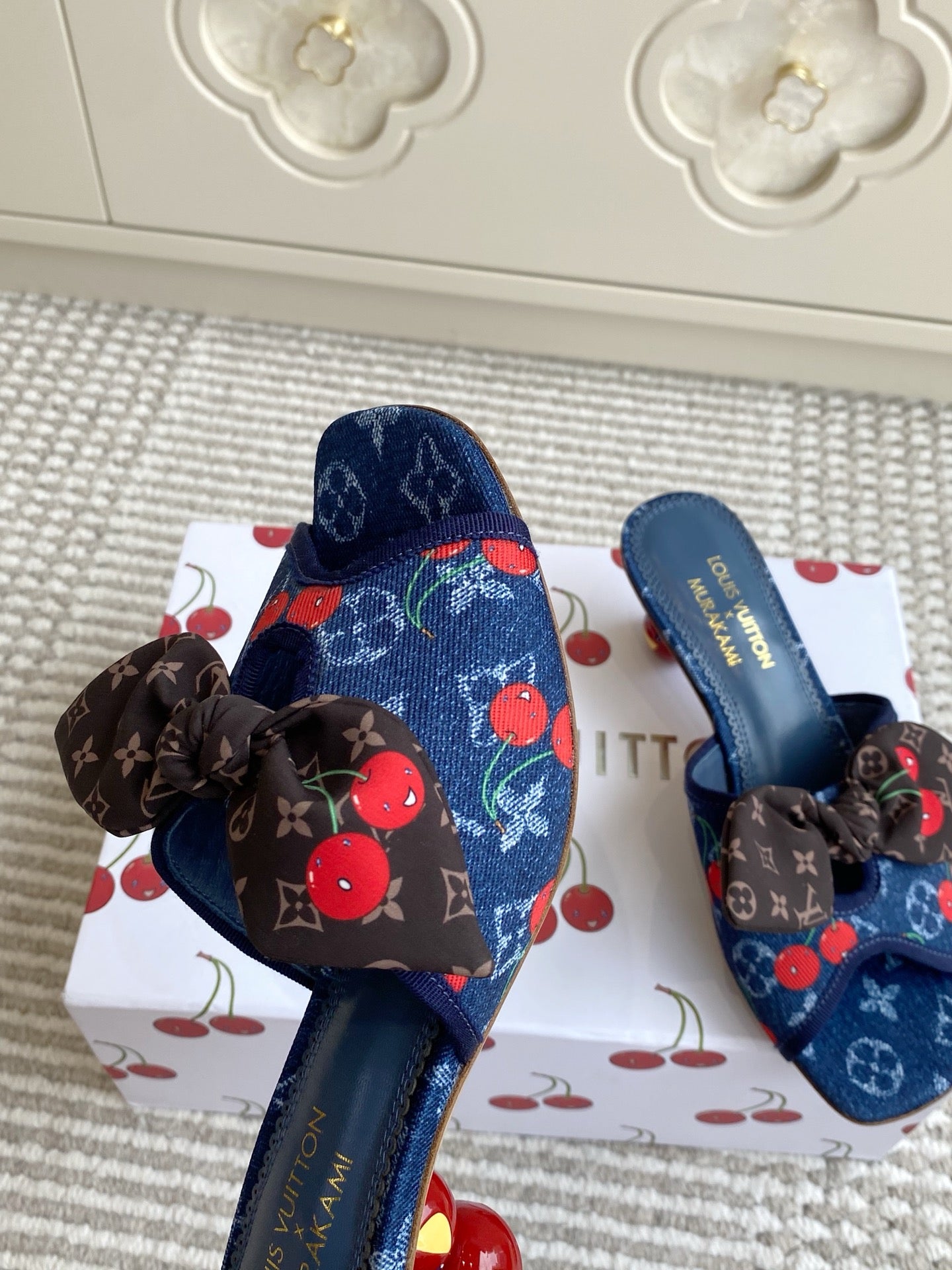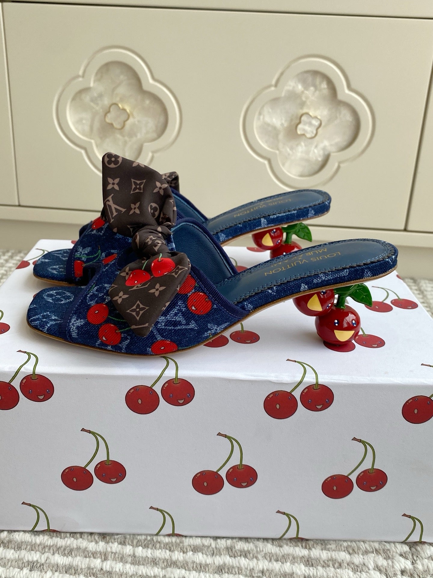 Cherry Series LV X TM CHERIE Sandals Beige Blue Denim 442130