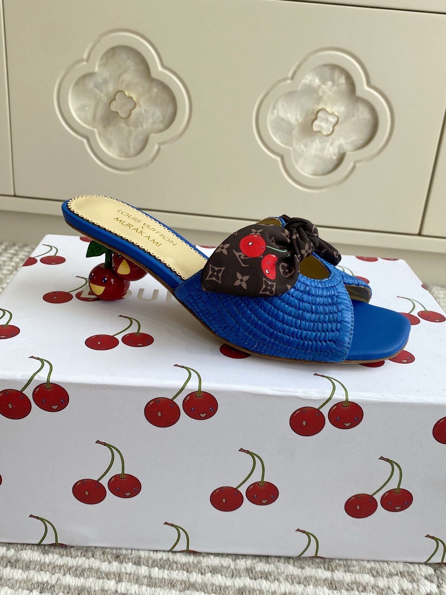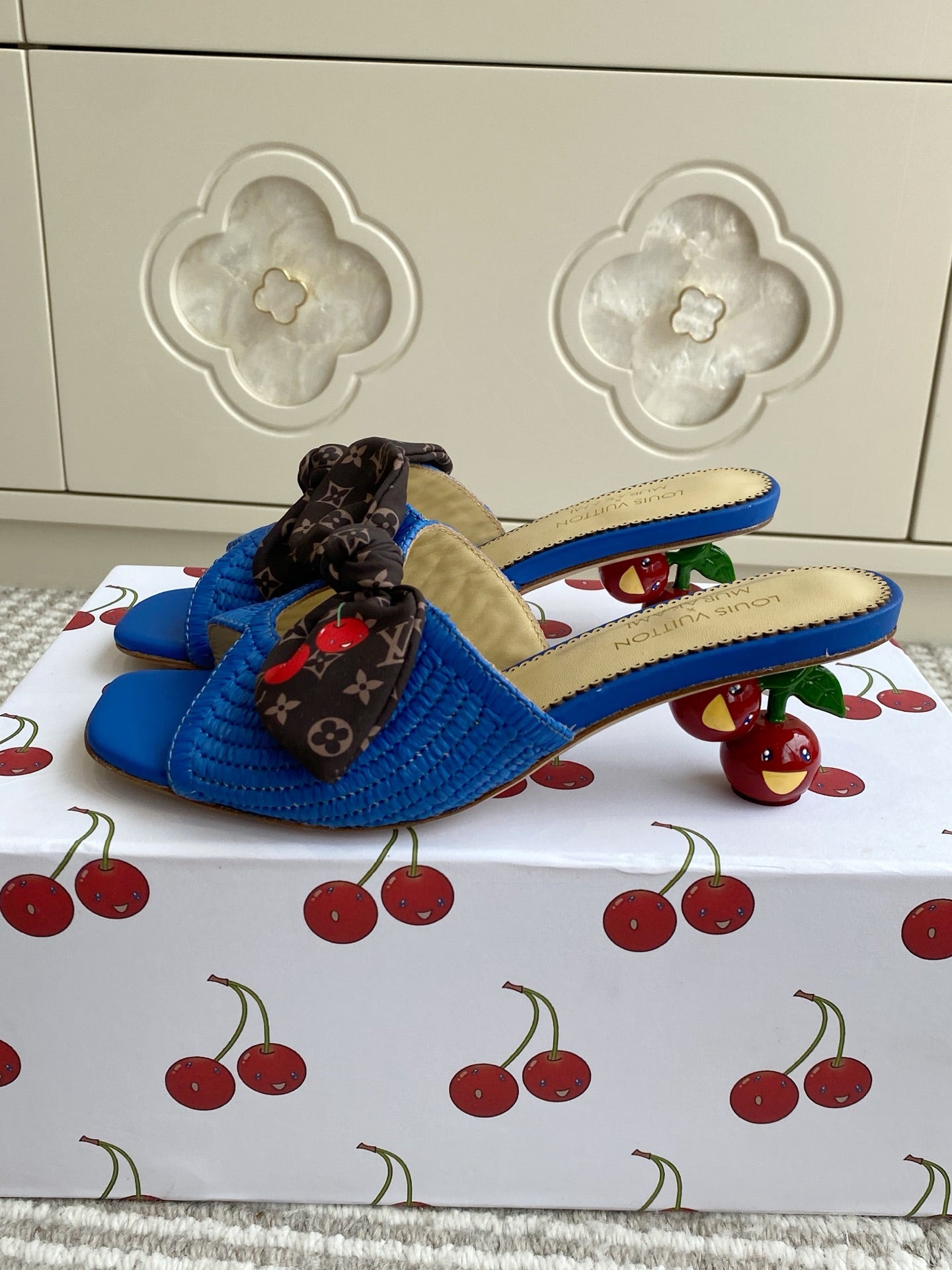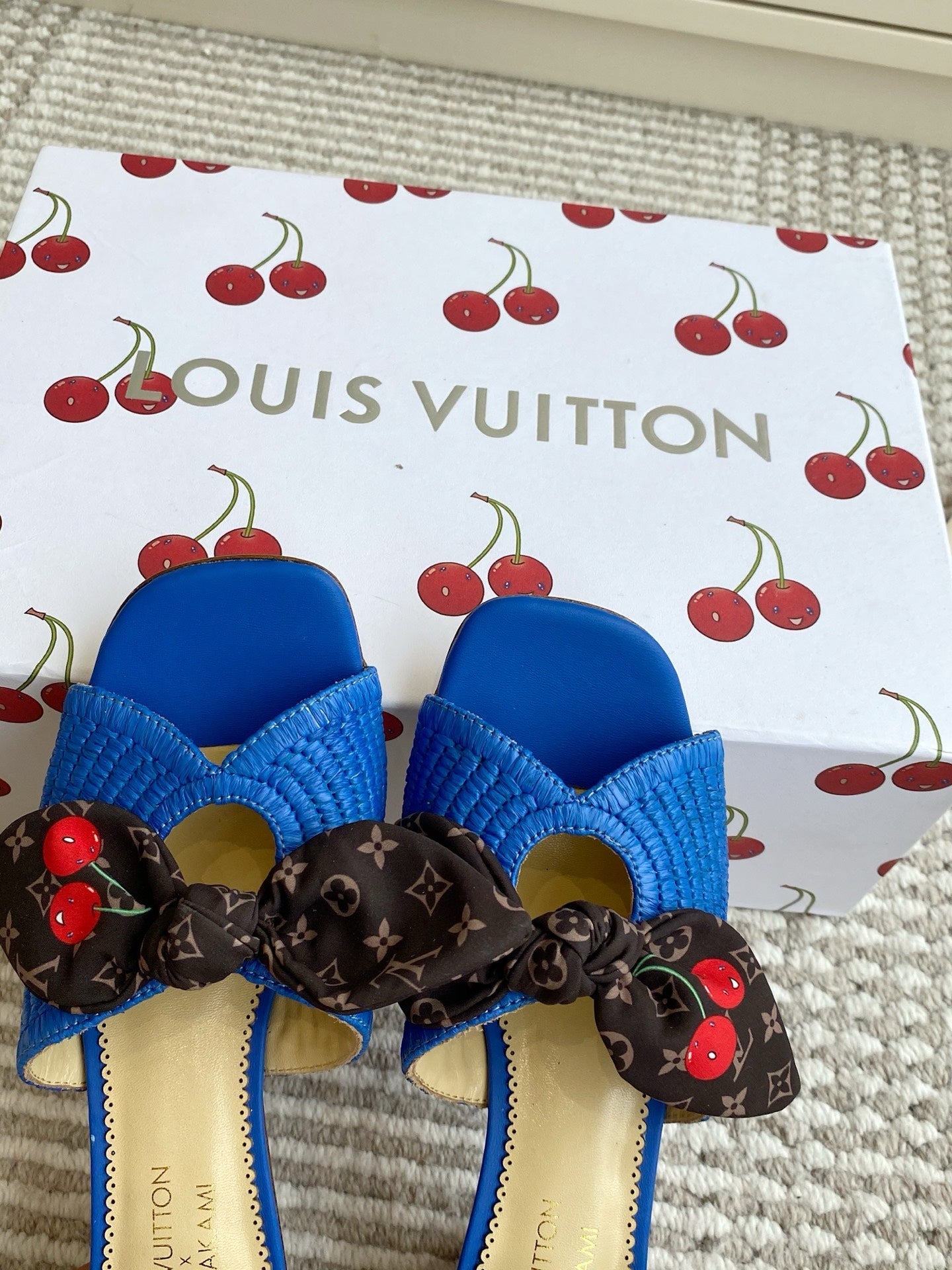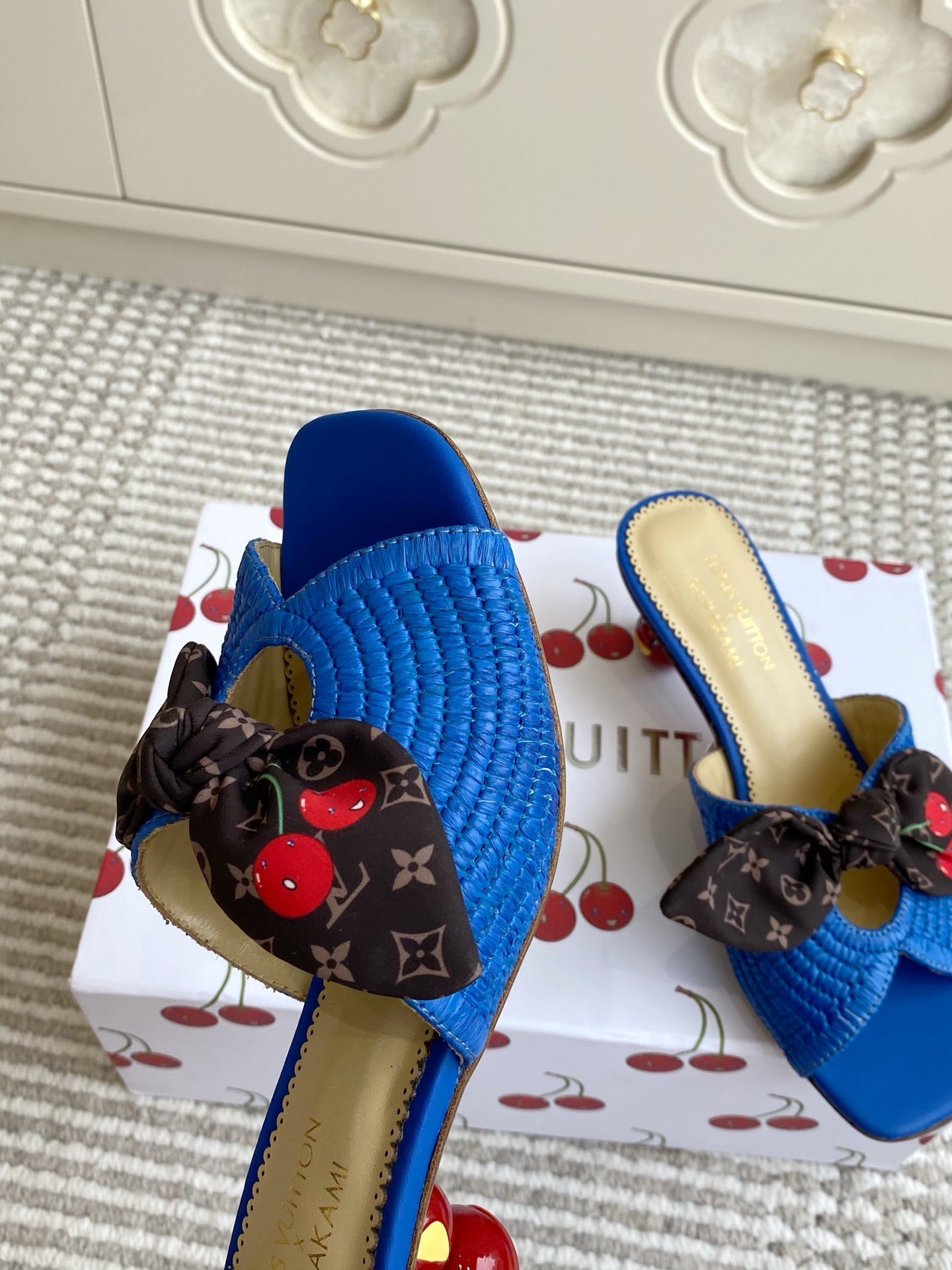 Cherry Series LV X TM CHERIE Sandals Beige Blue Woven Raffia 442133
