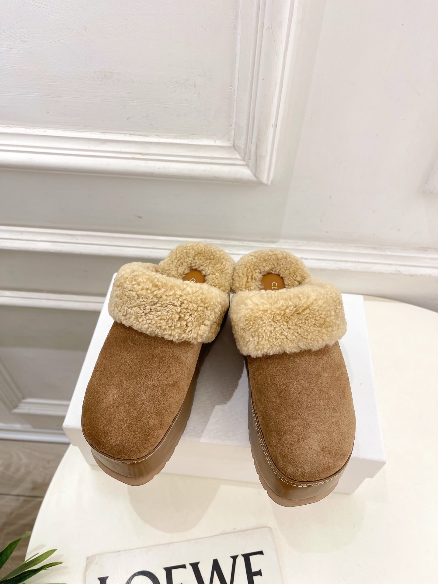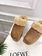CL 25s Dana Wedge Mule 80mm Light Brown Beige Suede Calfskin & Shearling