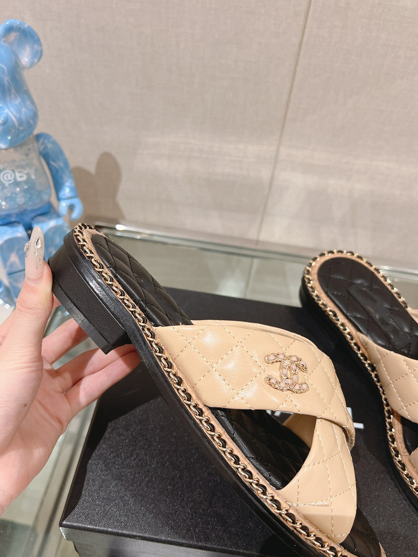 cross slippers 30 beige black quilted lambskin