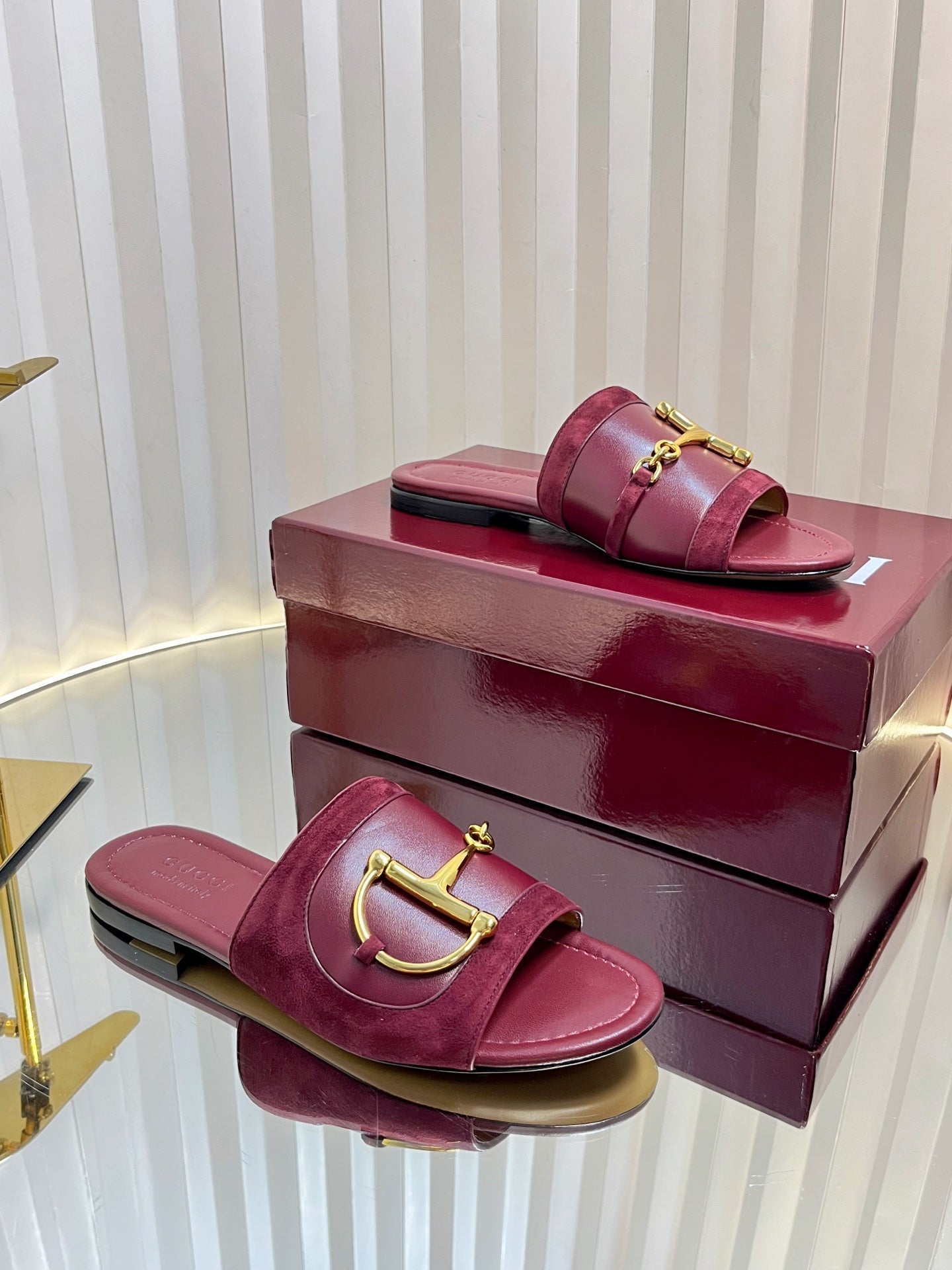 GC 25 Horsebit Sandals 10mm Red Suede Sheepskin 294649