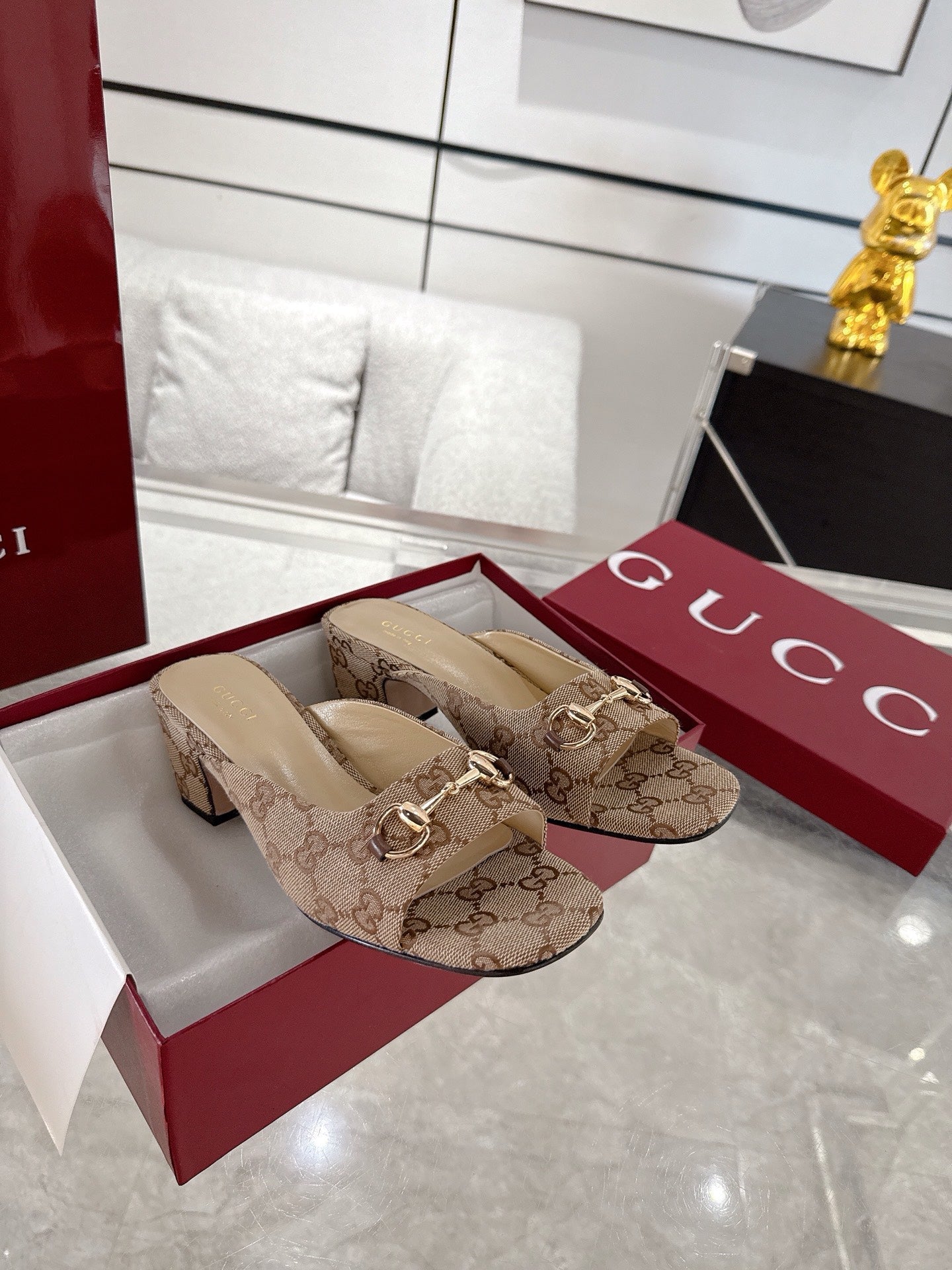 GC Horsebit Slide Brown Canvas Cowhide 292406