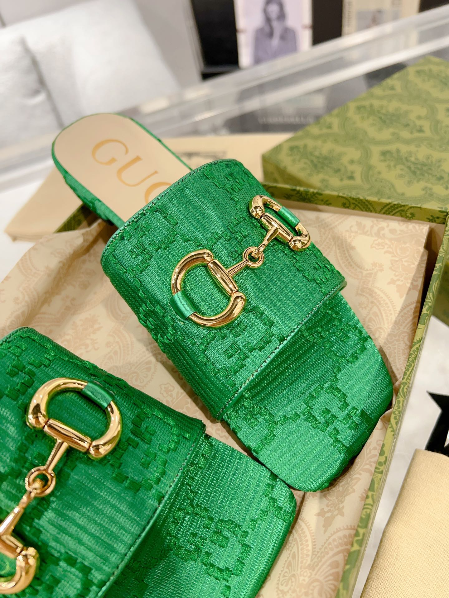 GG CHUNKY SLIDE SANDAL DARK GREEN CALFSKIN